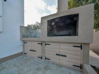 Apartments Helen is located on Mali Iž, very close to the sea, in the Bršanj bay. The house has a barbecue and parking. Two terraces, with a sea view, consists of 2 floors. Lower floor: 1 room with 1 bed (90 cm, length 200 cm), 1 large bed (160 cm, length 200 cm). kitchen (hob, oven, freezer). living room, bathroom. Upper floor: (external stairs) living/dining room 35m2 with satellite TV. receiver and WI Fi. 1 room with a large bed (160 cm, length 200 cm and an extra bed of 90cmx 200cm). Second room with 1 large bed (160cm, length 200 cm), kitchen (4 hobs, oven, freezer), bathroom. Pets are allowed.