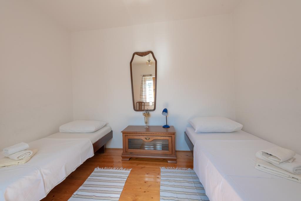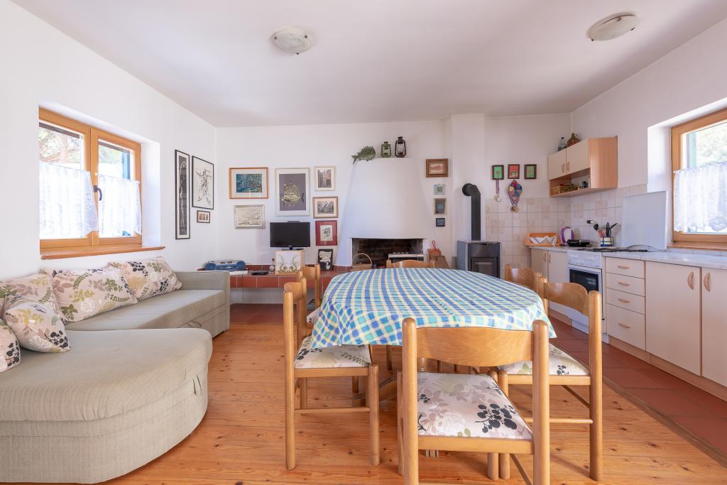 Holiday house Davorka is located in Mali Iž on the island of Iž. It is located right next to the sea, in a quiet area of Tražet, outside the town and roads. The house has two bedrooms (one room has a large bed for two people and one bed for one person, and the other room has two separate beds), a large living room with a kitchen and a bathroom. It is near the port of Knež and has a mooring for a smaller boat. A large terrace of about 30 square meters faces the sea, and there is a brick grill next to the house. There are pine and olive trees around the house, and a parking lot nearby. The island of Iž is well connected to the mainland, in season it is connected to Zadar by two catamarans and two ferries per day. There are several shops and restaurants in Mali and Veli Iž, and in Veli Iž, 2000 meters from the house, there is a doctor's clinic, a post office, an ATM and a marina. It is possible to buy fresh fish from local fishermen every day.