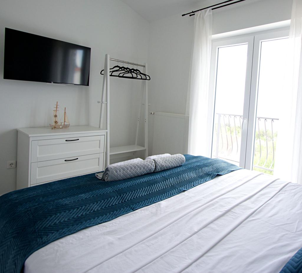 Welcome to our Blue Horizon apartment. The interior is carefully designed with modern details complemented by warm, natural elements, creating a feeling of harmonious luxury. The spacious living room invites you to relax on the comfortable couch, while at the same time enjoying the view of the endless blue of the Adriatic Sea. Our fully equipped kitchen gives you the opportunity to prepare your own meals with the latest appliances and accessories. The bedrooms are oases of peace and comfort, with comfortable beds and fresh linens to ensure a peaceful night's sleep after a long day of exploring the nearby beaches and attractions. Our apartment also has a spacious balcony, where you can enjoy your morning coffee or a relaxed evening drink with the sunset. The first beach is 300 m away, the restaurant 100 m, and the shop 400 m. Enjoy every moment spent in our apartment by the sea, where comfort, luxury and the beauty of nature come together to provide you with an unforgettable vacation.