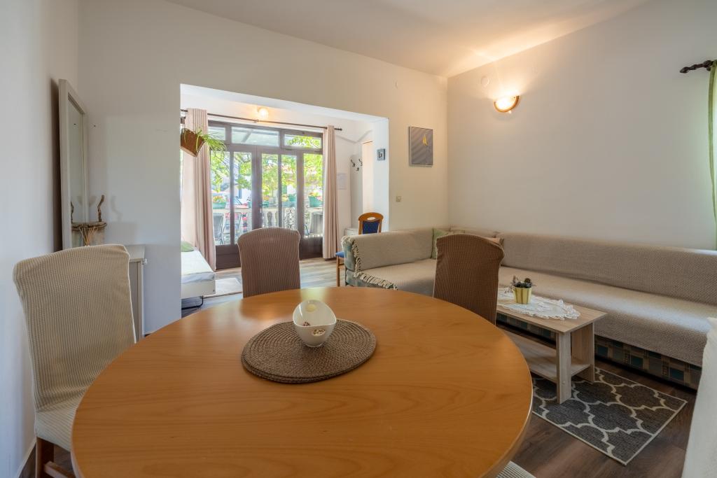 Air-conditioned apartment with 2 balconies, in a quiet secluded street, located in a small fishing village Jadranovo. The apartment has a garden, barbecue area, as well as WI FI and parking. The apartment has two balconies or terraces, 1 bedroom, living room, kitchen and toilet. You have a 10-minute walk to the nearest beach and a 15-minute walk to the other. The second beach is also accessible by car in 2 minutes, and you have free parking right on the beach.