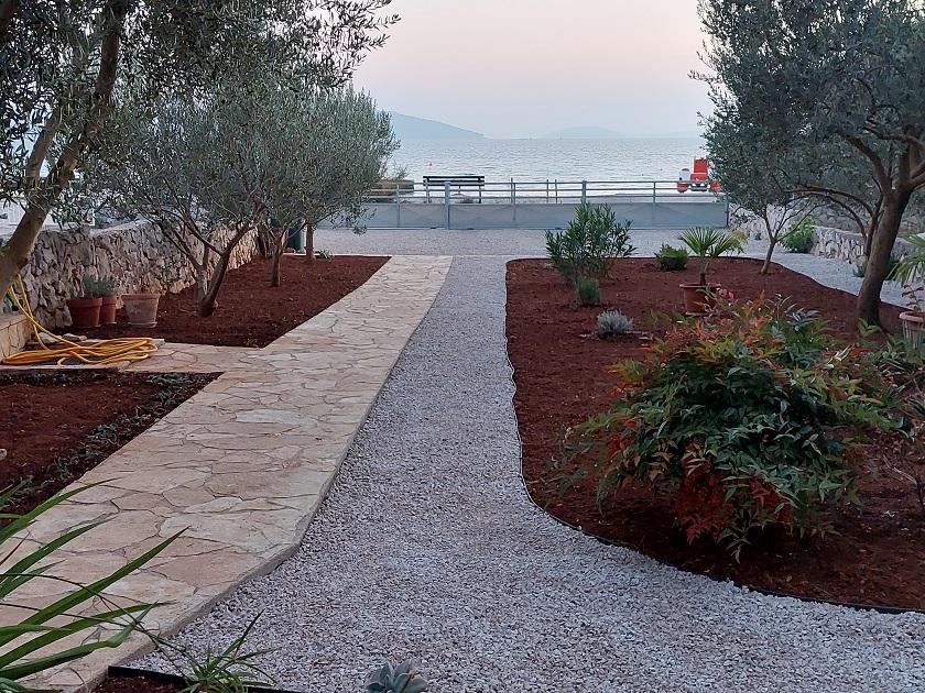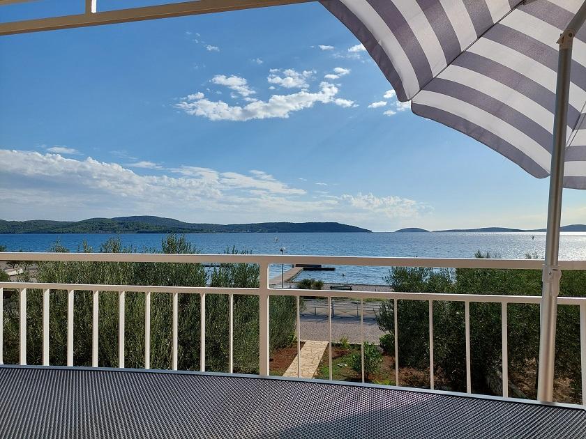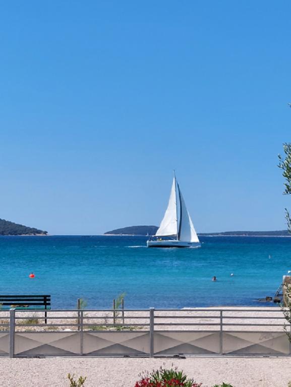 Apartment with beautiful sea views from the terrace. The villa is only one apartment and offers peace and quiet, the conditions for true rest. Located at the end of the beach, few people give you peace. Apartment clean, well equipped, very friendly owners. For those who want to explore, to 100 km we Zadar, Split, Trogir and Sibenik closest to where you can go every evening for coffee and wine. For those who want contact with the atmosphere of the resort and a larger group of tourists pub about 500 m. Next holiday here too we want to spend.