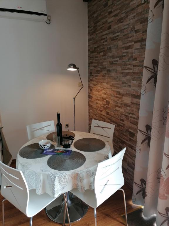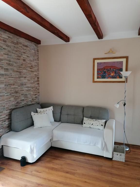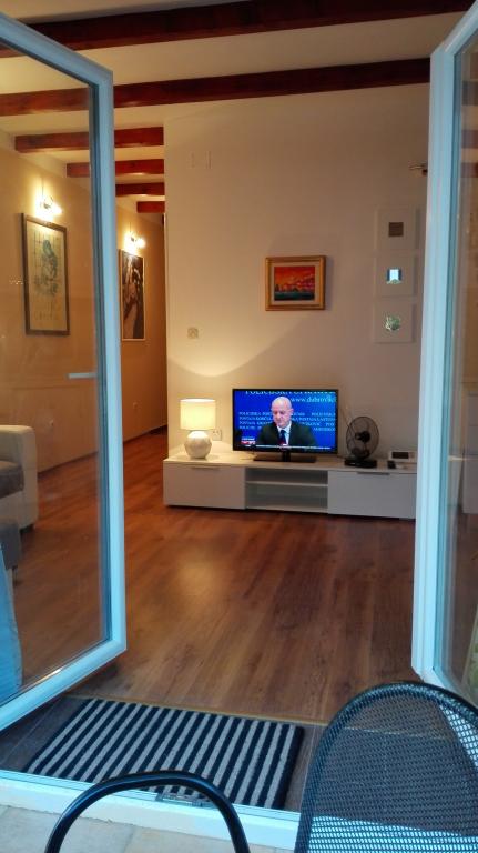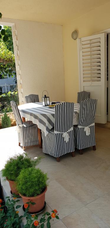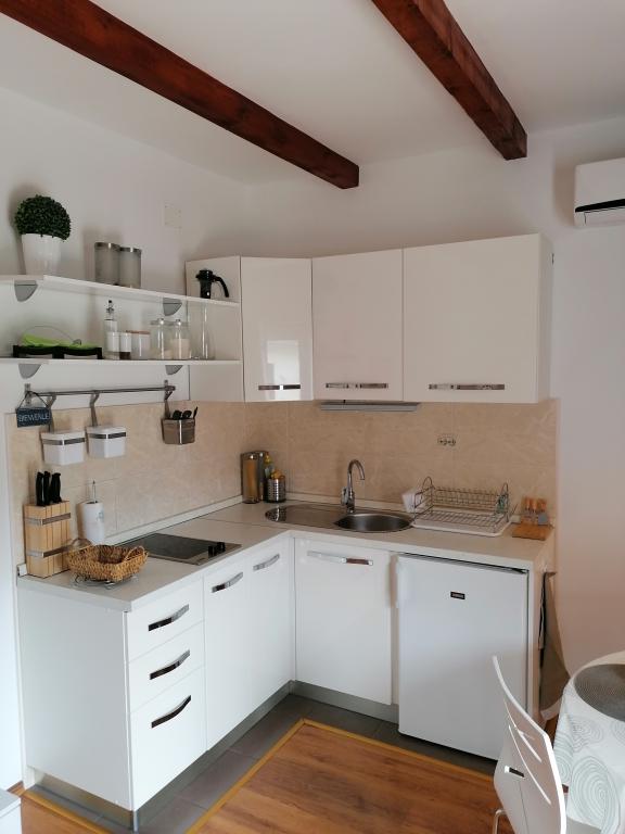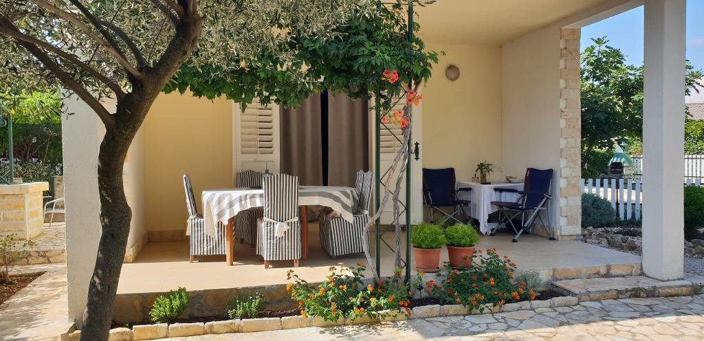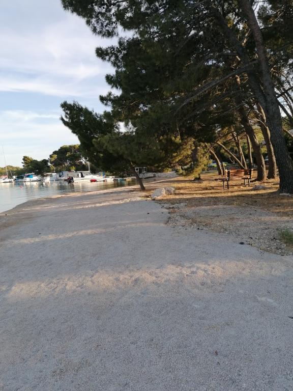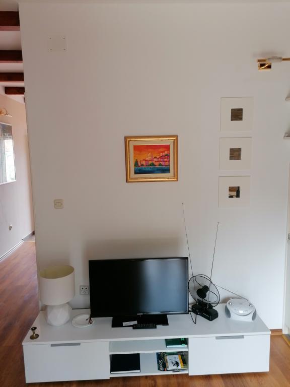 The apartment is newly decorated and is located on the first floor apartment in the seafront. Located on the city of Sibenik Jadrija which is 10 kilometers away from Sibenik and guidance of the 5 km. By Jadrije can be except by road reached by boat sailing through the canal St. Ante 20minutes. Nearby is a restaurant-pizzeria and shop. The terrace offers panoramic views of the garden in which are located a stone barbecue and shower. Minimum 7 nights in the period from 01 07 to 01 09th Secured parking in the yard in front.