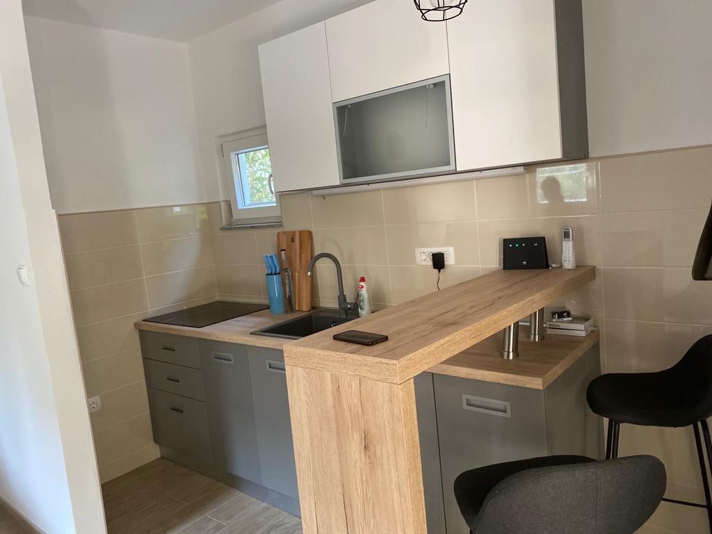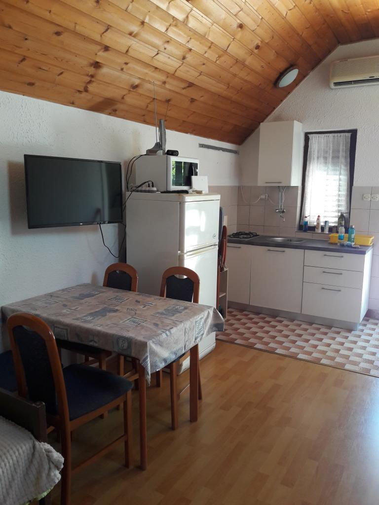 Description of the studio apartment: - apartment area 30 m2 + balcony with sea view + terrace 10m2 - double bed + one extra bed - table with four chairs and wardrobe - kitchen (gas stove with 2 burners, refrigerator) - bathroom with shower - TV - internet - air conditioning - dishes for preparing and serving food and drinks - cutlery in appropriate quantities - bed linen and towels in the bathroom included - distance to the sea 15m. Description of the apartment A3+1 - apartment area 40 m2 + terrace 30m2 - room with double bed - room with single bed - kitchen (induction hob, dishwasher, refrigerator) with living room - bathroom with shower and washing machine - TV - internet - air conditioning - dishes for preparing and serving food and drinks - cutlery in appropriate quantities - bed linen and towels in the bathroom included - distance to the sea 15m.
