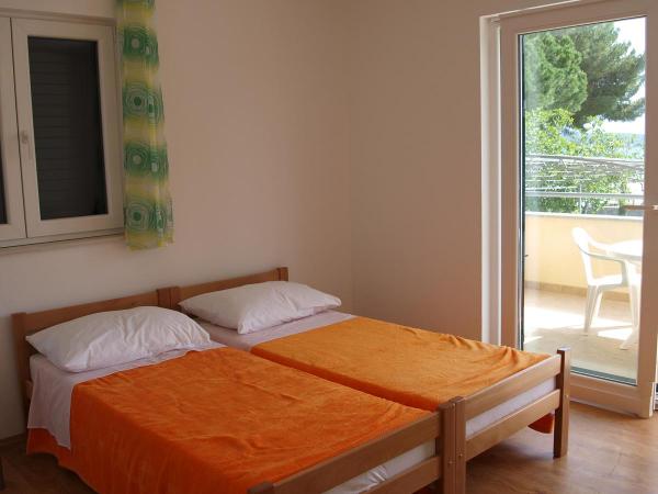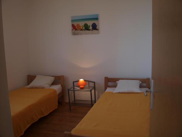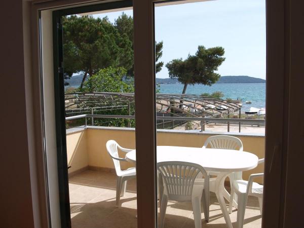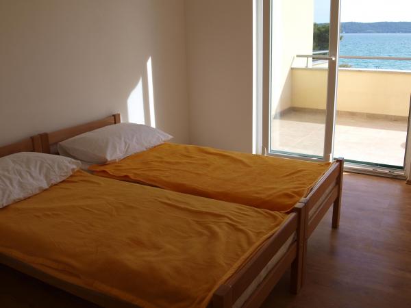 The apartments are located next to the sea, in the resort Jadrija (between Vodice and Sibenik). The house has two apartments of 50m2, each for 4 persons, one apartment of 60 m2 for 5 persons and room with bathroom for 2 peoples. Each apartment has a terrace looking to the sea.