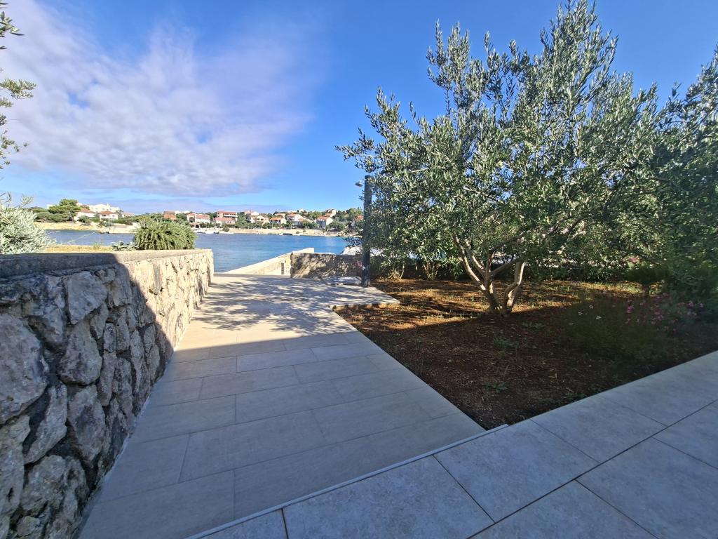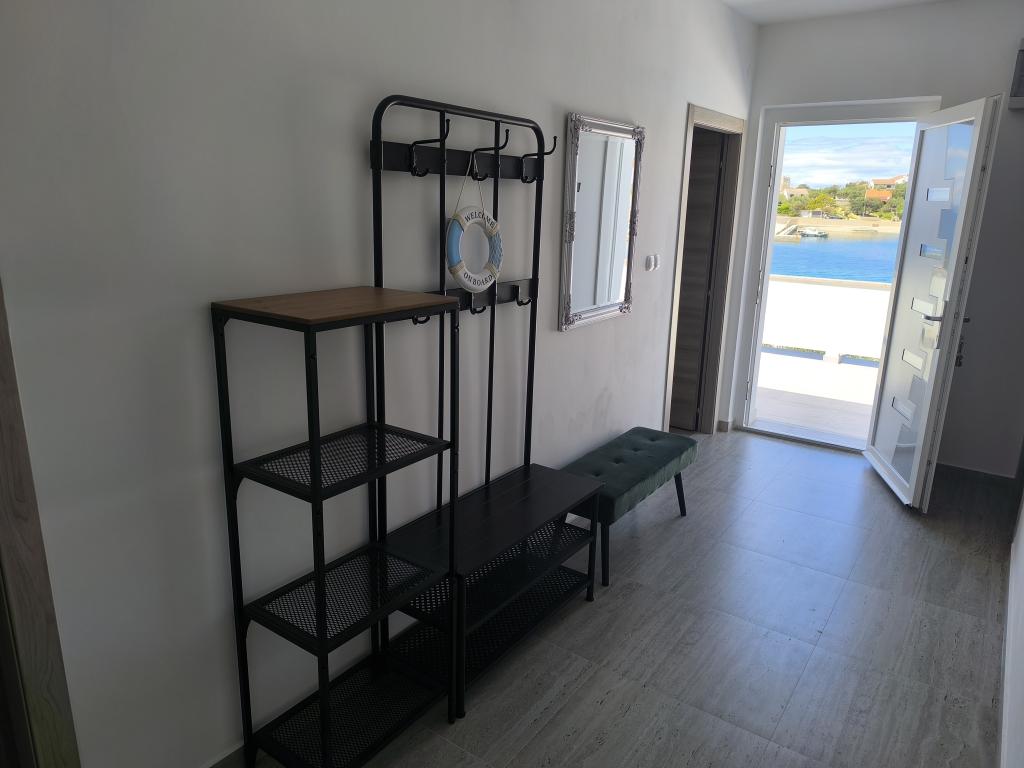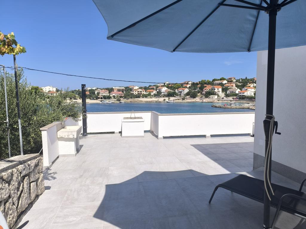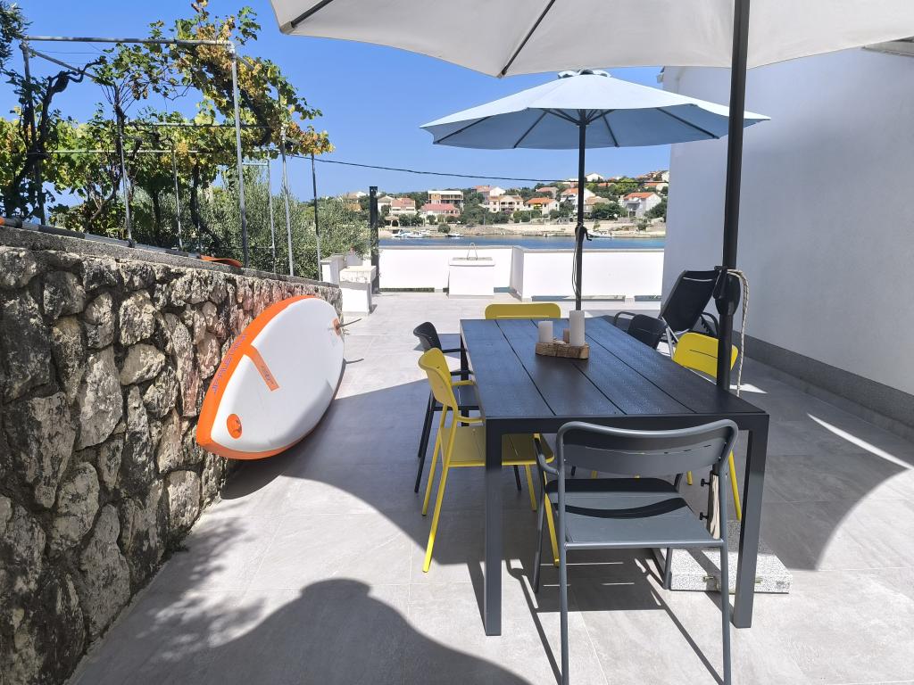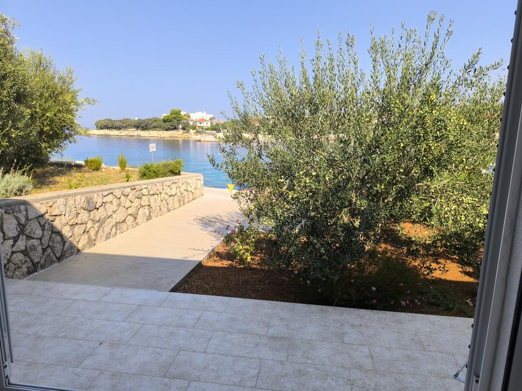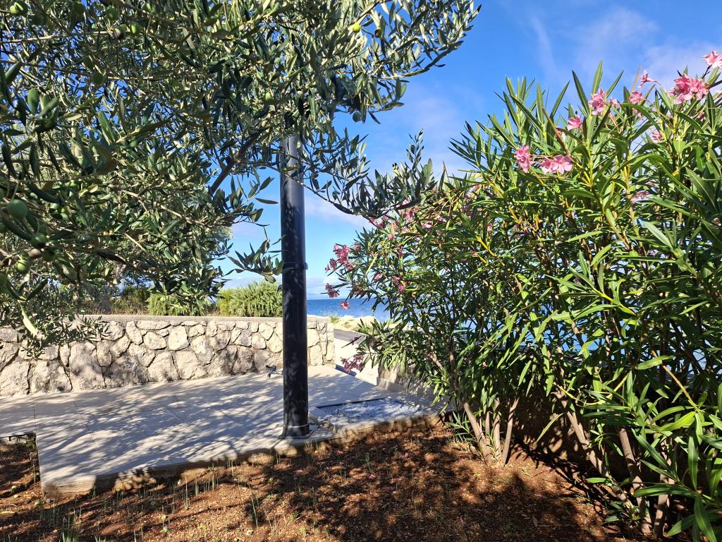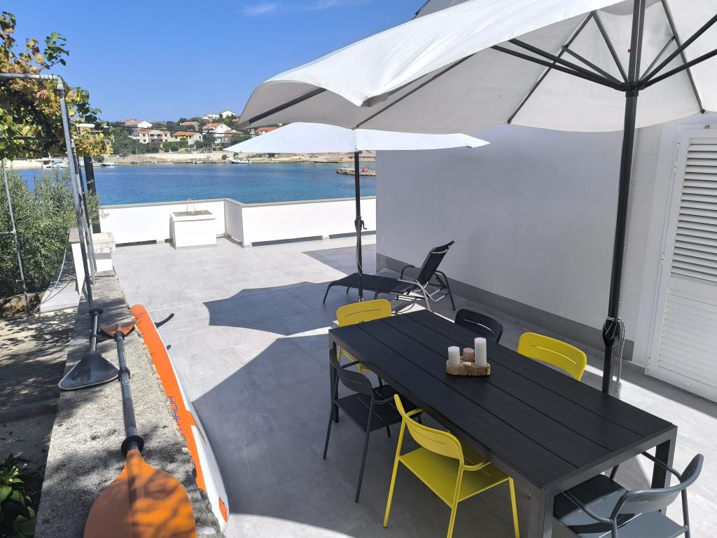 On one of the most beautiful and sunniest islands, Pag, in the northern Dalmatian archipelago, known for the oldest Lun olive groves in the northern Adriatic, is the village of Jakišnica, a small fishing village in a bay, surrounded by olive trees, holm oaks and clear sea. Jakišnica is an ideal place for rest and relaxation. The renovated house with two separate apartments is located first row to the sea. Apartment Yasenka on the ground floor has a bedroom, bathroom, kitchen with dining room, terrace with garden furniture, outdoor shower and deck chairs for complete relaxation. Apartment Iva on the first floor has two spacious bedrooms, bathroom, kitchen with dining room, living room, large terrace with grill and garden furniture and outdoor shower. Parking is provided, free wifi, air conditioning, restaurants, local shop, public sandy beach, rocky or small pebble beach located 10 m from the property are nearby.