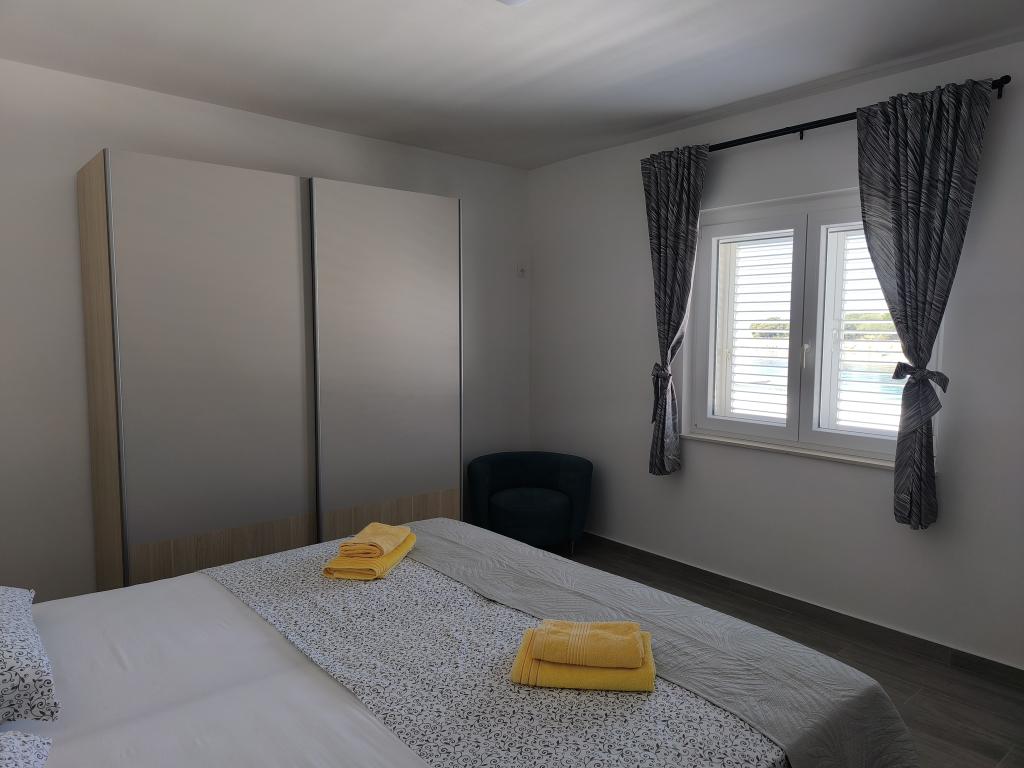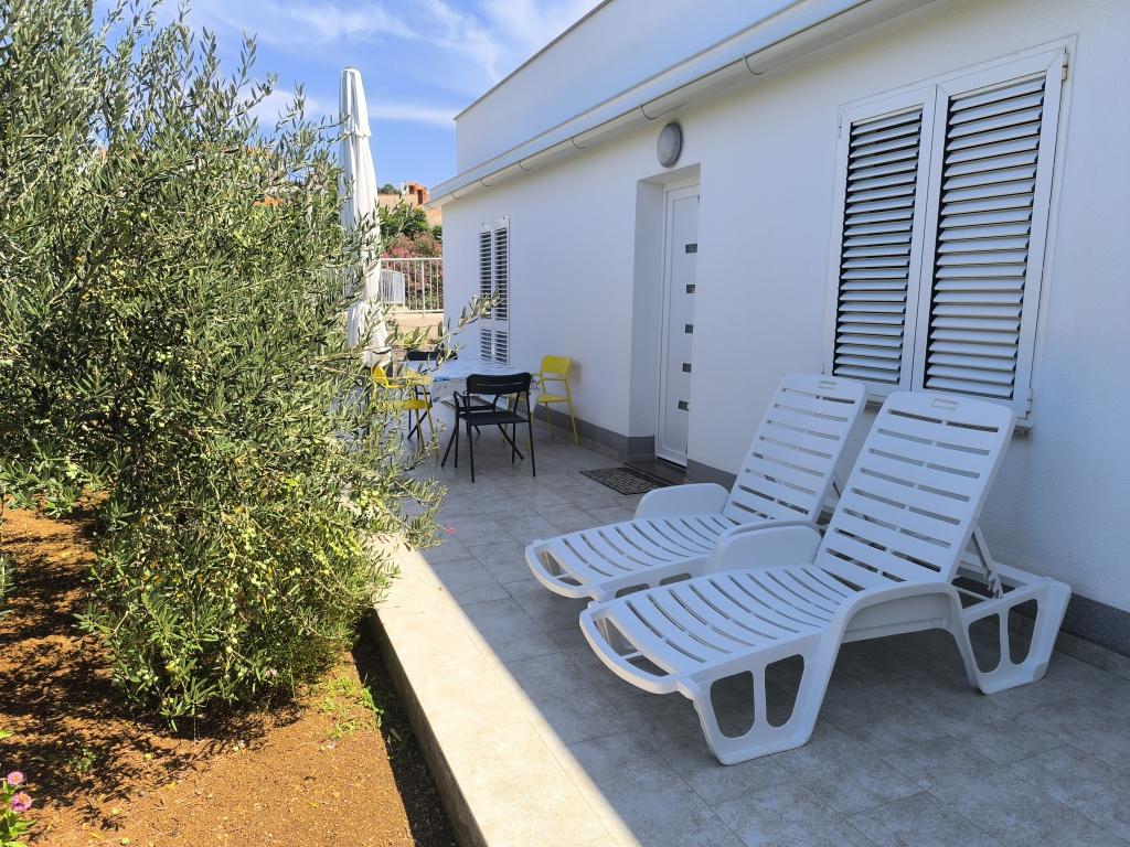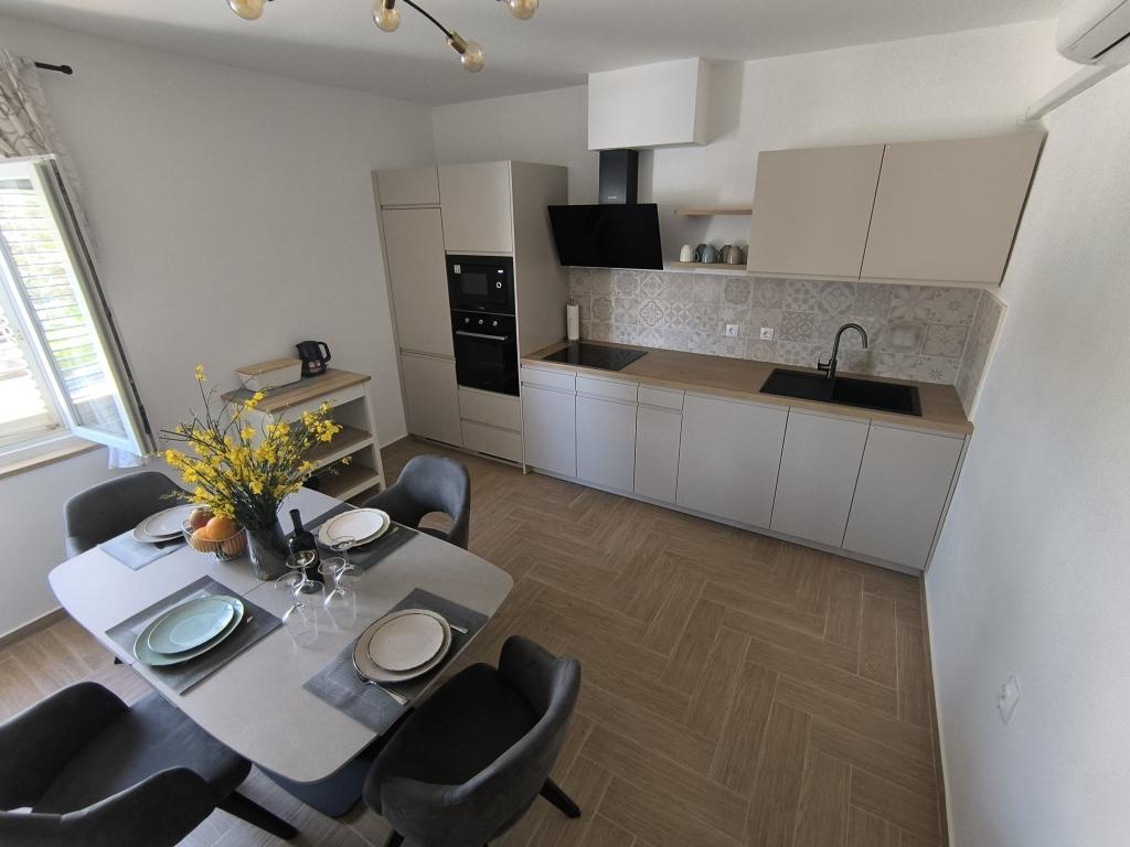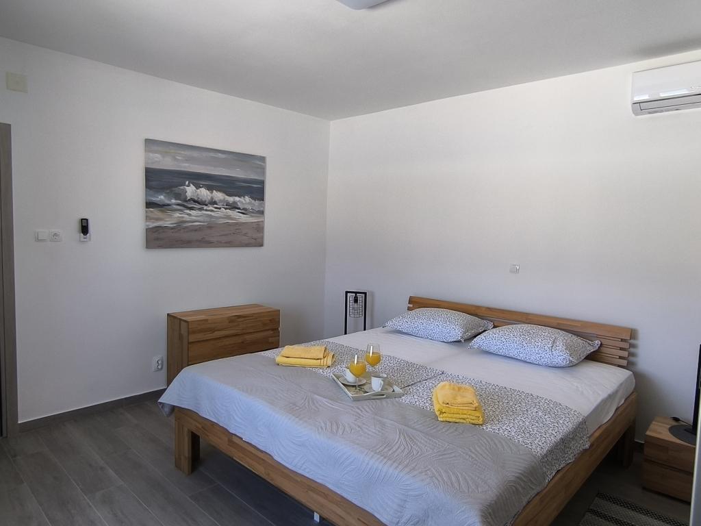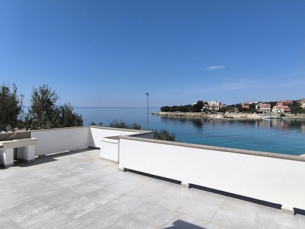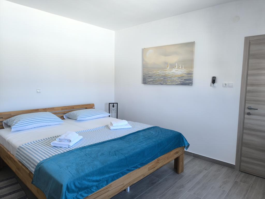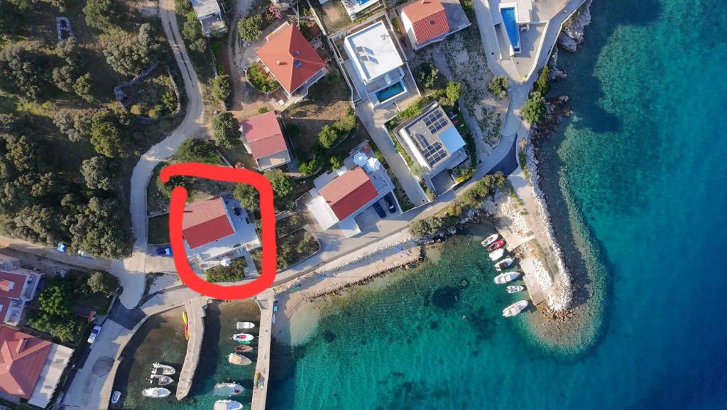 On one of the most beautiful and sunniest islands, Pag, in the northern Dalmatian archipelago, known for the oldest Lun olive groves in the northern Adriatic, is the village of Jakišnica, a small fishing village in a bay, surrounded by olive trees, holm oaks and clear sea. Jakišnica is an ideal place for rest and relaxation. The renovated house with two separate apartments is located first row to the sea. Apartment Yasenka on the ground floor has a bedroom, bathroom, kitchen with dining room, terrace with garden furniture, outdoor shower and deck chairs for complete relaxation. Apartment Iva on the first floor has two spacious bedrooms, bathroom, kitchen with dining room, living room, large terrace with grill and garden furniture and outdoor shower. Parking is provided, free wifi, air conditioning, restaurants, local shop, public sandy beach, rocky or small pebble beach located 10 m from the property are nearby.