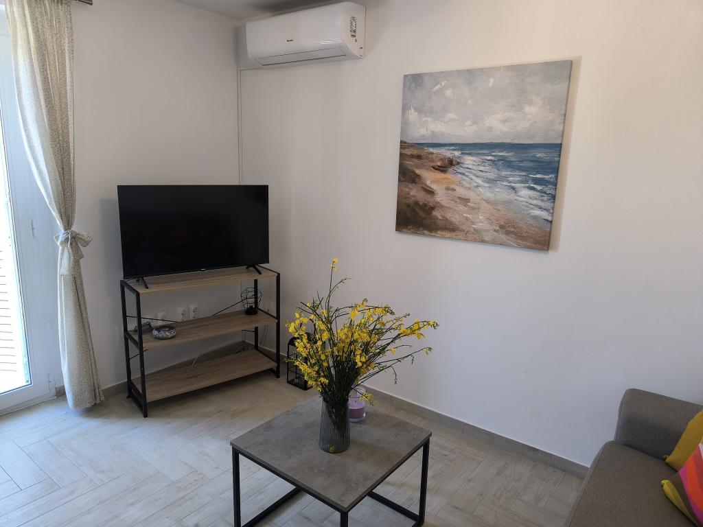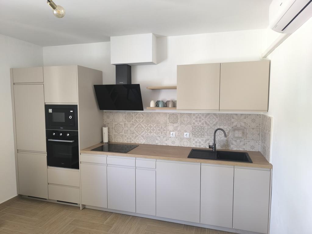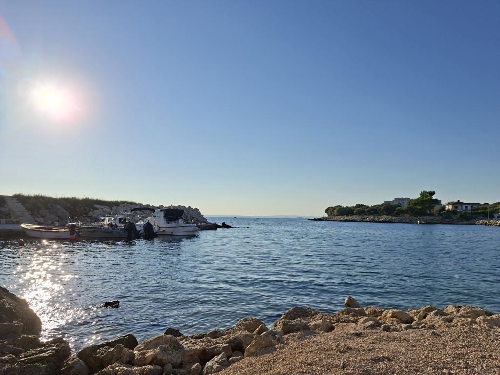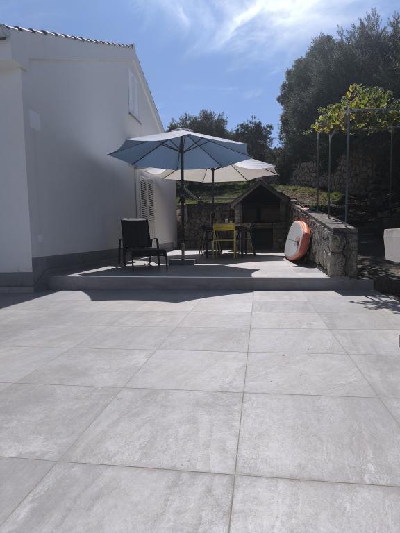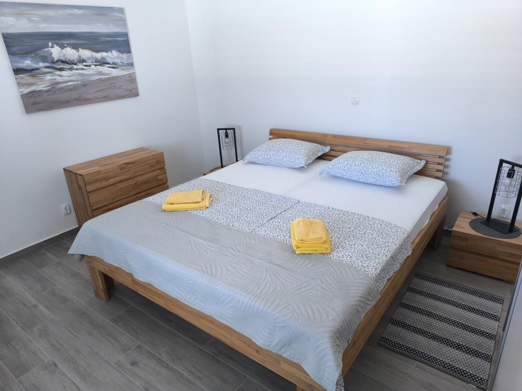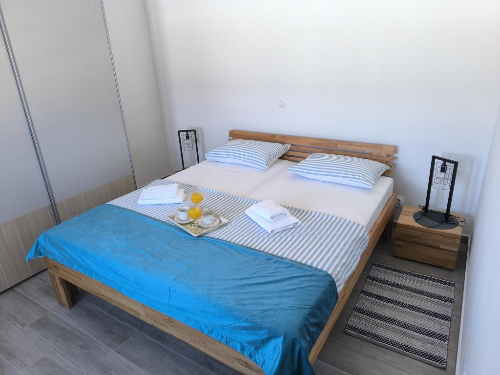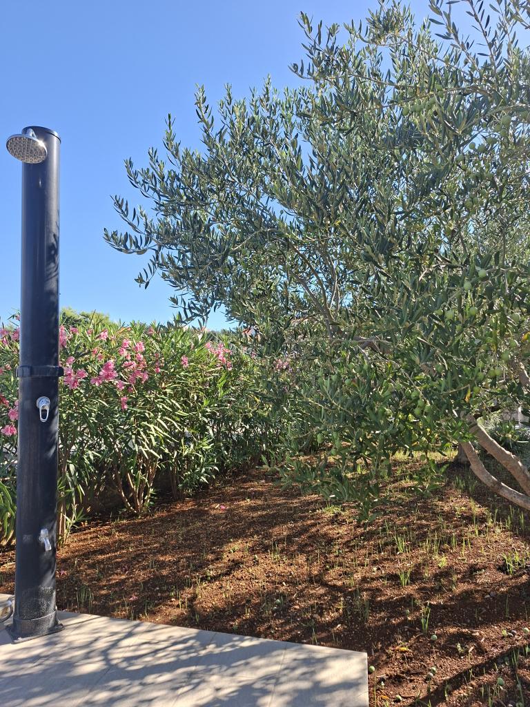 On one of the most beautiful and sunniest islands, Pag, in the northern Dalmatian archipelago, known for the oldest Lun olive groves in the northern Adriatic, is the village of Jakišnica, a small fishing village in a bay, surrounded by olive trees, holm oaks and clear sea. Jakišnica is an ideal place for rest and relaxation. The renovated house with two separate apartments is located first row to the sea. Apartment Yasenka on the ground floor has a bedroom, bathroom, kitchen with dining room, terrace with garden furniture, outdoor shower and deck chairs for complete relaxation. Apartment Iva on the first floor has two spacious bedrooms, bathroom, kitchen with dining room, living room, large terrace with grill and garden furniture and outdoor shower. Parking is provided, free wifi, air conditioning, restaurants, local shop, public sandy beach, rocky or small pebble beach located 10 m from the property are nearby.