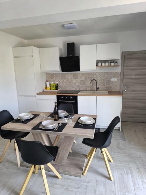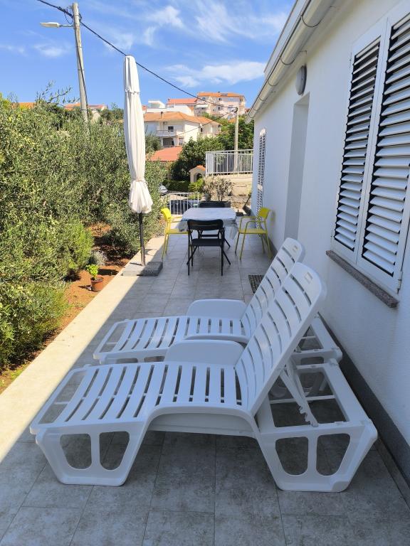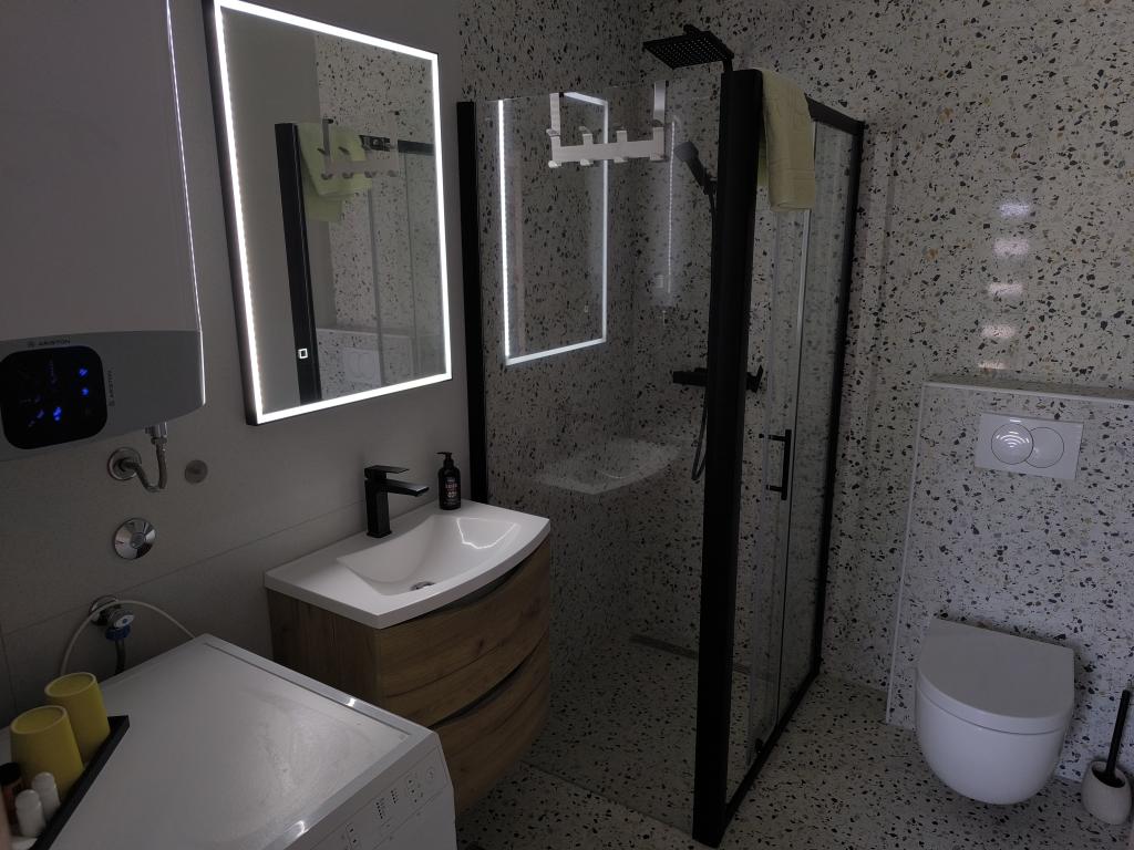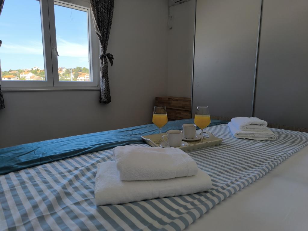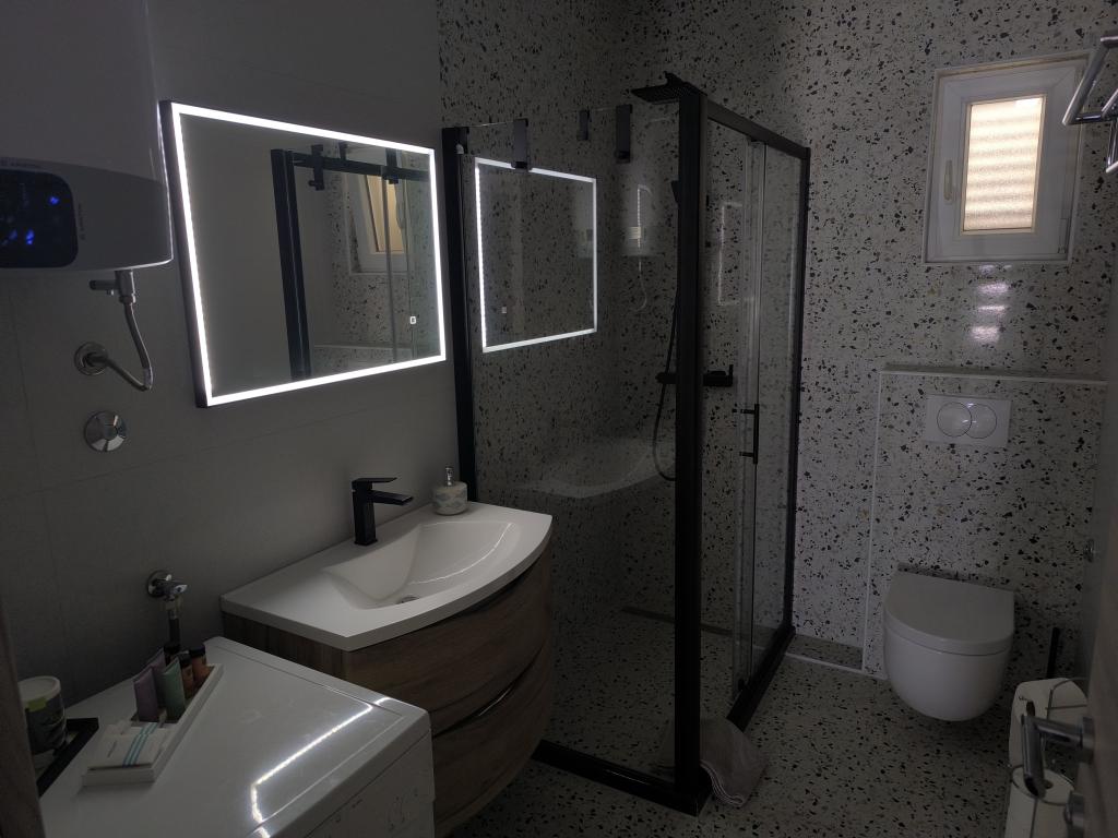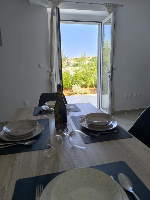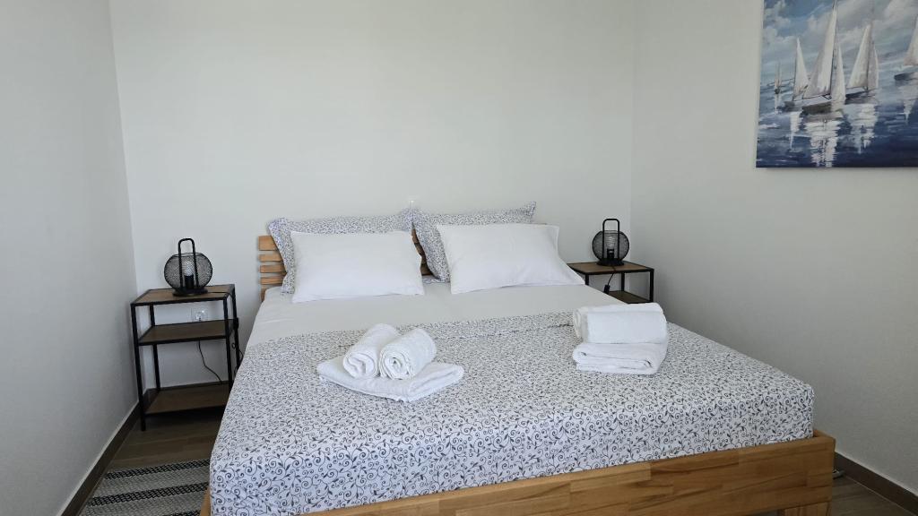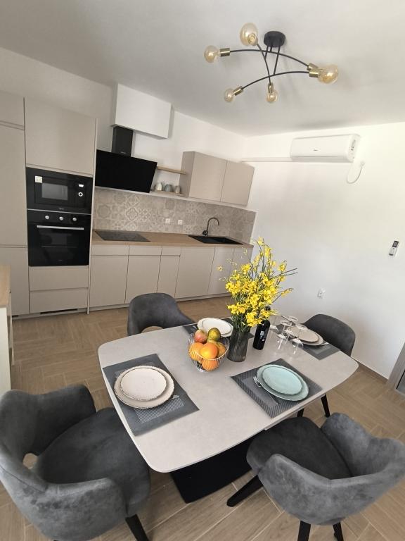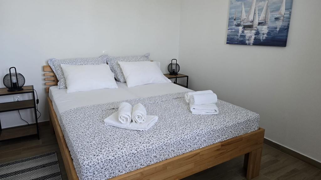 On one of the most beautiful and sunniest islands, Pag, in the northern Dalmatian archipelago, known for the oldest Lun olive groves in the northern Adriatic, is the village of Jakišnica, a small fishing village in a bay, surrounded by olive trees, holm oaks and clear sea. Jakišnica is an ideal place for rest and relaxation. The renovated house with two separate apartments is located first row to the sea. Apartment Yasenka on the ground floor has a bedroom, bathroom, kitchen with dining room, terrace with garden furniture, outdoor shower and deck chairs for complete relaxation. Apartment Iva on the first floor has two spacious bedrooms, bathroom, kitchen with dining room, living room, large terrace with grill and garden furniture and outdoor shower. Parking is provided, free wifi, air conditioning, restaurants, local shop, public sandy beach, rocky or small pebble beach located 10 m from the property are nearby.