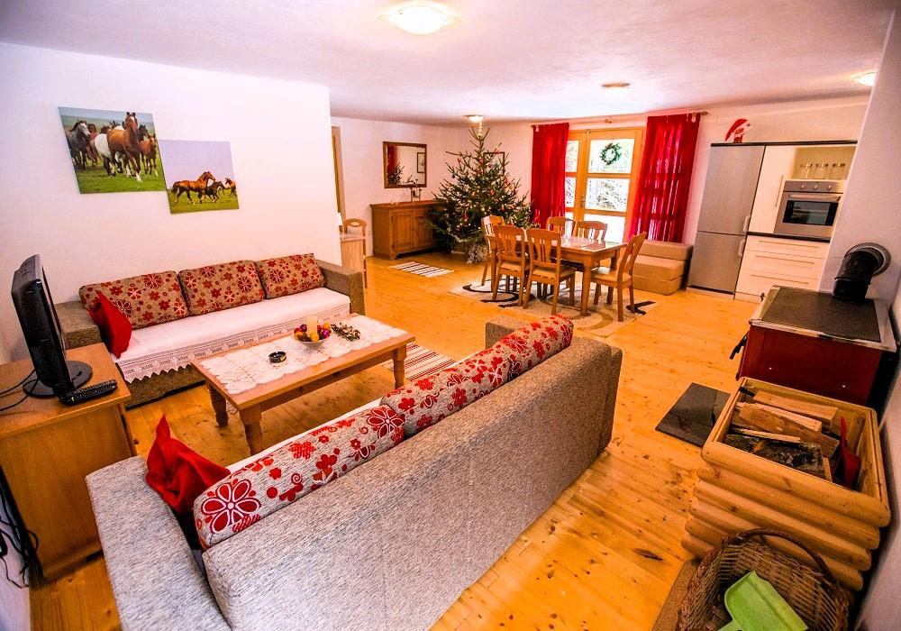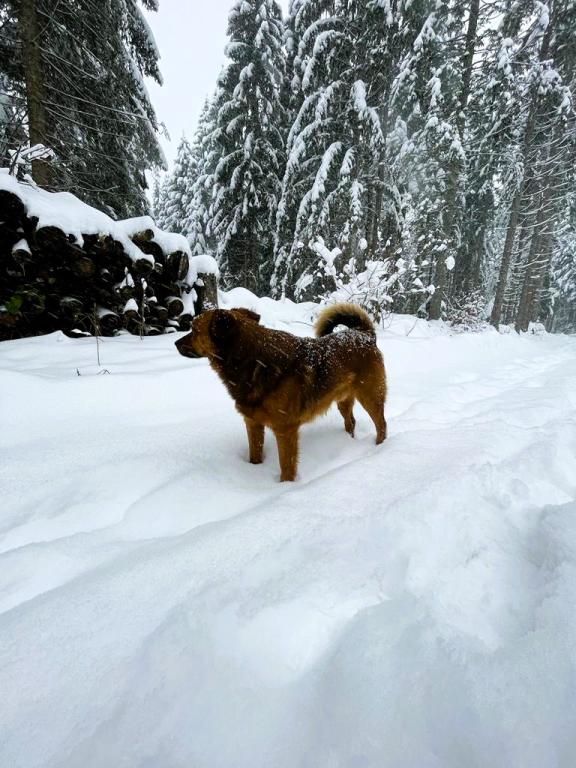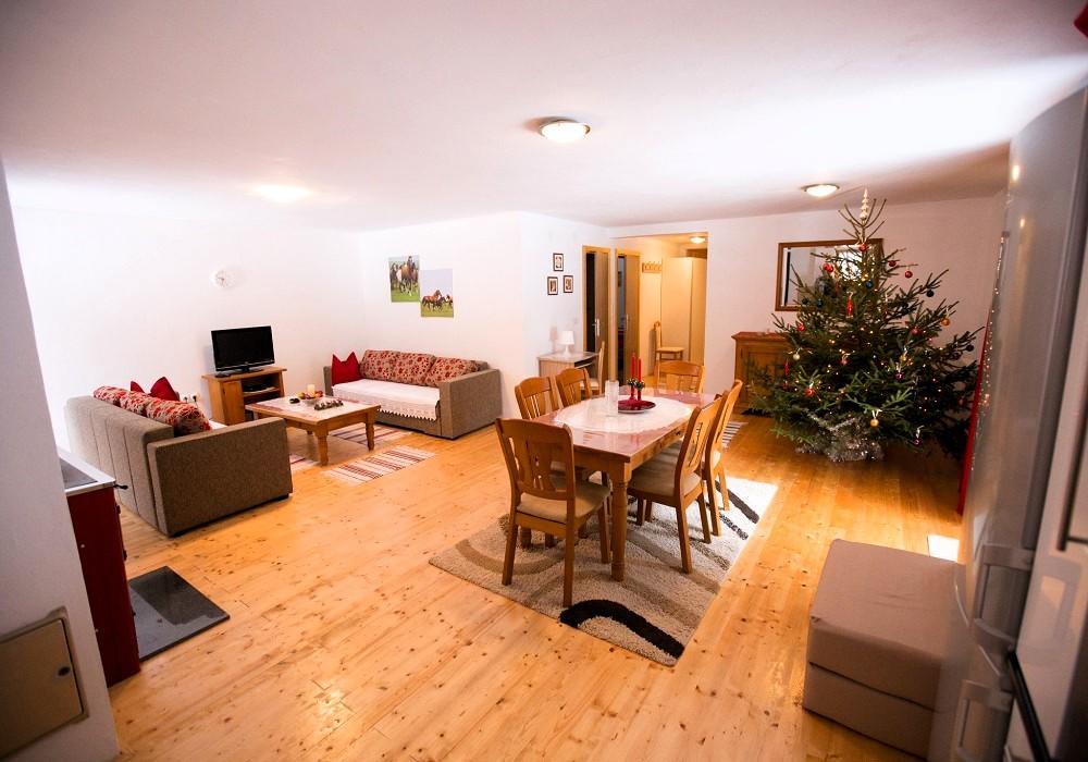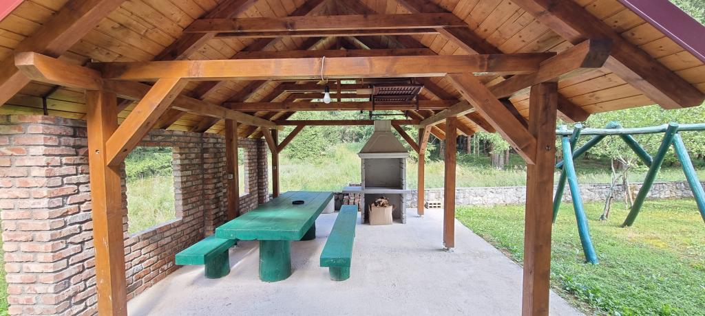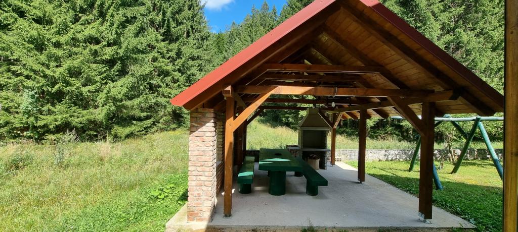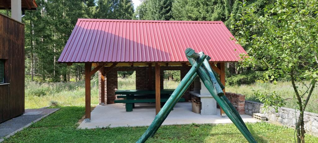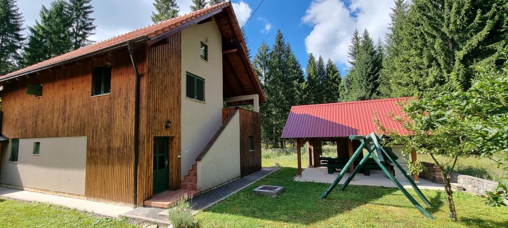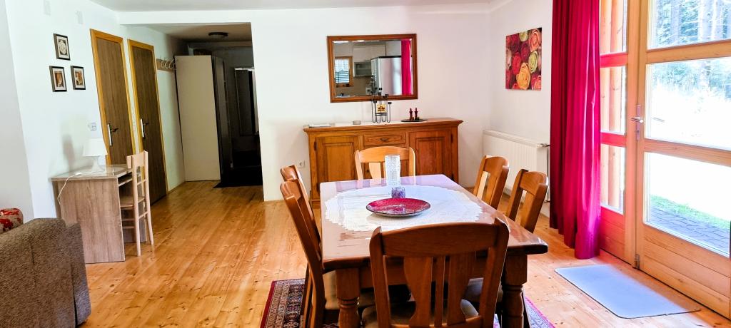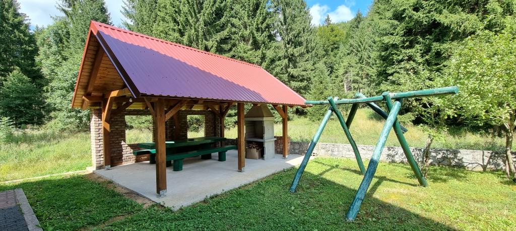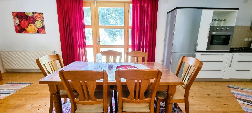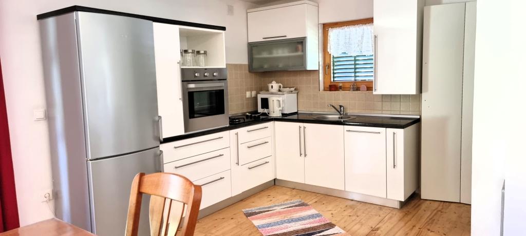 In beautiful nature right next to the forest, a comfortable apartment for those who want to escape from the hustle and bustle and relax in nature. A covered barbecue with a table and chairs and wooden swings are at guests' disposal.