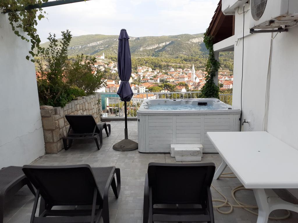 Beautiful apartment, spacious, comfortable and functional just above the center of Jelsa. Equipped with all the comforts necessary to enjoy your holiday, with a large terrace with hydromassage pool where you can relax while enjoying the fantastic view of the port. Furthermore, in the apartment you will find everything you will need during your stay, such as crockery, plates, sheets and towels, plus each room is equipped with air conditioning. The view from the large living room is also excellent thanks to the splendid windows which frame the various shades of Jelsa as the days pass like a painting. To complete the splendid stay there will be Damir the owner, an exquisite person who will make sure you have an excellent stay in Jelsa, once we arrived in Stari Grad, he accompanied us to the apartment and during the stay he made himself available for our every need. upon request, he also pampered us for the entire duration of the holiday, offering us lavender oil, plates of cured meats, cheeses, olives and giving us excellent wine. Highly recommended! Thanks again for everything Damir!