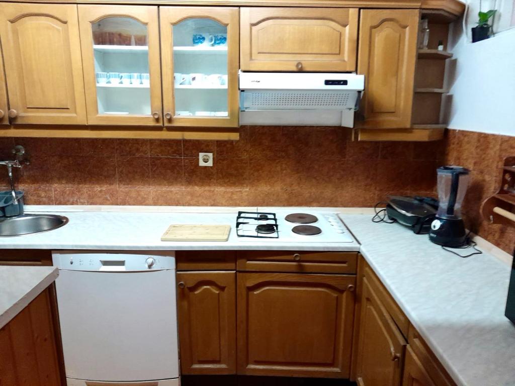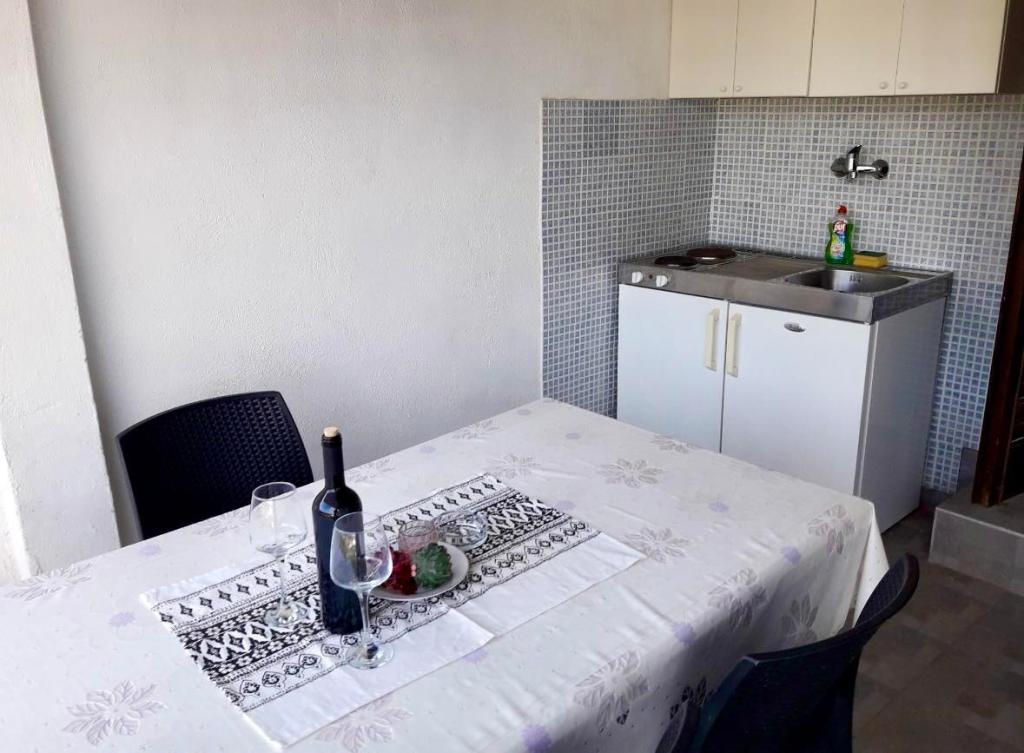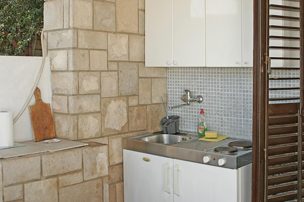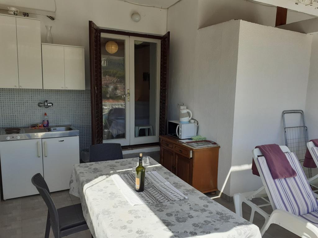 We stayed in the 2+2 studio and would say it's perfect for two people. There is all you need in the small outdoor kitchen on the terrace and just as shown on the pictures: a fridge, a small stove, a microwave, a water heater and even a small coffee machine. Dishes, silverware and pots were provided and if anything was missing the host Damir helped us out immediately. Damir´s hospitality was outstanding! He picked us up at our arrival from the ferry in Stari Grad late at night and gave us an early lift (4:45am!) on our day of departure so we didn't have to call a taxi. During our stay he spoiled us with domestic culinary treats like wine, olives, cheese and ham. Damir is the kindest and most thoughtful person and host. We really enjoyed our two week stay in his apartment, especially the outstanding view of Jelsa from the terrace by day and night.