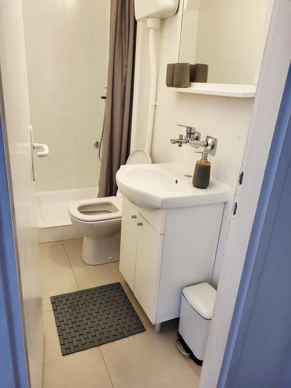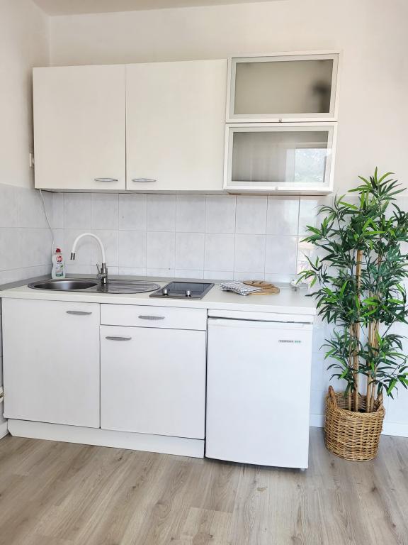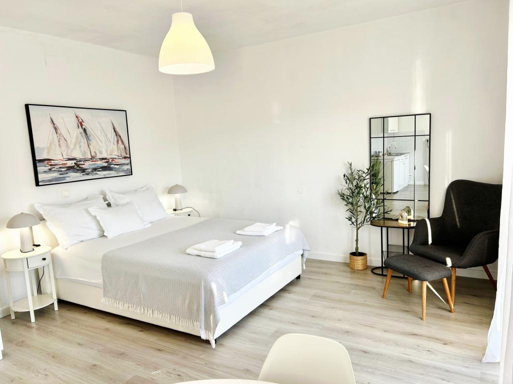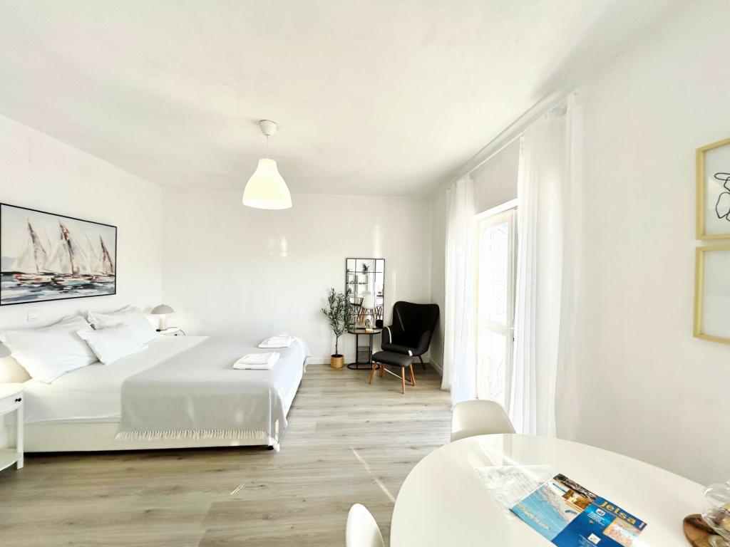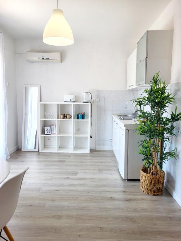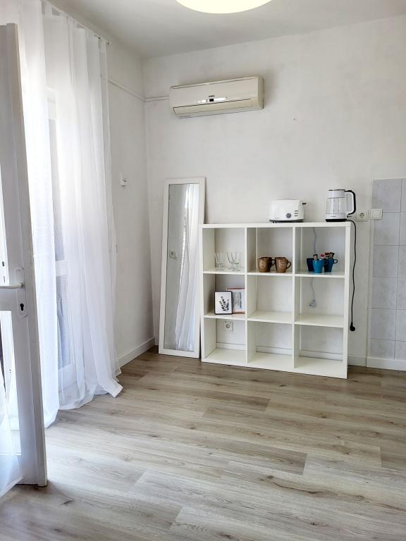 The studio apartment building is located in a quiet area of mostly family houses, approximately 400m from the sea and the first beach and 500m from the center. Private parking is also available.