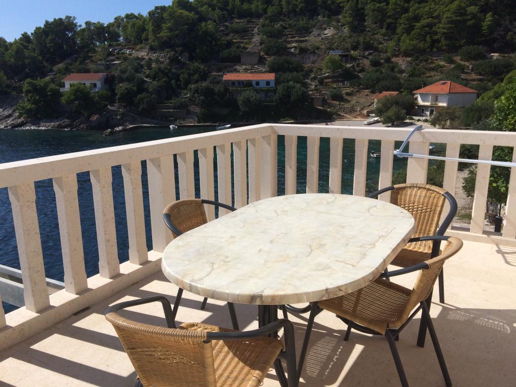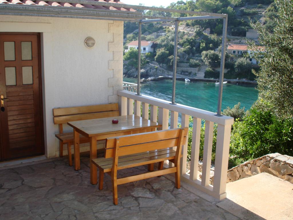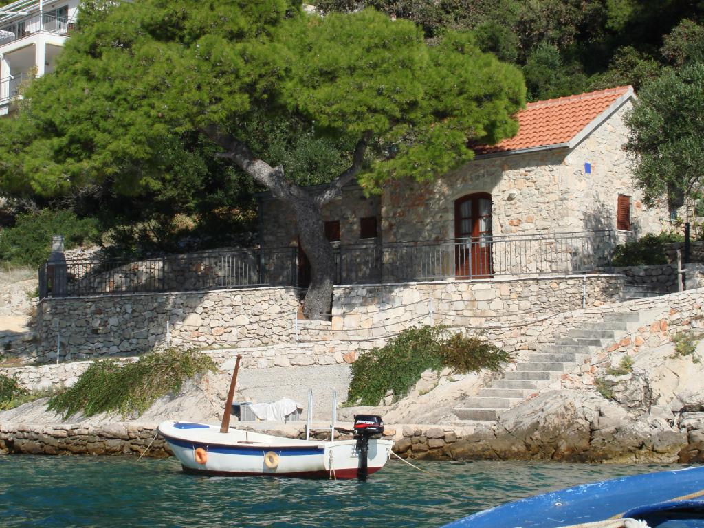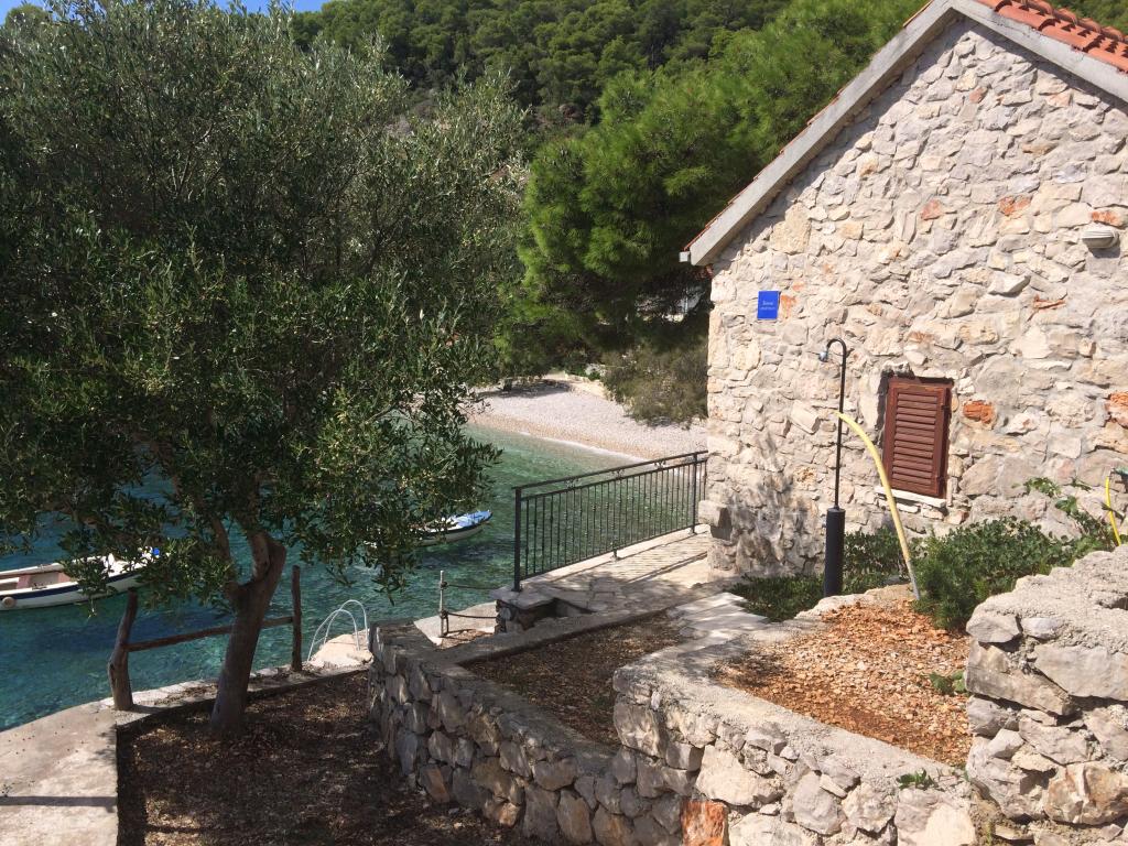 Modern apartments in Gdinj village, Torac bay. House on the seafront in a quiet bay just 50m from the pebble beach. Next to the house is a concrete boat dock that can also be used for swimming and sunbathing. The apartments are supplied with electricity and hot water from solar sources. Guests can also use a shared grill for wood and charcoal. A small grocery store with basic groceries and drinks and a smaller restaurant are located in the adjacent bay only about 300m away. Three bays further, about 2 km away, there is a fish restaurant. To the center of the village where there is a slightly larger shop and the restaurant is about 4km. The nearest pharmacy, pharmacy and supermarket are located in Jelsa, about 25km away.