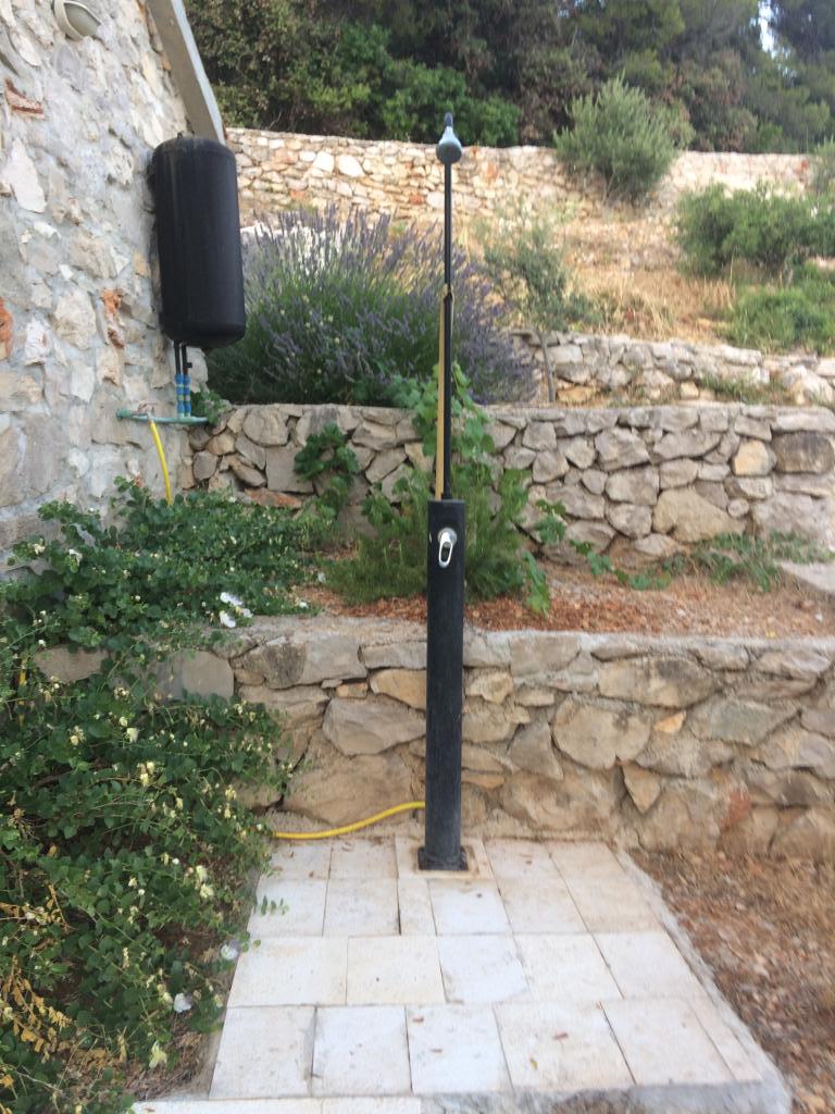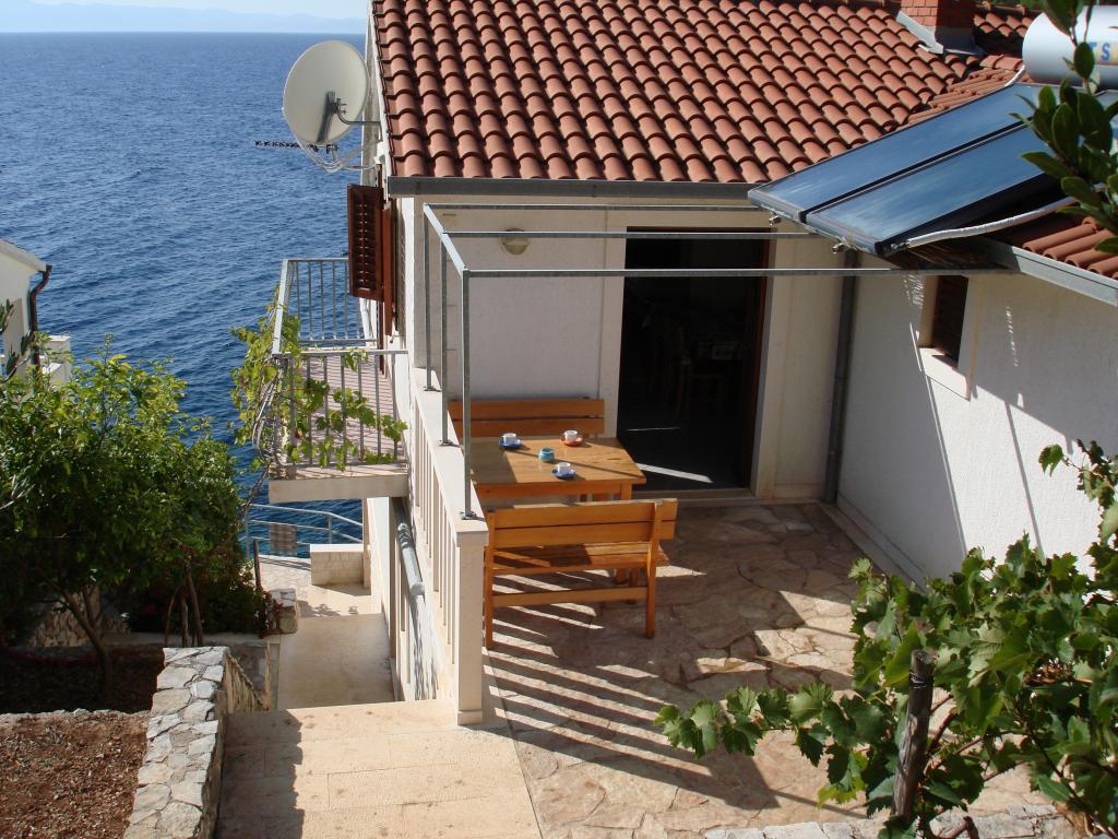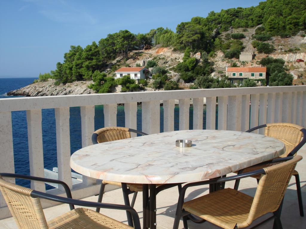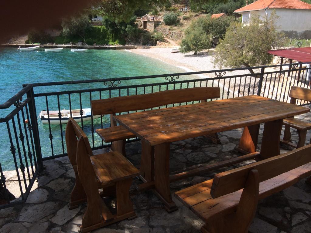 Modern apartments in Gdinj village, Torac bay. House on the seafront in a quiet bay just 50m from the pebble beach. Next to the house is a concrete boat dock that can also be used for swimming and sunbathing. The apartments are supplied with electricity and hot water from solar sources. Guests can also use a shared grill for wood and charcoal. A small grocery store with basic groceries and drinks and a smaller restaurant are located in the adjacent bay only about 300m away. Three bays further, about 2 km away, there is a fish restaurant. To the center of the village where there is a slightly larger shop and the restaurant is about 4km. The nearest pharmacy, pharmacy and supermarket are located in Jelsa, about 25km away.