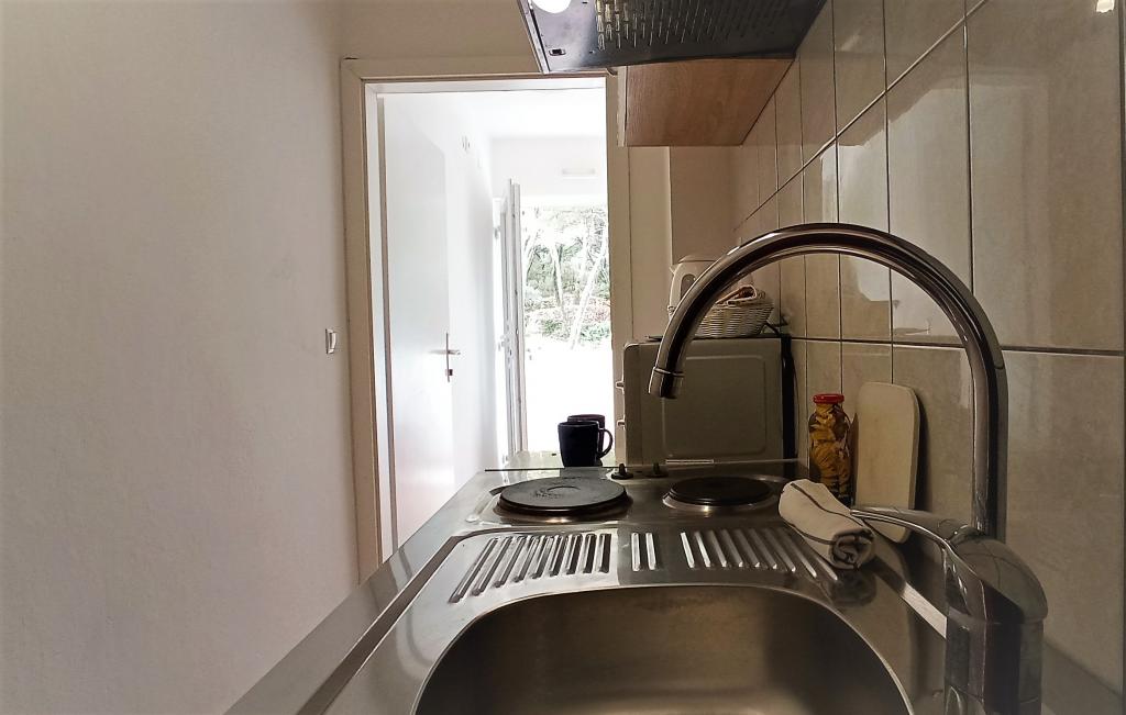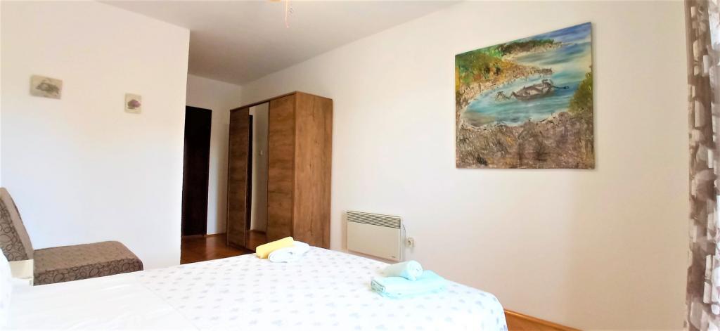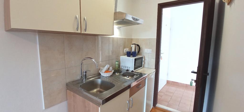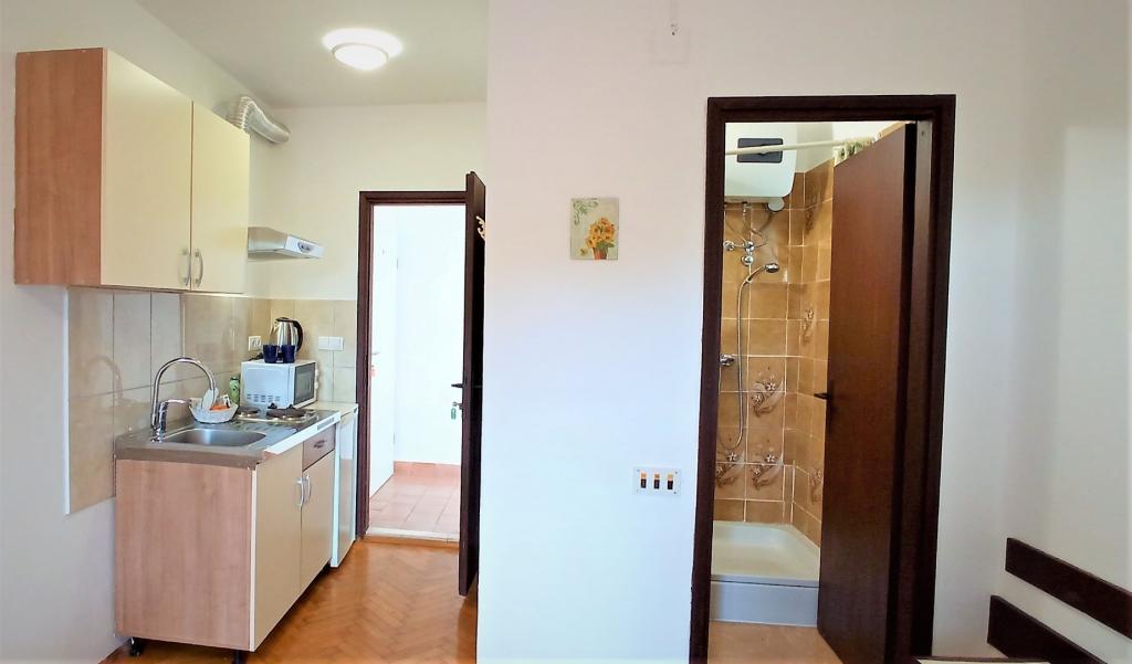 Perfect location with a lot of small beaches within walking distance. 2 rooms are really nice equipped - hotel standard. Each room has large SAT TV, bathroom, balcony and each room has it\'s own kitchenette!!!! Small gardens around house, pine trees, barbecue. Not far from the house you can find bars and restaurants. 5 minutes from the house you can rent bike and boat. There are also boat trips to nearby islands. Excellent!