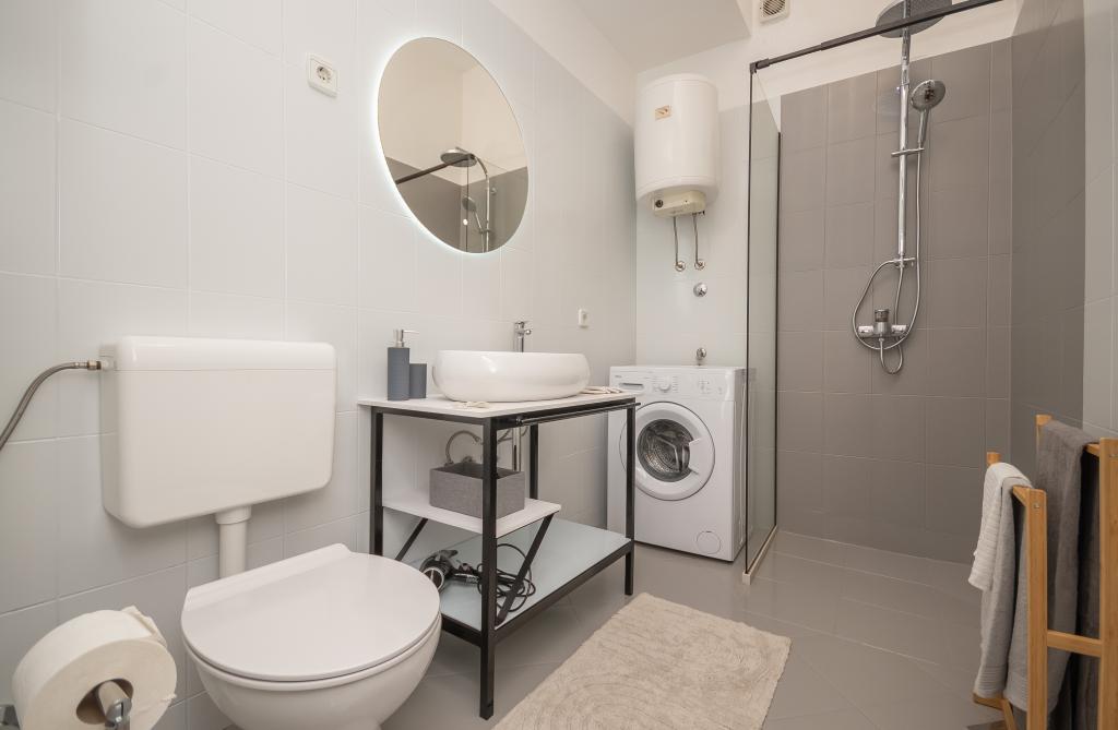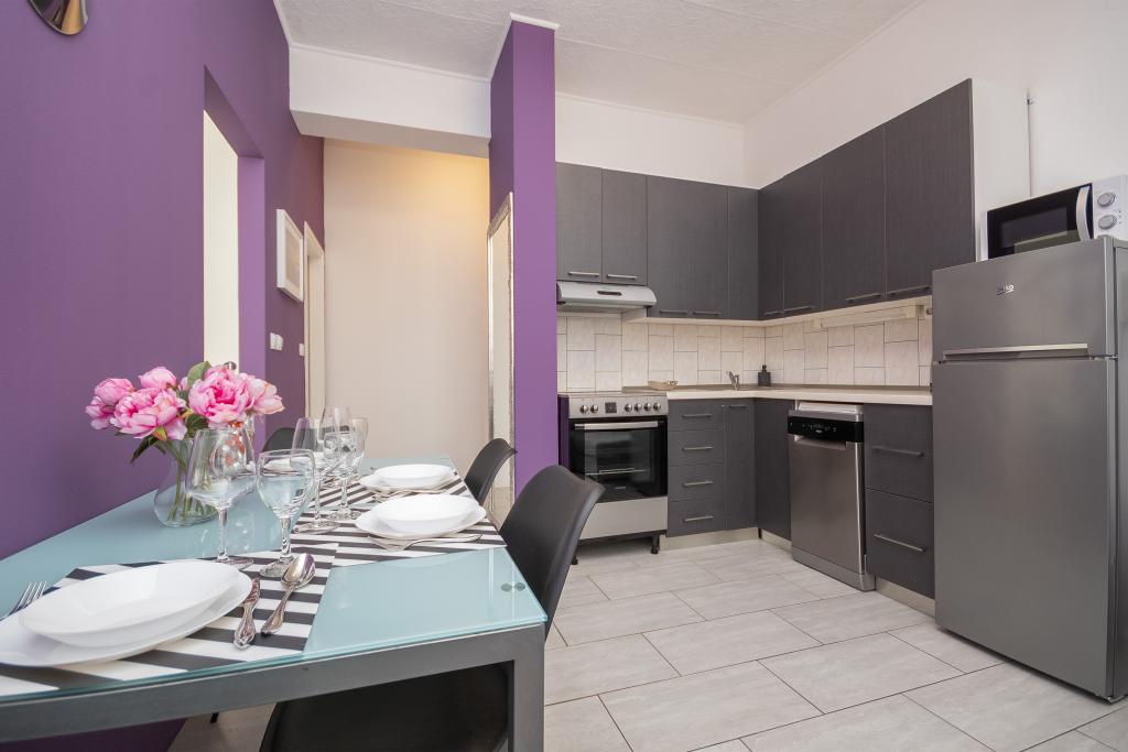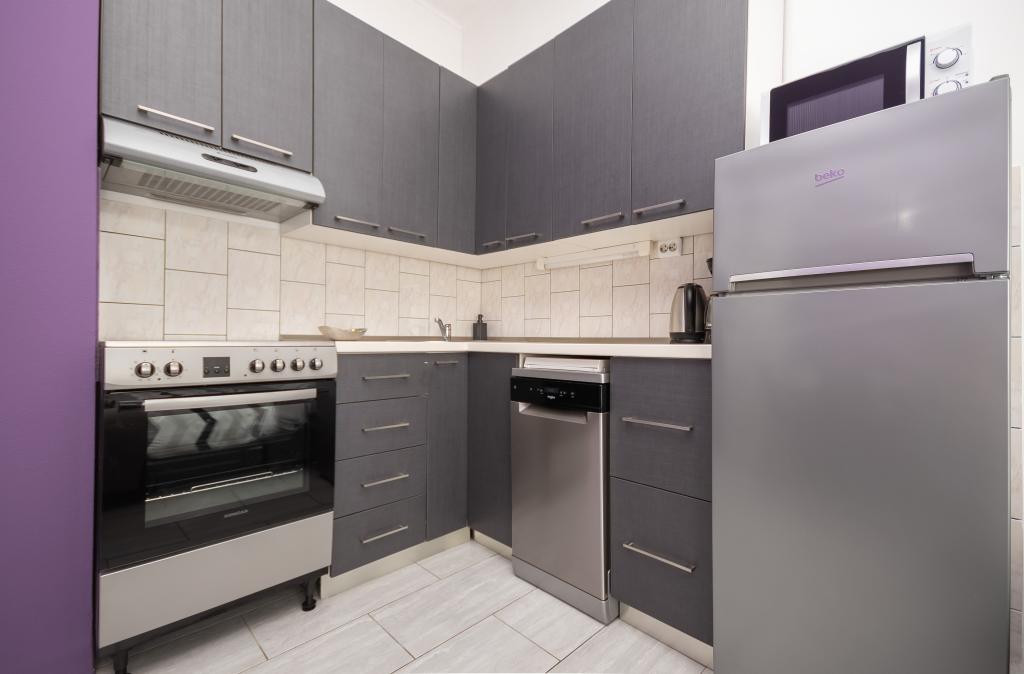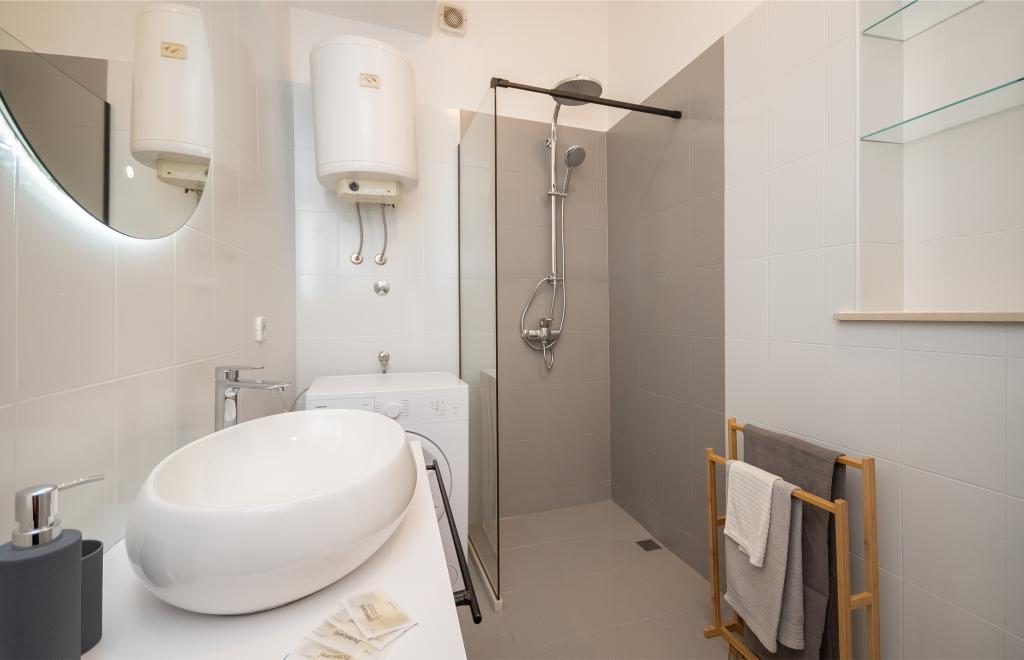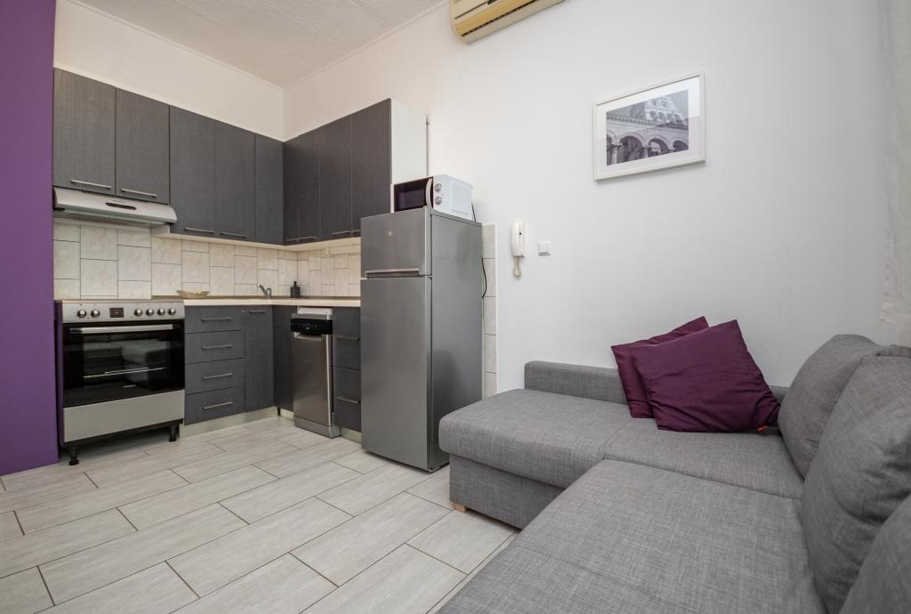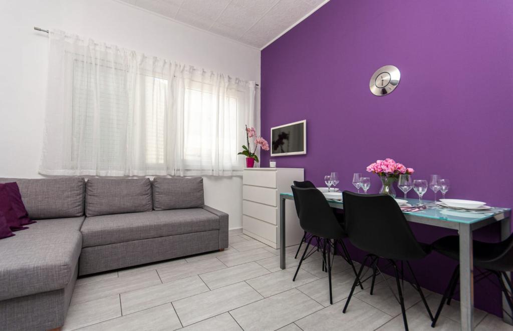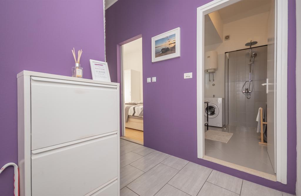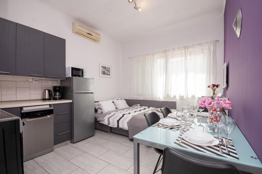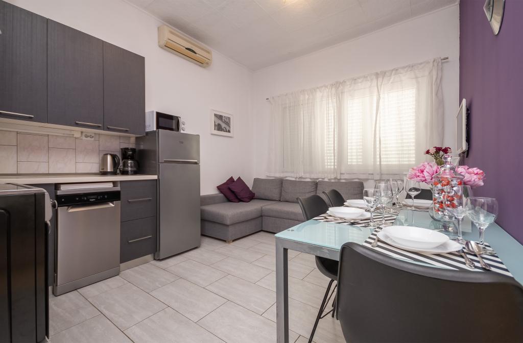 Apartment "B" is located in the small town of Sumpetar Jesenice, not far from Split and Omiš. It is 20 steps away from the pebble beach. The apartment is part of a family house located along the main road leading to Dubrovnik. It consists of a bedroom, kitchen and living room, toilet and shared balcony. It is suitable for 4 people. Parking and wi-fi are free.