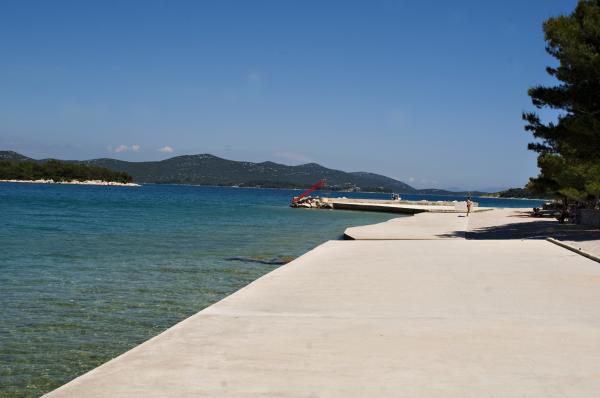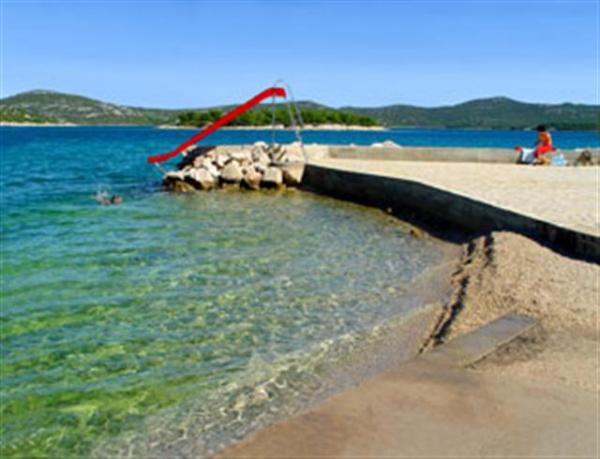 Apartments Slavica are located near the ACI marina Jezera. Apartments 1, 2, 3 and 4 have one bedroom, living room with two extra beds, kitchen, bathroom and terrace. Apartment 5 has a stone house with a fireplace for use, two bedrooms, a kitchen and a bathroom. The beach is a three minute walk away. All apartments have parking and free internet (WI-FI). The attached pictures are only 2 minutes walk from the beach from the apartment. The beach is suitable for small children because it has landscaped entrances, shade and a small playground. Opposite this beach there is a promenade and a beach that leads from Jezera to Tisno, and is 10 minutes walk from the apartment. Nearby you also have the bays Koromašna and Sveti Nikola which are not touristically arranged