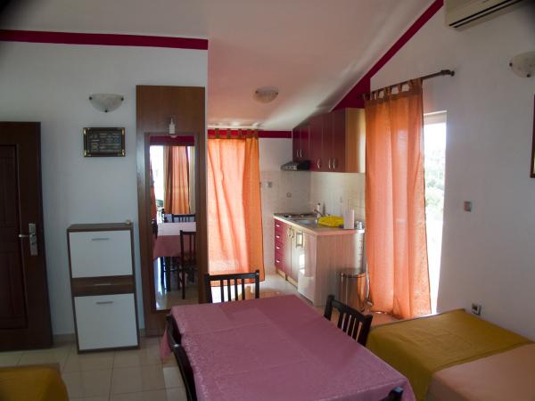 Mrs. Slavica very friendly and cordial ... Apartment decorated and clean with all necessary things (dishes; hair dryer; TV; air conditioning;) I was delighted by two terraces, both sea view !!! I definitely recommend.