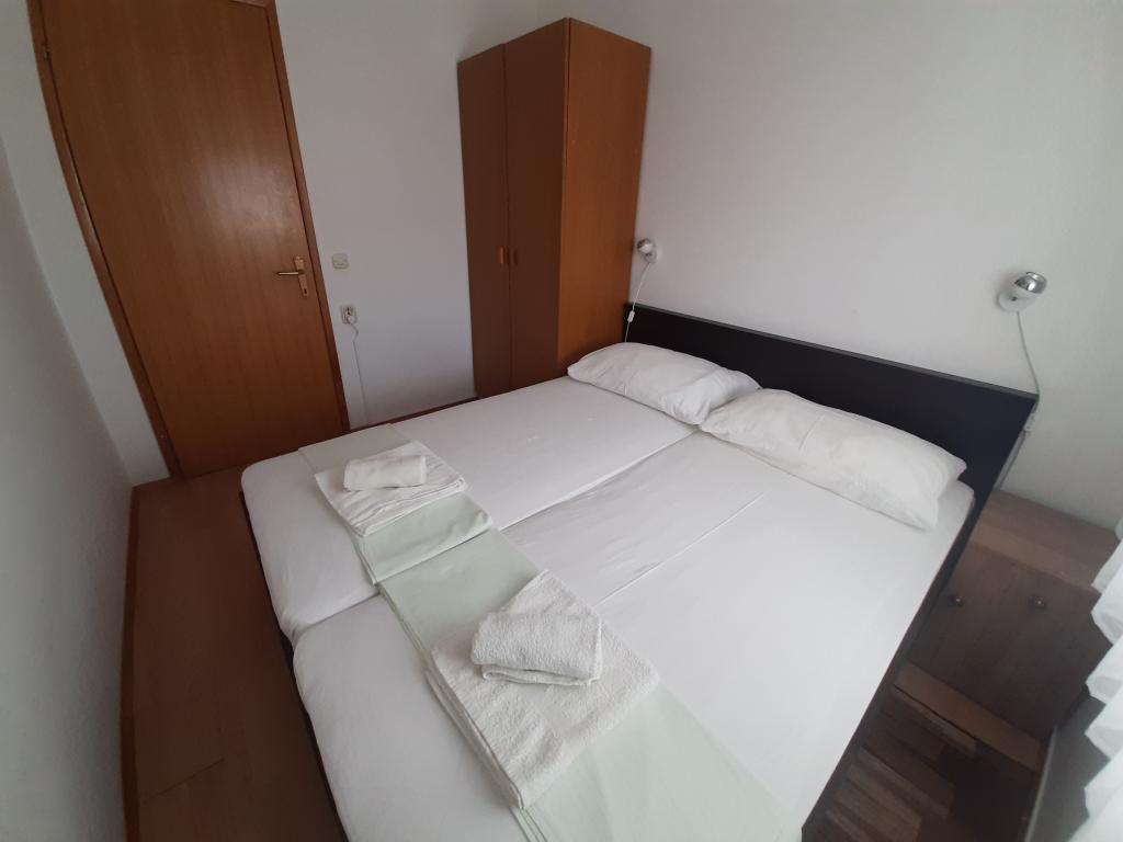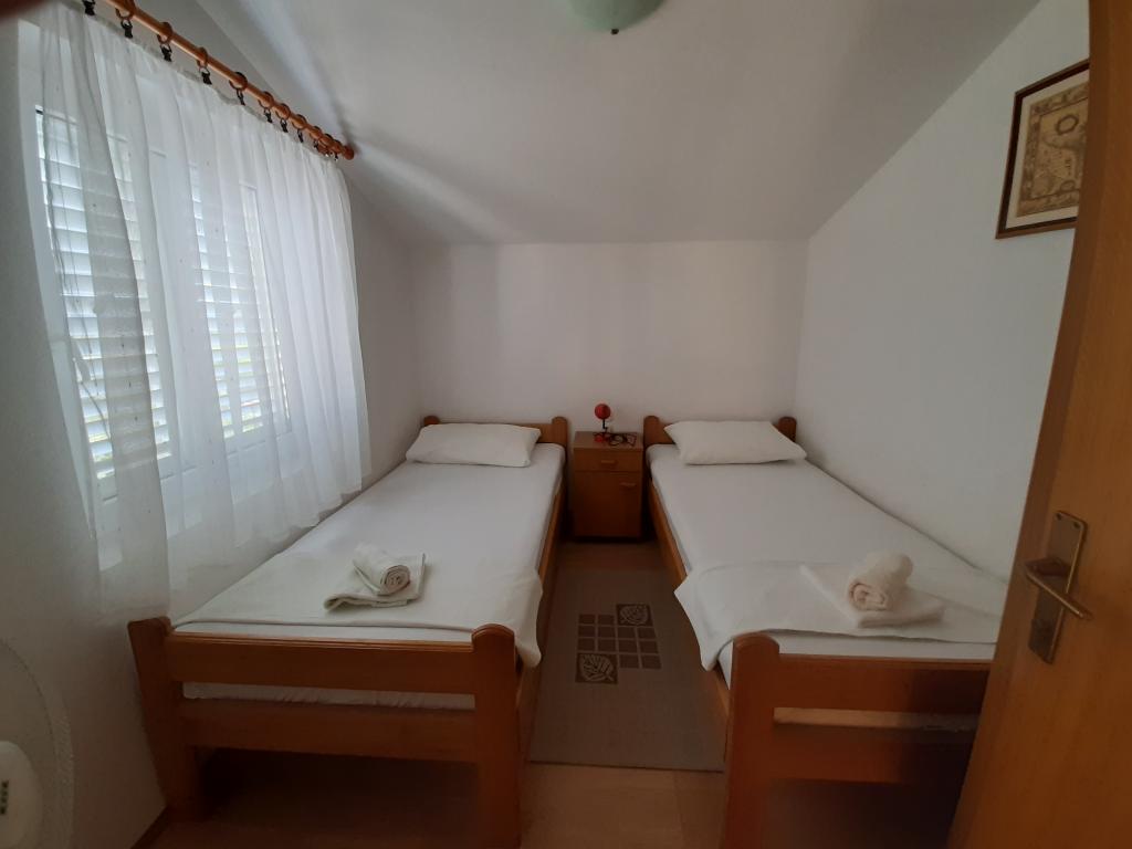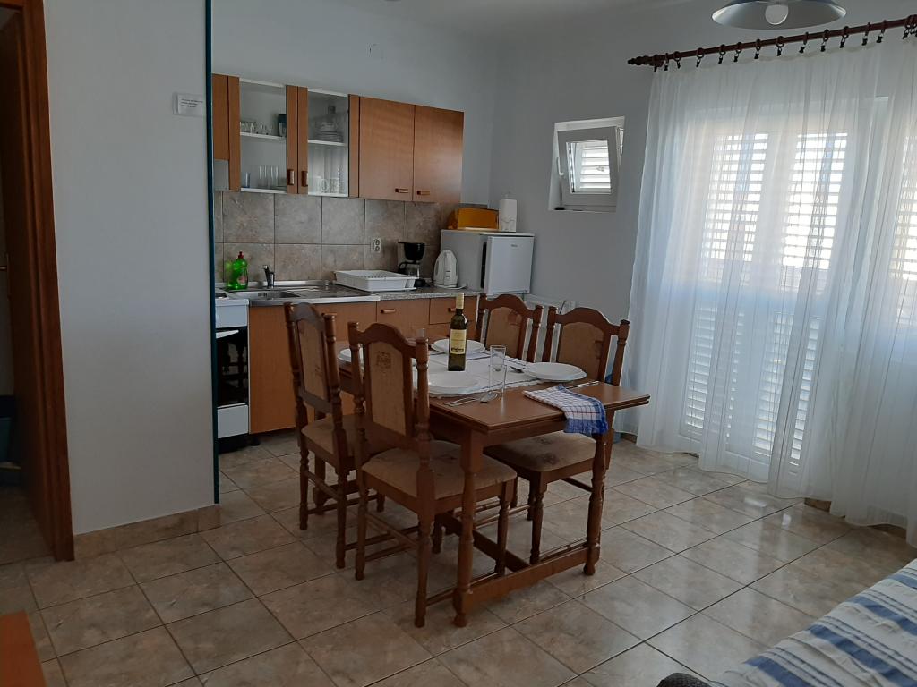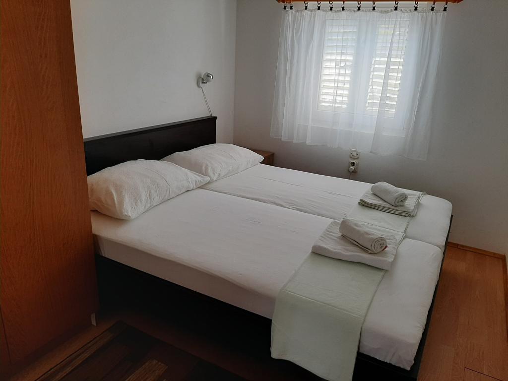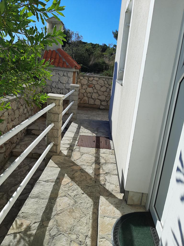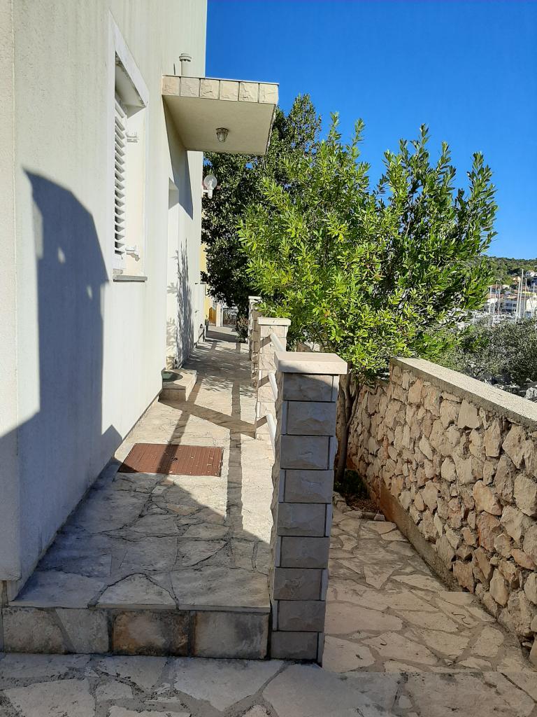 Apartments Cvrčak consist of two studio apartments on the first and second floor. Both have the same room layout and consist of two bedrooms, one of which has a double bed, a kitchen connected to the living room and a bathroom. One room is entered from the ground floor. living room, and in the second from the staircase. Both living rooms open onto spacious terraces with a view of the sea, the town and the harbor. Behind the house there is a terrace with a barbecue available for guests. Near the apartment, there is a beach with facilities for children, a 3-minute walk away, a shop a 10-minute walk away, while the ACI Marina Jezera and a sailing school are a 1-minute walk away. There are several pebble and concrete beaches nearby, and the island also has the famous sandy beach Slanica. A beautiful promenade connecting Jezera and Tisno is a 10-minute walk away, recommended for walking or cycling. Near the apartment are the Kornati and Krka national parks. Accommodation recommendation for sailing school participants. The apartments are fully equipped, and parking is provided in front of the building.