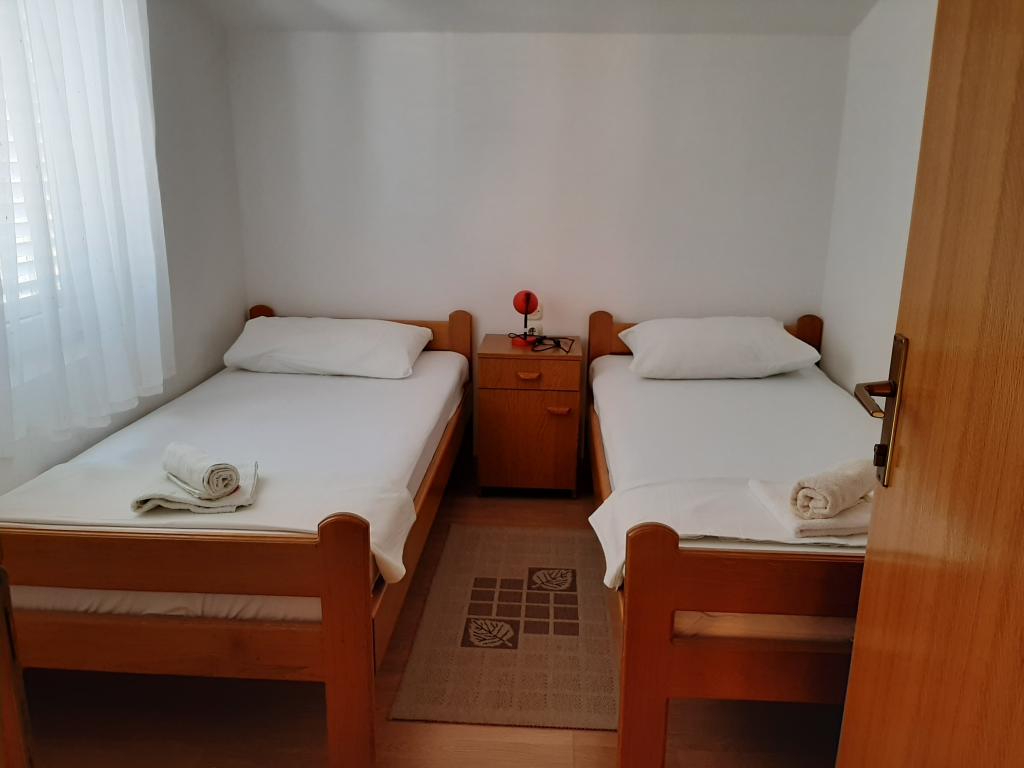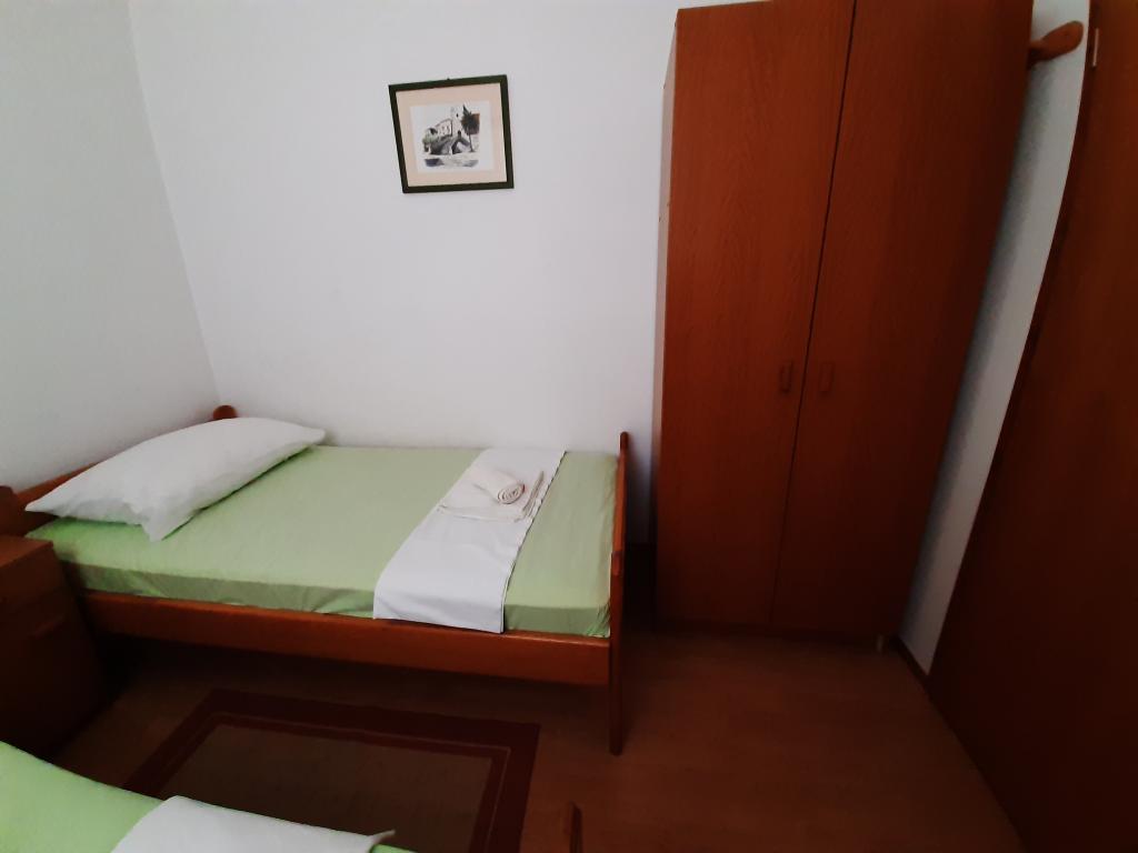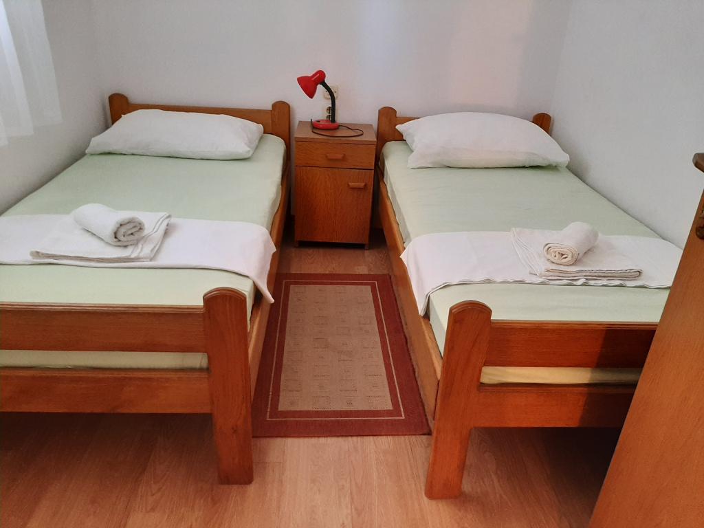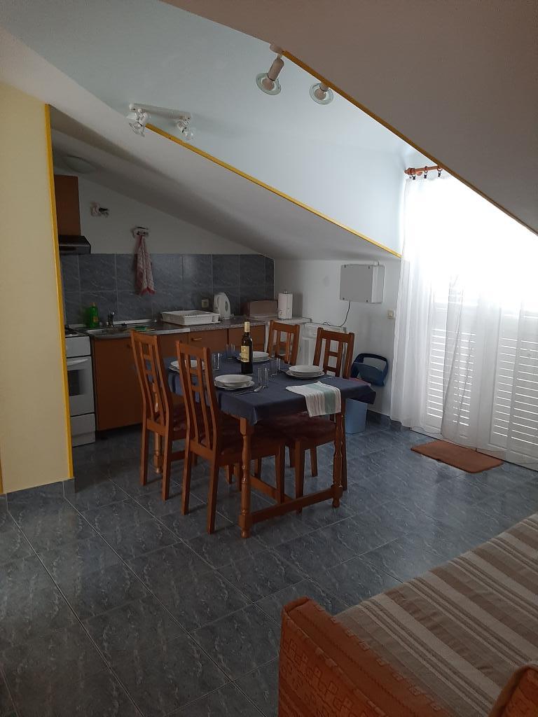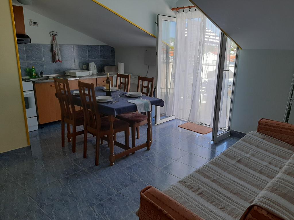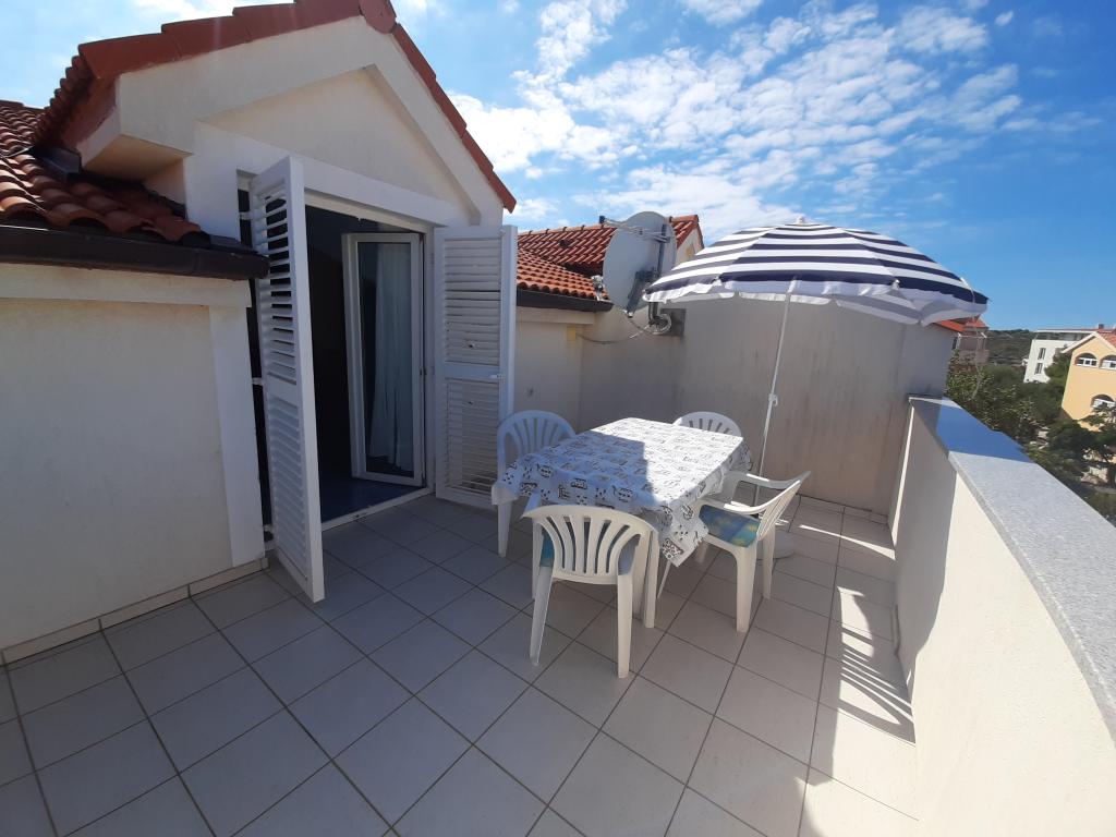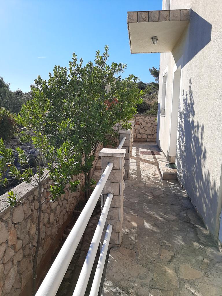 Apartments Cvrčak consist of two studio apartments on the first and second floor. Both have the same room layout and consist of two bedrooms, one of which has a double bed, a kitchen connected to the living room and a bathroom. One room is entered from the ground floor. living room, and in the second from the staircase. Both living rooms open onto spacious terraces with a view of the sea, the town and the harbor. Behind the house there is a terrace with a barbecue available for guests. Near the apartment, there is a beach with facilities for children, a 3-minute walk away, a shop a 10-minute walk away, while the ACI Marina Jezera and a sailing school are a 1-minute walk away. There are several pebble and concrete beaches nearby, and the island also has the famous sandy beach Slanica. A beautiful promenade connecting Jezera and Tisno is a 10-minute walk away, recommended for walking or cycling. Near the apartment are the Kornati and Krka national parks. Accommodation recommendation for sailing school participants. The apartments are fully equipped, and parking is provided in front of the building.