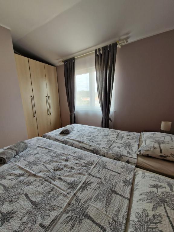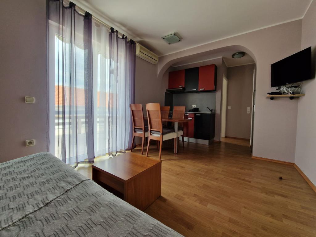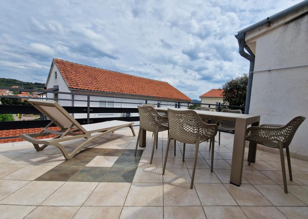 Tastefully furnished and fully-equipped apartments in the quiet zone, about 400 meters from the beach and 200 m from the center. The house has 2 apartments, both on the first floor. Each has one bedroom living room (2 of 2 beds), kitchen, bathroom and terrace. Guests have access to a washing machine, microwave oven, coffee maker, satellite TV, internet, grill and parking. Apartments are air conditioned, very comfortable, with large terraces and beautiful furniture. Staying in this house is sure to delight you.