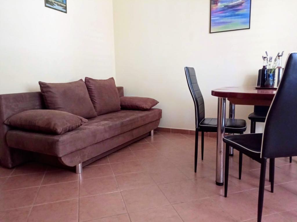 Fully equipped apartments in a quiet area located approximately 5-10 minutes walk from the town center and the local beach. The apartments are located on the ground floor of a private house while the owners live on the 1st floor. The apartments are extremely suitable for families with small children because the property has a large yard and mini children's facilities.
