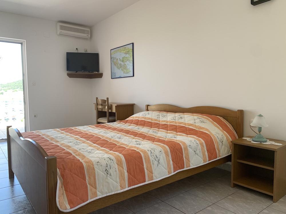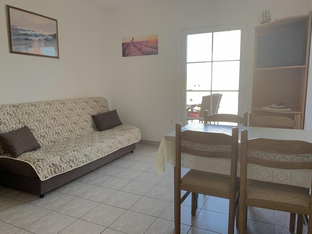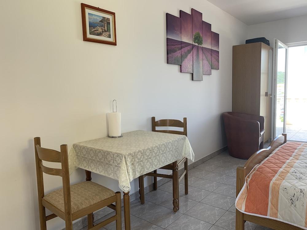 The Maja Apartments have spacious terraces overlooking the sea, secure parking, air conditioning, free wi-fi and barbecue access. Studio apartment (2 persons) consists of a room with double bed, kitchen and TV. It has a separate bathroom and a terrace overlooking the sea. The duplex apartment (4 persons) extends over two floors. On the first floor, at the entrance, there is a bathroom with a washing machine. The living room has a kitchen, fridge and satellite TV, and access to the terrace. On the second floor, which is reached by an internal staircase, there are two bedrooms. One of the bedrooms has a double bed and a private exit to another terrace overlooking the sea. The main city beach is 200 meters (3 minutes walk), the waterfront with many cafes and restaurants 300 meters (5 minutes walk) and a large supermarket 800 meters (10 minutes walk). The place has pebble and concrete beaches with facilities for children, and there are several sandy beaches nearby. The island is connected to the mainland by a bridge and is 25 km from the highway.