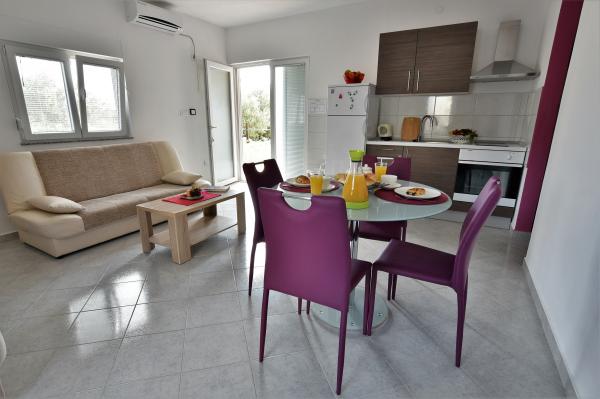 Wonderful apartment! Spacious, clean, tidy, regularly maintained, pleasant, just enough equipped ... Bed linen, towels and kitchen towels changed regularly. The owners are very, very friendly, helpful, smiling and "not interfering with your holiday ". Location is good, the images on the website are real, just walking distance from the beach is only 200 meters, but more, about 5 minutes walk along a straight road, the wheels were you there soon. This installation recommendations, we have all the friends who go on vacation to the sea and would also others! Really, very nice and pleasant! In the evening's events in a more calm, more "nightlife " need to go elsewhere. For walks by the sea and the stalls is a very suitable location. Excellent to have a bike with you. Nice is also a path along the sea to the city Tisno, recommended for walks and excursions by bike. The beach is very nicely decorated, shady places, there are also showers and a bar. Recommended for families with children. Overall, we were very happy to leave! Although not usually walk several times on the same site, I will definitely come back! Best holiday ever!