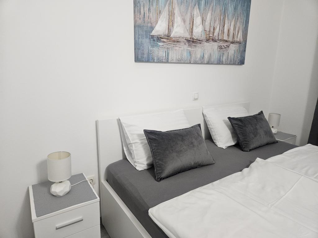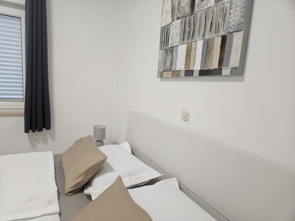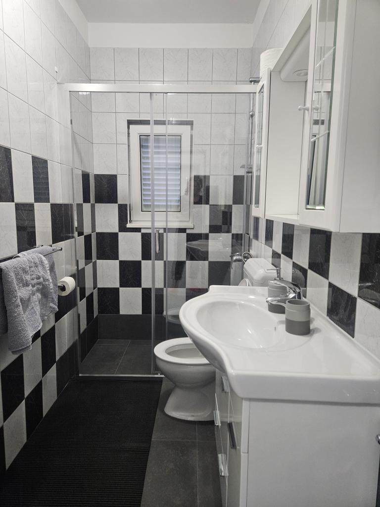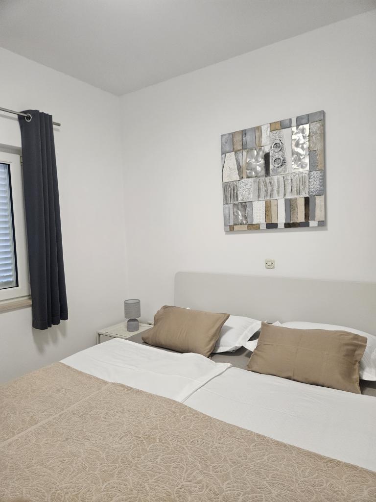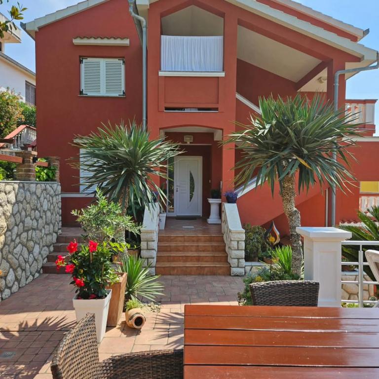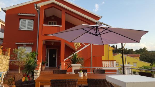 Apartments Ana Rab is a house with a beautiful view, situated in a quiet part of the island of Rab, Kampor, only 70 meters away from the first sandy beach. Modernly equipped apartments each with its own entrance and private terrace, as well as a beautifully equipped garden with a main garden terrace with fireplace and hot shower. Within the facility is a private parking lot. Within 150 meters there are restaurants, a grocery store, two cafe bars, a bakery, a hairdresser's salon, a tennis court, a diving center, a basketball and miniature football pitch, a tourist agency with an exchange office. Welcome!