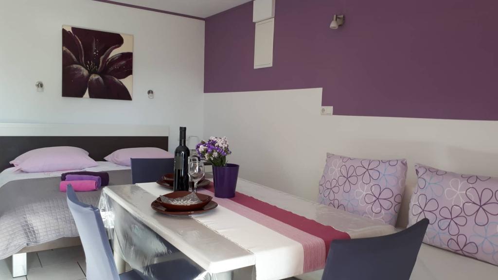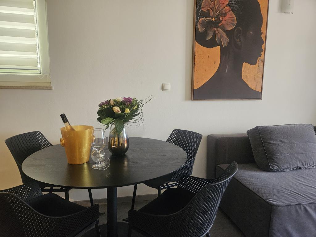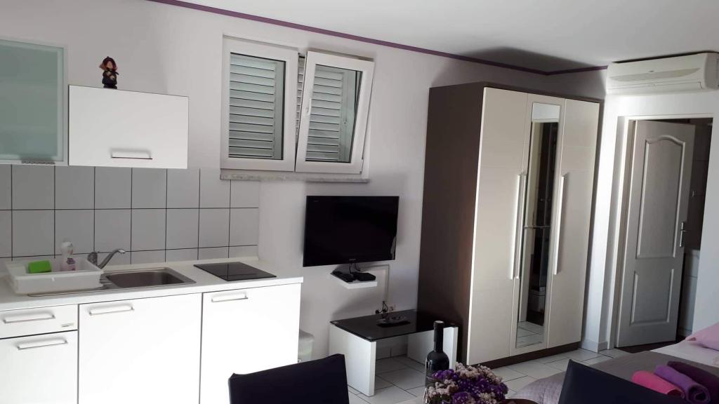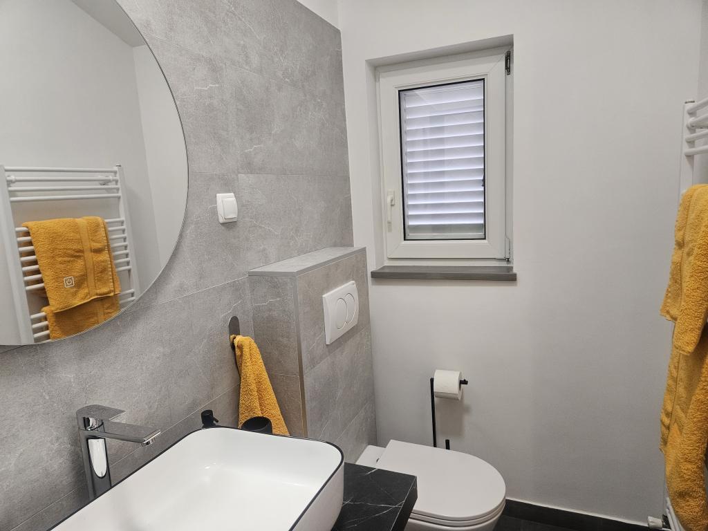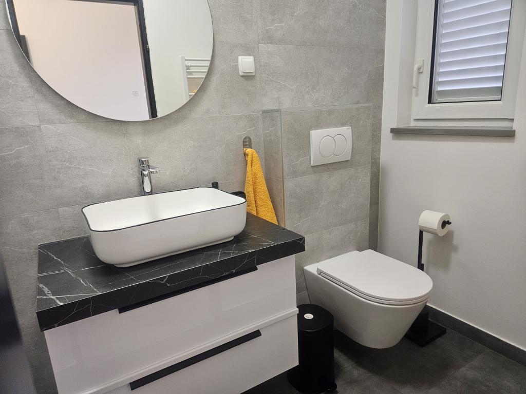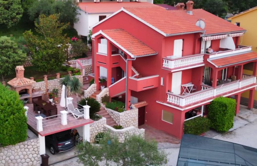 Apartments Ana Rab is a house with a beautiful view, situated in a quiet part of the island of Rab, Kampor, only 70 meters away from the first sandy beach. Modernly equipped apartments each with its own entrance and private terrace, as well as a beautifully equipped garden with a main garden terrace with fireplace and hot shower. Within the facility is a private parking lot. Within 150 meters there are restaurants, a grocery store, two cafe bars, a bakery, a hairdresser's salon, a tennis court, a diving center, a basketball and miniature football pitch, a tourist agency with an exchange office. Welcome!