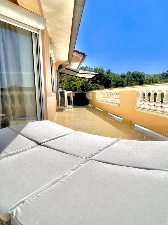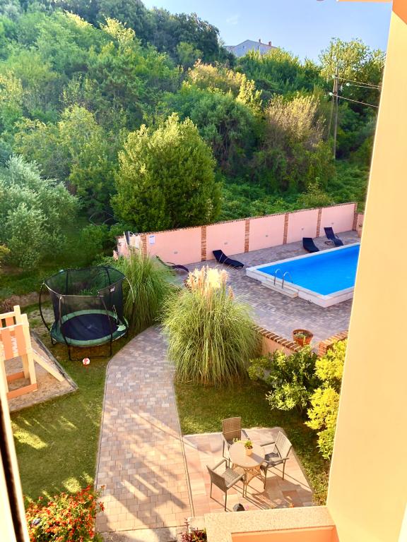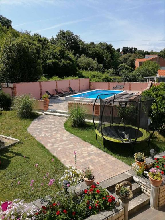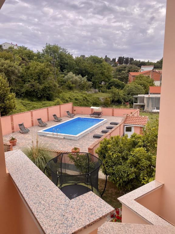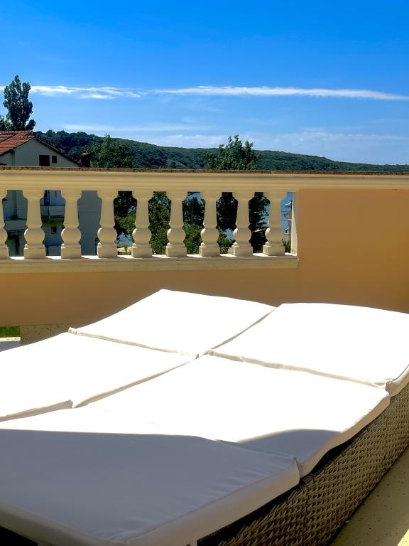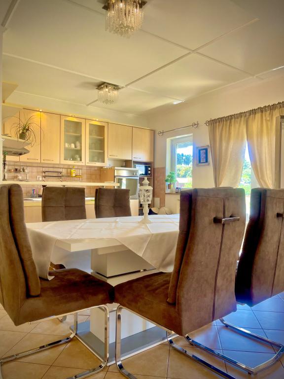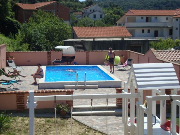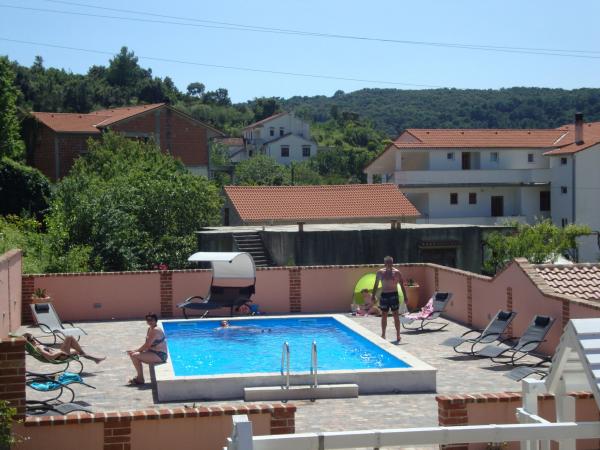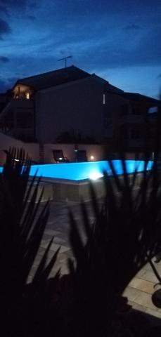 This summer we stayed for about 3 weeks with several families throughout the house. It was our 1st trip to the island of Rab and we are thrilled! Marija and her family gave us a warm welcome and were always very friendly, we were happy to chat with everyone. A service even with fresh towels and bed linen. You can even use their washing machine on request. If you want, you can even rent a boat from your son Mario or let yourself be taken to small bays. The house is very well maintained and is kept clean every day. The house is tucked away at the back, but you still get the sea air. All apartments have air conditioning in the living area, for the smaller apartments the air conditioning is sufficient and top. Unfortunately, the air conditioning for the 6-person apartment on the 1st floor only cools the living room, for the bedrooms there is no longer any cool air. At the beginning of our holiday, no air conditioning was necessary, because at night cool air came into the rooms, if it didn't cool down at night, it was already very warm. Facilities in the accommodations were very good, everything was plentiful, if you needed something just ask Marija and you got it. The pool area was also very nice, but there are no shaded areas (we had brought umbrellas with us), we used the pool early in the morning or late in the afternoon. There was also a wonderful covered barbecue area, we asked Marija beforehand if it was possible to barbecue, so that everyone in the house had the opportunity to use it. A few meters to the sea, port, cafes and shops, so we could leave the car behind. It was a perfect vacation we will be back. Thanks for this nice time
