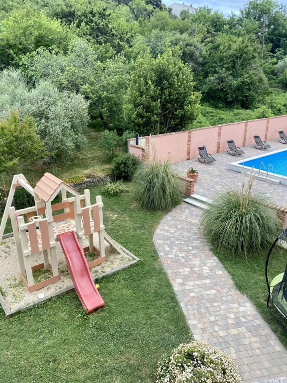 beautiful, comfortable and modern apartments, located in a quiet part of Kampor. We have a swimming pool, childrens garden with swings, private parking, barbecue with gazebo that is available to apartment guests. The sea and the beach are a 2-minute walk away. within approx. 50 to 200m there are restaurants, supermarket, coffee bar, bakery, hairdresser, tennis court, diving center, basketball and five-a-side football field, travel agency with exchange office.