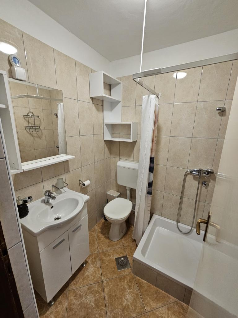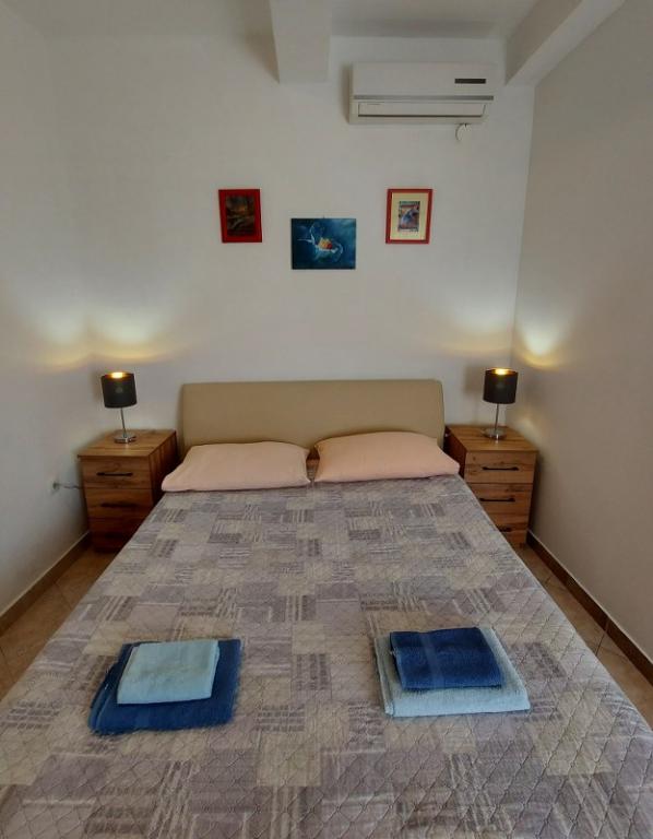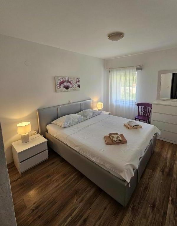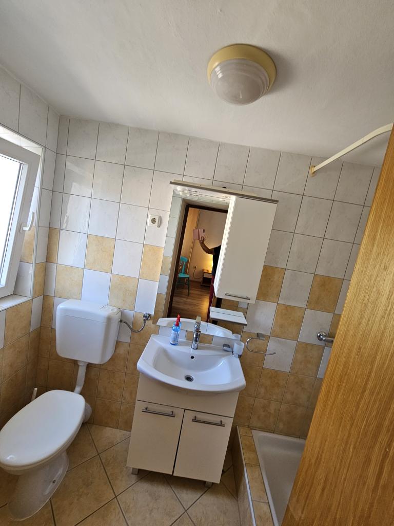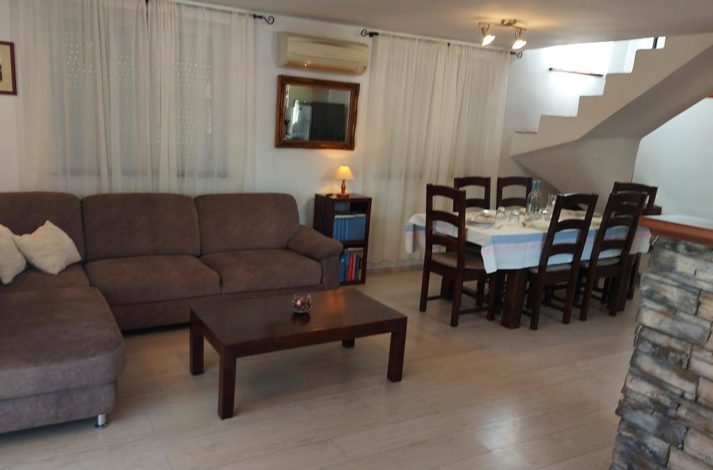 Family house with a fully equipped three-bedroom apartment on the second floor. Beautiful panoramic sea view. The apartment has a covered terrace accessed from the living room, and on the same floor there are two more bedrooms with bathrooms (entrance from the bedroom). Upstairs in the attic is the third bedroom from which you can access an uncovered terrace also with a sea view. Next to the room is a separate bathroom with a washing machine. The first beach is a 5-minute walk from the house, the other beaches are 100-200m away and more. Not far from the house is a promenade by the sea, a children's playground, a tennis court, a basketball court, a bowling alley, boat rental, bicycles, mopeds. Grocery store, cafe, exchange office, massage parlor, restaurant, pizzeria, small harbor. Family house with an offer for a peaceful and beautiful vacation.