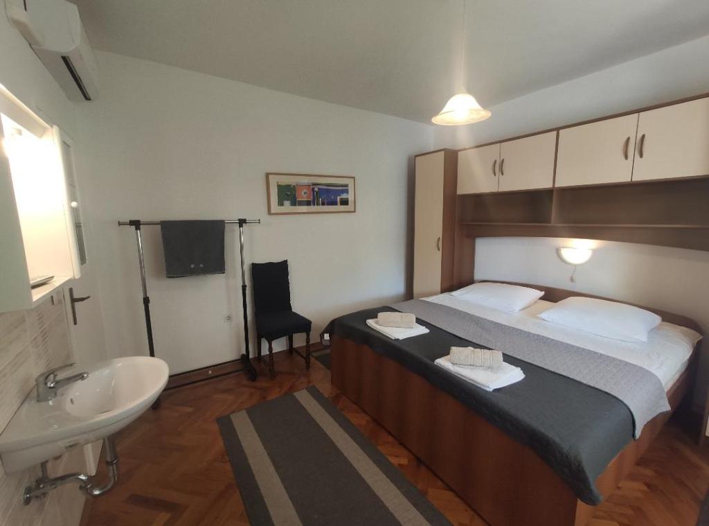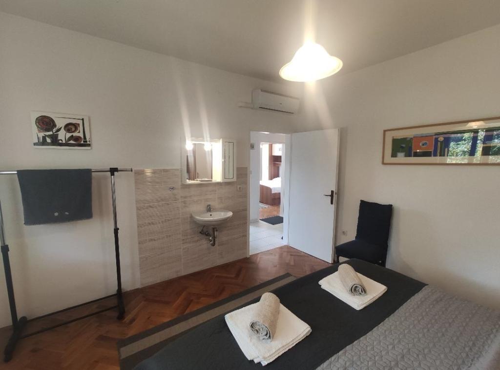 Fully furnished apartments in a quiet area of Rab, in a beautiful bay, the sea, 5 walking to the center.