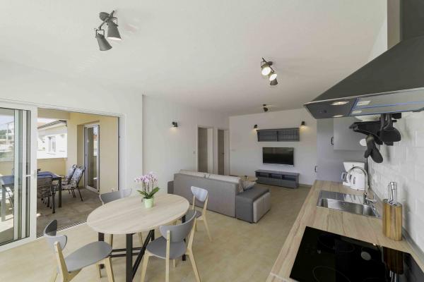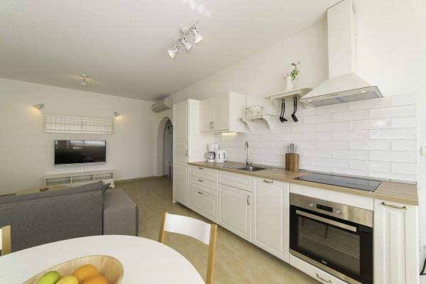Apartments with a view of the sea with the possibility of using a barbecue. An option is a speedboat mooring nearby. Speedboat rentals are also available nearby (requires a license to operate a boat). Available parking next to the apartment. The distance from the sea is 100m as the crow flies, or 300m walking or driving. 6 minutes on foot. A children's playground with a beach is also 300m from the house. Within less than 1 km there are restaurants, a market, cafes and a diving base. Bicycle rental can be arranged at the local service - bicycle shop, and the location of the apartment is suitable for those who enjoy walking or running in nature.