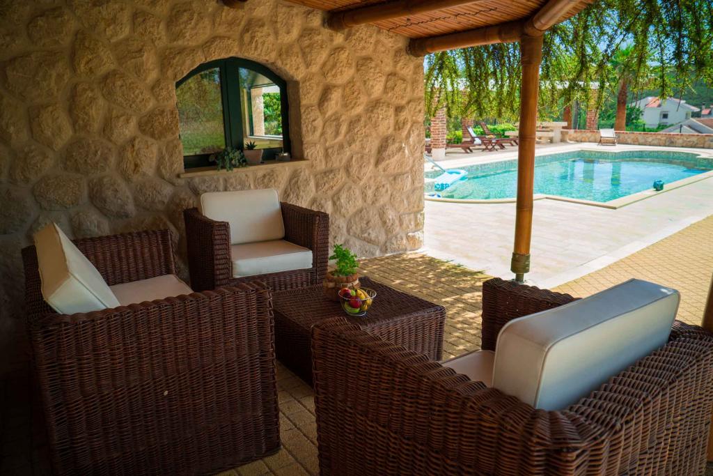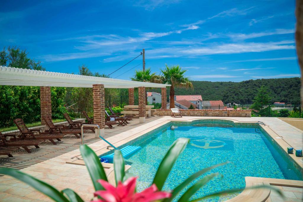Residential tax is included in price.On a large area above the house stretches a beautiful garden for a longer stay in the evening and afternoon. There is a children's playroom, a lavish table and a lavish and well-appointed grill, an equipped kitchenette with a toilet, and several garden tables and chairs. Modern equipped outdoor swimming pool, size 9, 50 x 5, 20 meters, depth 1, 50 meters, equipped with deck chairs and parasols and snack pool. You will be amazed by the sea view from the beautiful garden and sunbathing area around the pool. Possibility of boat excursions around the island of Rab, picnic, panoramic trips, boat trips to the neighboring islands of Pag, Lošinj and Krk. We provide boat mooring for boaters, and for our youngest, darts, table football and air hockey.