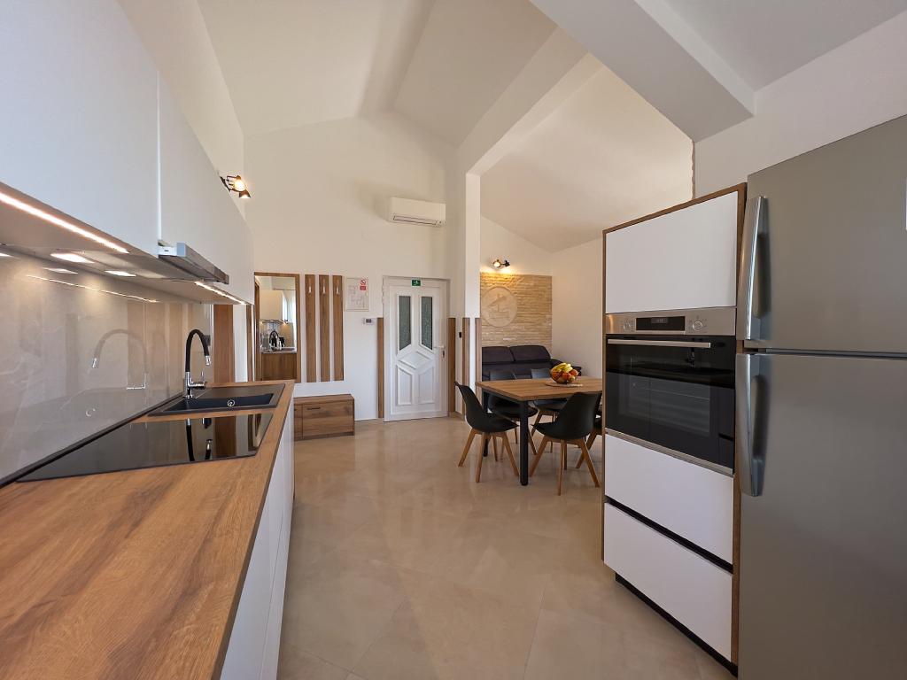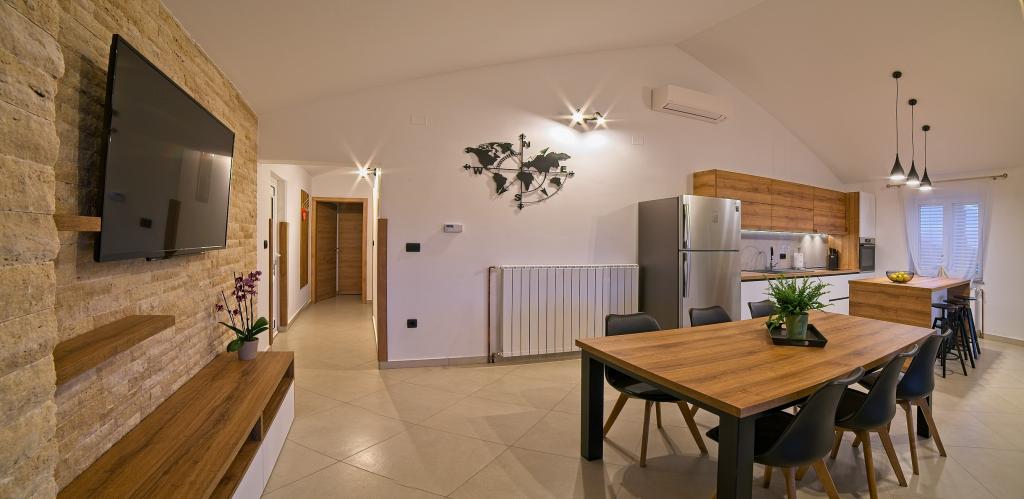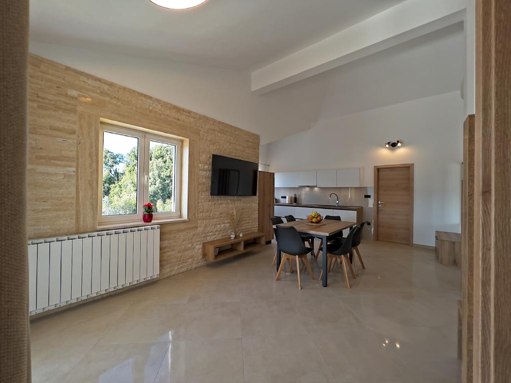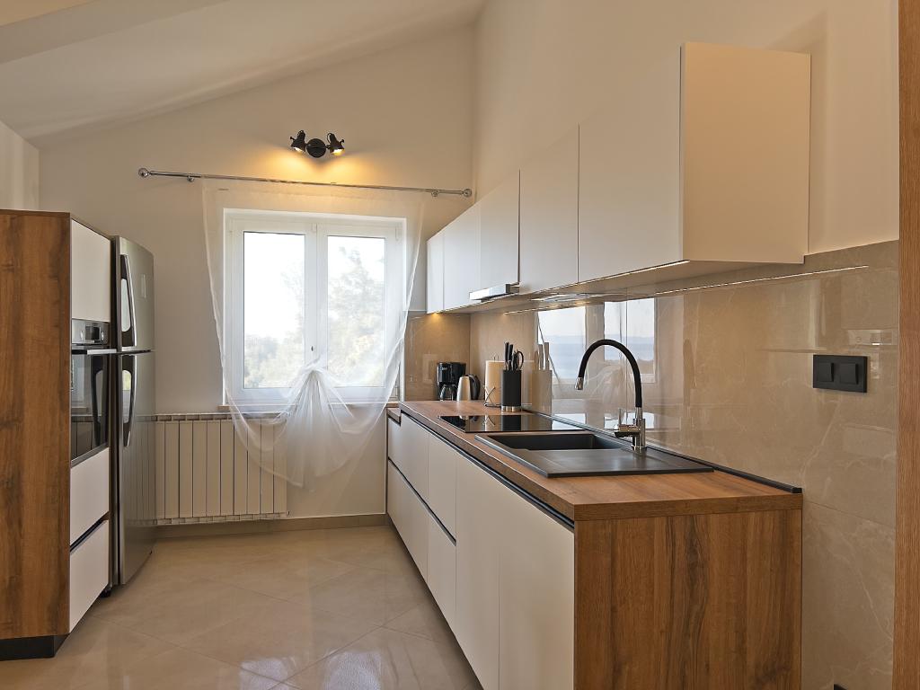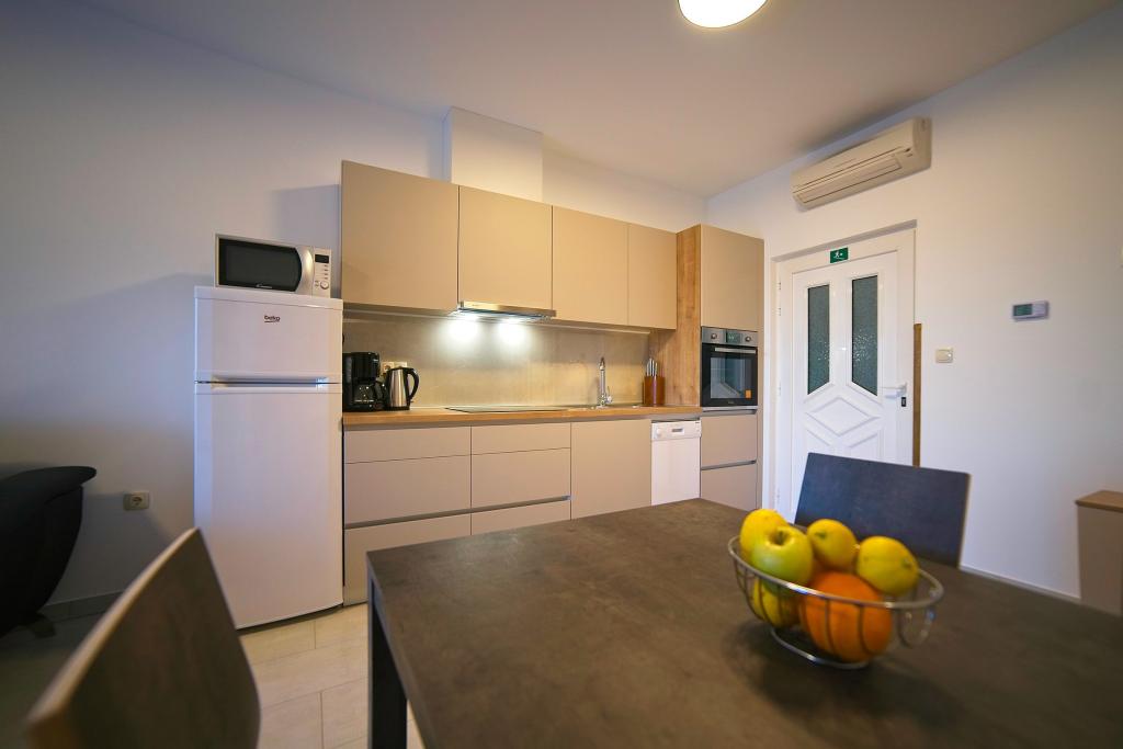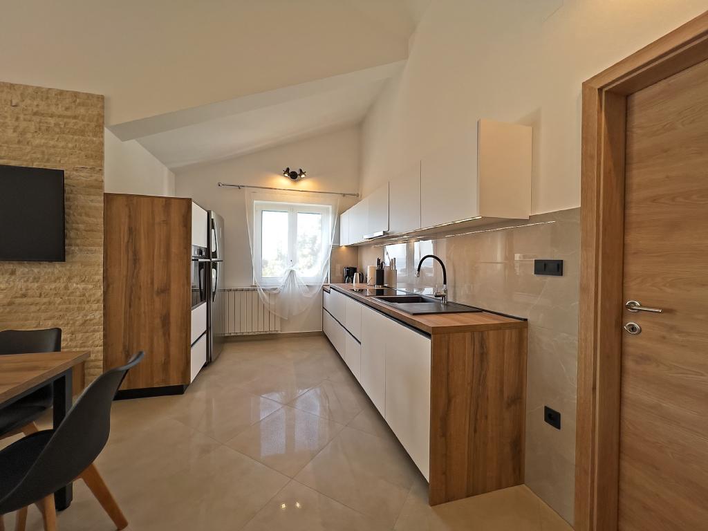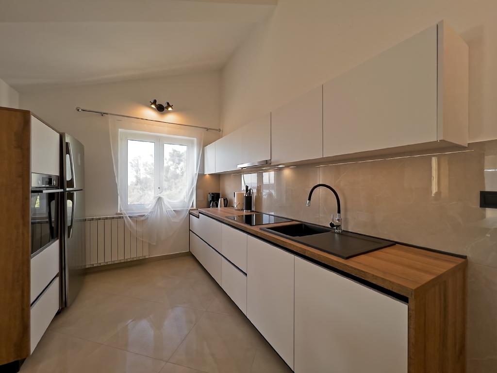 In Kampor on the island of Rab, 400 meters from the sea and a beautiful sandy beach, a modern and newly furnished and equipped holiday home with a special view of the sea and the entire Kampor bay. Holiday house Villa Milena on the island of Rab has a total of 5 apartments (apartments) for 2 to 6 people. The house is located in a beautiful, quiet, elevated location. It is 400 meters from the sandy beach that is visible from the terrace and the garden of the house, 500 meters from the town center and 5000 meters from the 2000 year old town of Rab. The sandy beach, with its shallow sea, emerald colors, offers a specialty for families with children, and curious people and historians will enjoy a walk in the old town, especially in the evening. Kampor also offers many sporting opportunities, both at sea and on land, and above all clean and comfortable air, suitable for heart patients and asthmatics.