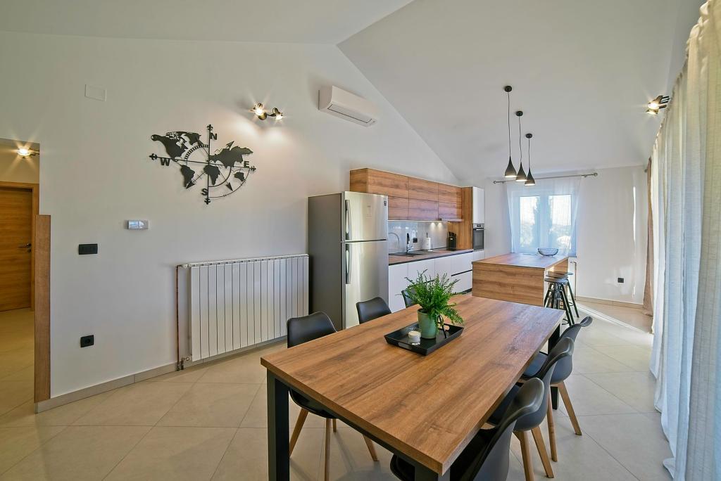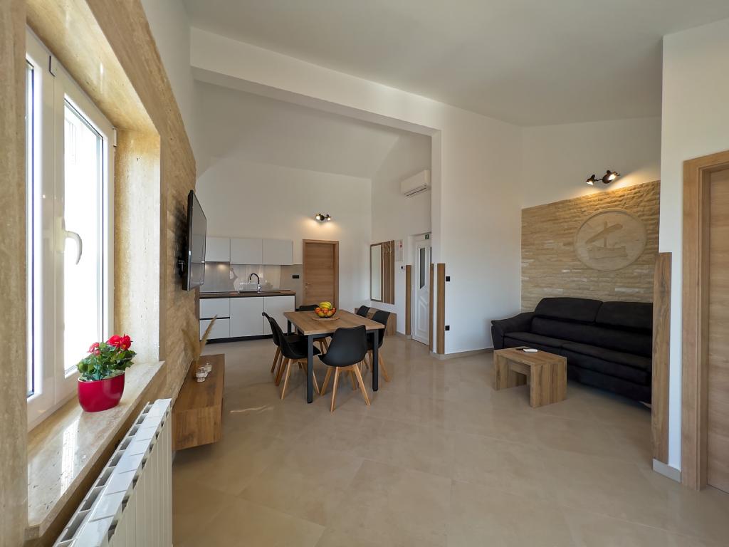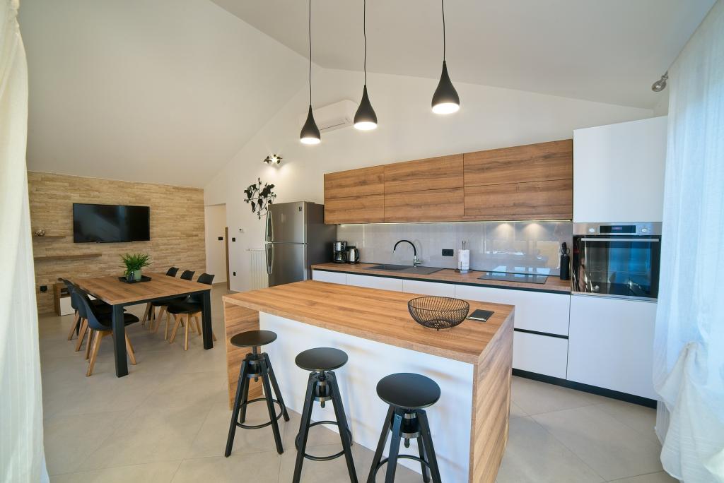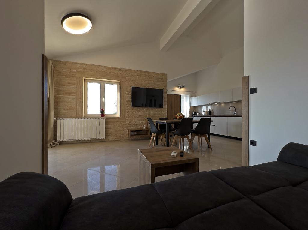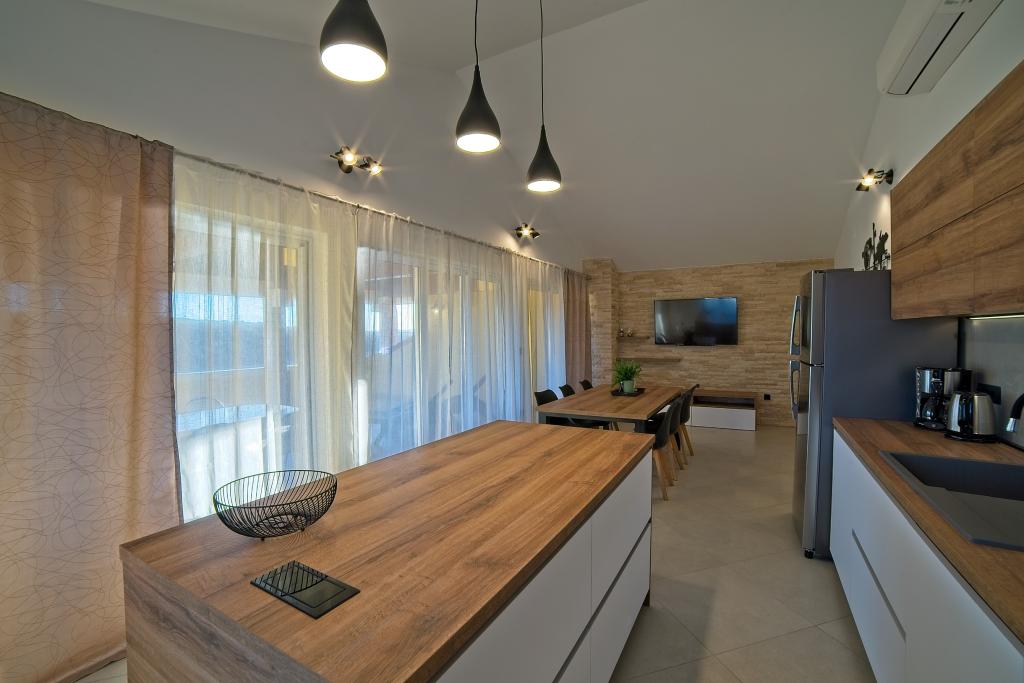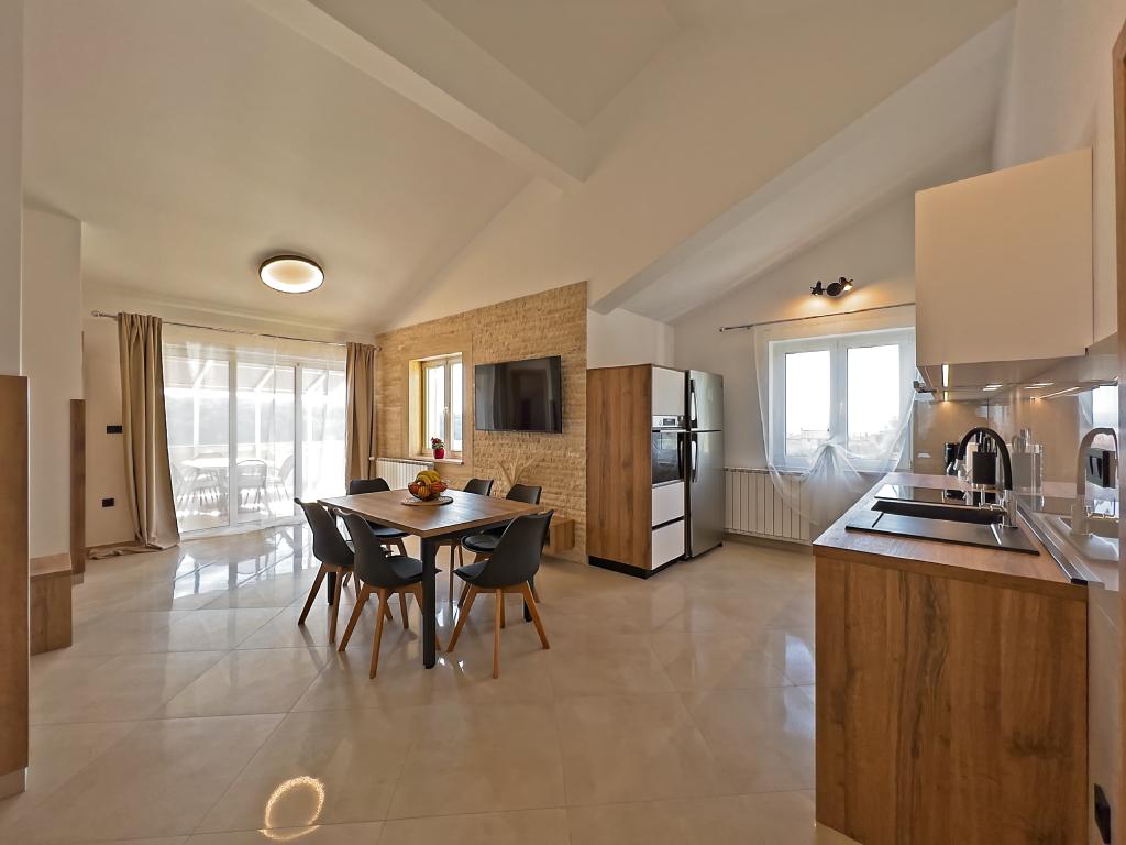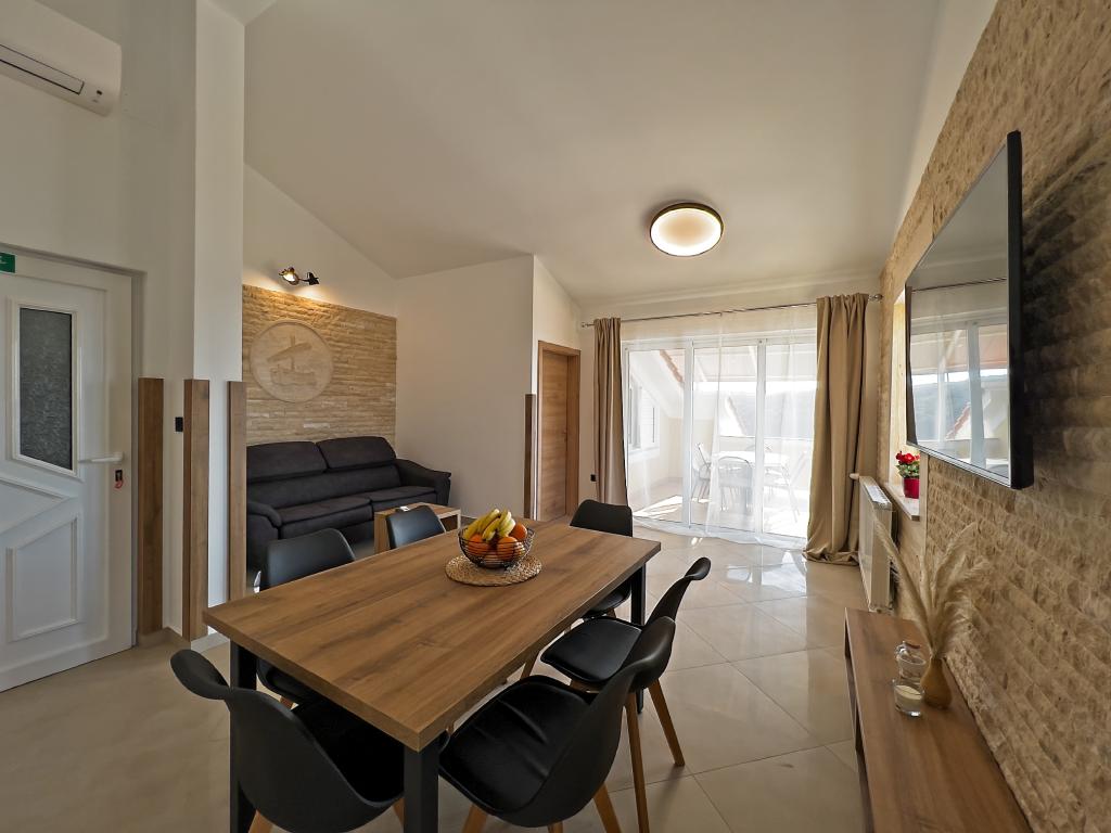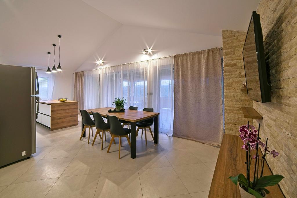 In Kampor on the island of Rab, 400 meters from the sea and a beautiful sandy beach, a modern and newly furnished and equipped holiday home with a special view of the sea and the entire Kampor bay. Holiday house Villa Milena on the island of Rab has a total of 5 apartments (apartments) for 2 to 6 people. The house is located in a beautiful, quiet, elevated location. It is 400 meters from the sandy beach that is visible from the terrace and the garden of the house, 500 meters from the town center and 5000 meters from the 2000 year old town of Rab. The sandy beach, with its shallow sea, emerald colors, offers a specialty for families with children, and curious people and historians will enjoy a walk in the old town, especially in the evening. Kampor also offers many sporting opportunities, both at sea and on land, and above all clean and comfortable air, suitable for heart patients and asthmatics.