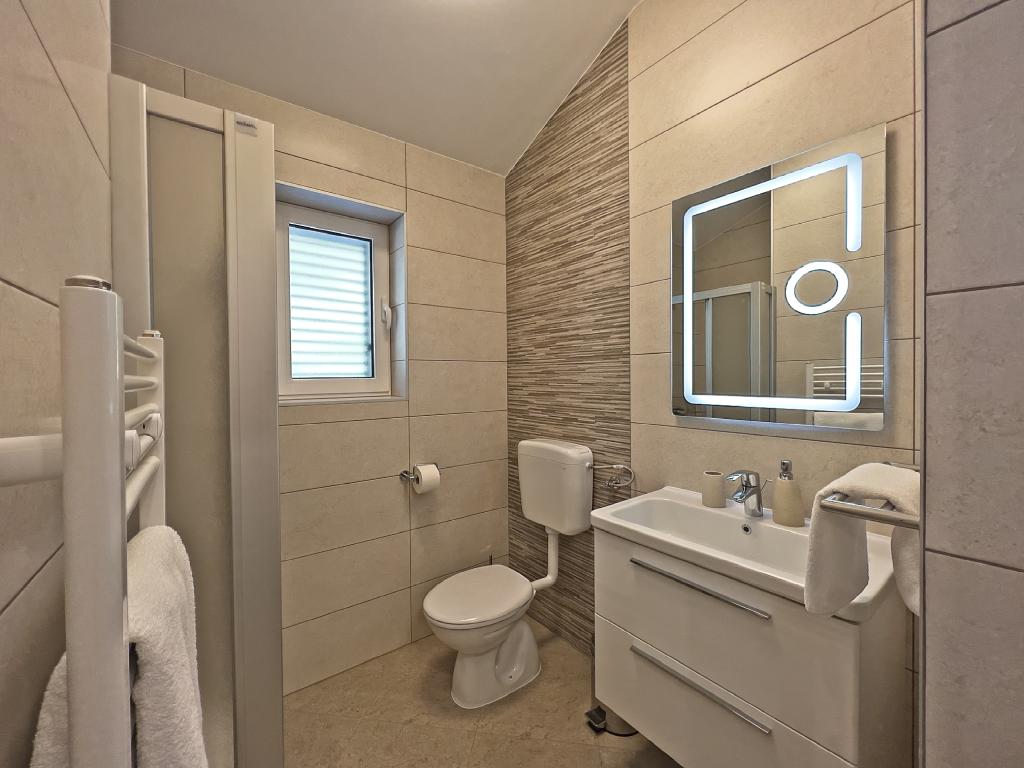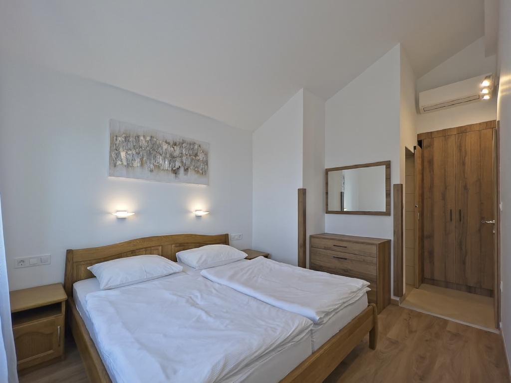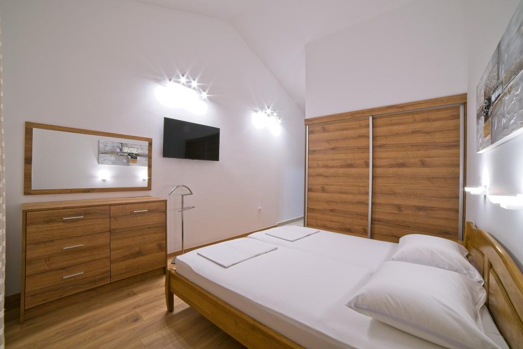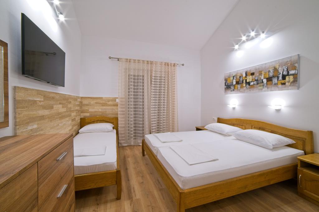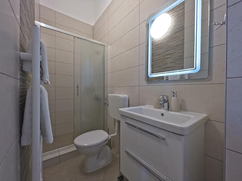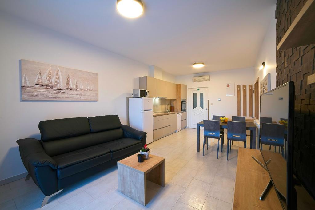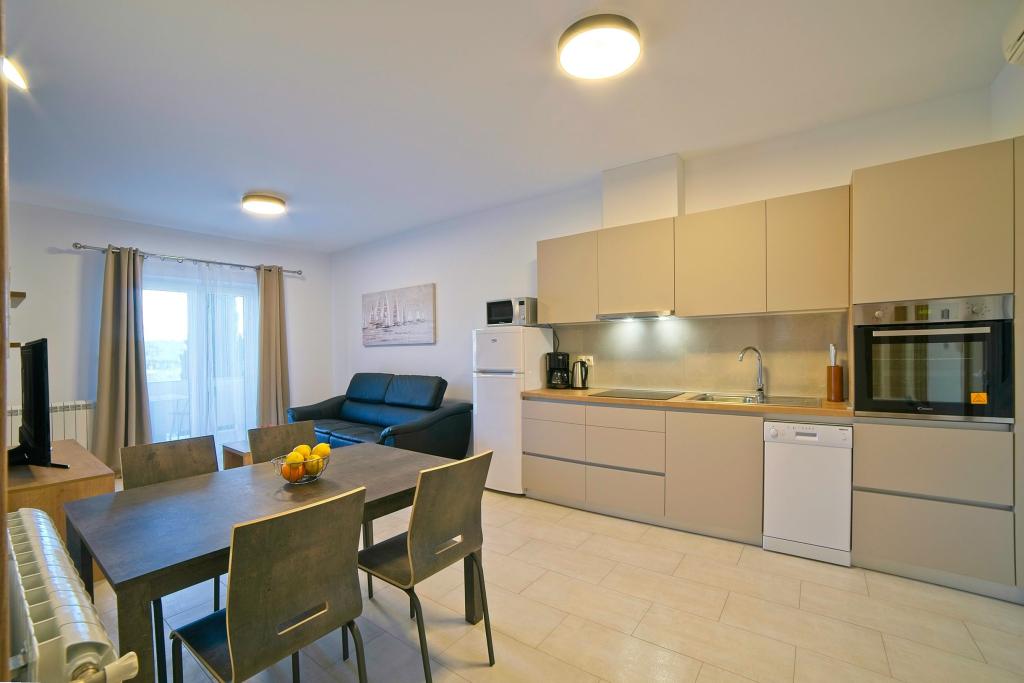 In Kampor on the island of Rab, 400 meters from the sea and a beautiful sandy beach, a modern and newly furnished and equipped holiday home with a special view of the sea and the entire Kampor bay. Holiday house Villa Milena on the island of Rab has a total of 5 apartments (apartments) for 2 to 6 people. The house is located in a beautiful, quiet, elevated location. It is 400 meters from the sandy beach that is visible from the terrace and the garden of the house, 500 meters from the town center and 5000 meters from the 2000 year old town of Rab. The sandy beach, with its shallow sea, emerald colors, offers a specialty for families with children, and curious people and historians will enjoy a walk in the old town, especially in the evening. Kampor also offers many sporting opportunities, both at sea and on land, and above all clean and comfortable air, suitable for heart patients and asthmatics.