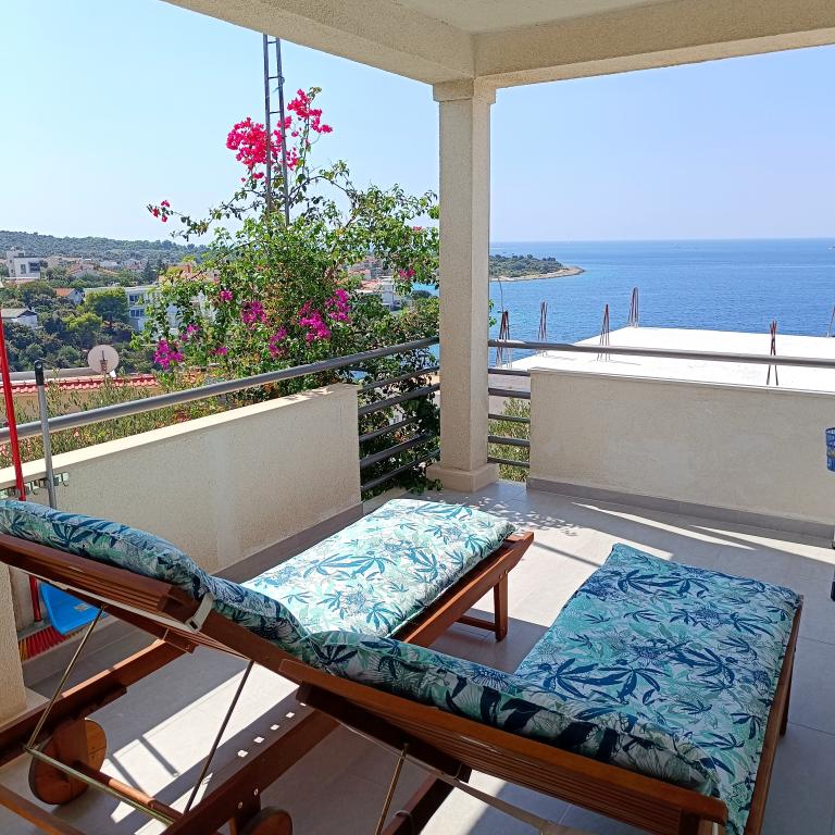 Apartment MATAN (Rogoznica-Kanica) Comfortable and fully equipped apartment, Wi-fi, Air conditioner, Grill, Parking, the apartment has its own separate entrance and its own large covered terrace of 18 m2 with a beautiful view of the sea, the beach is 70 meters away. Extremely clean and clear sea, peace, silence without crowds and noise of cars and preserved nature offer our guests a complete vacation both for families with children and for those who like to spend their vacation in INTIMATE. The apartments have a grill and safe parking next to the house. You can find everything for an evening out, entertainment and shopping in Rogoznica, Primošten and Trogir. The beaches are pebble, stone and concrete. A place good for lovers of fishing, walking and recreational running. Welcome