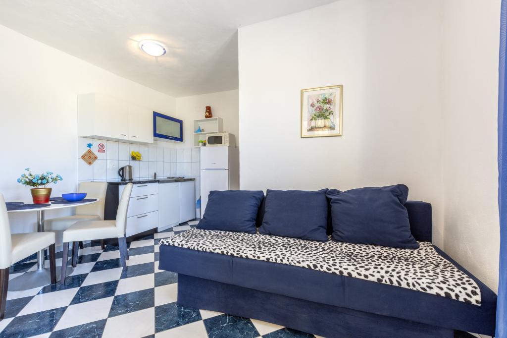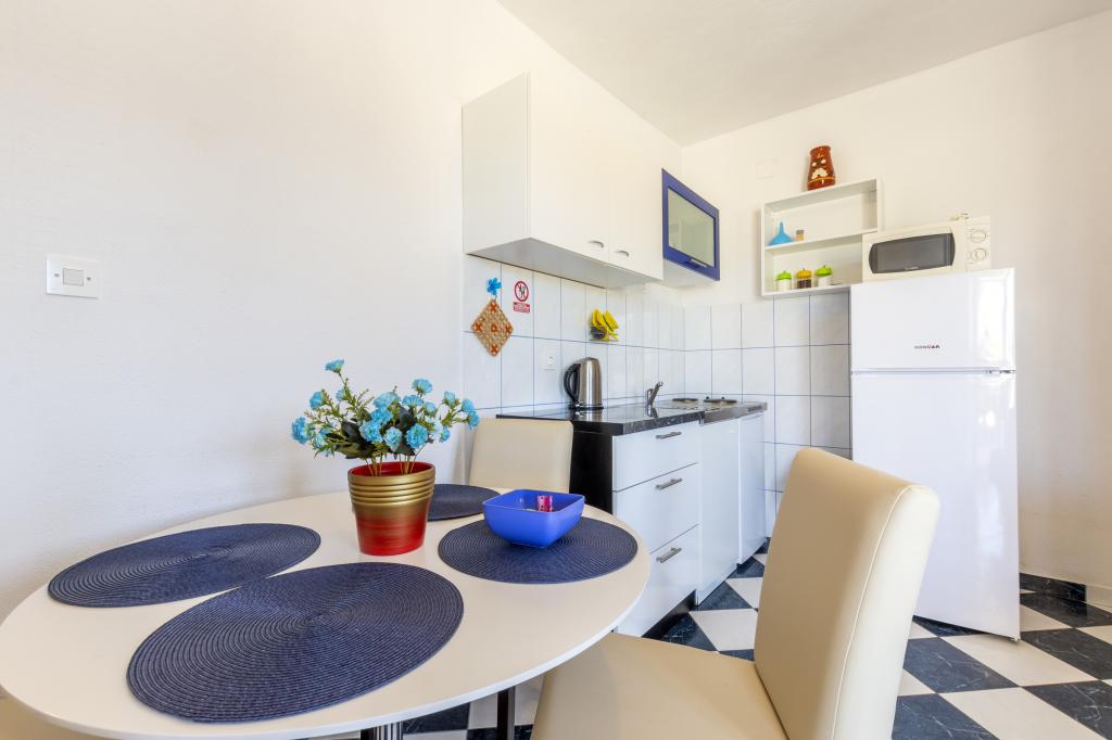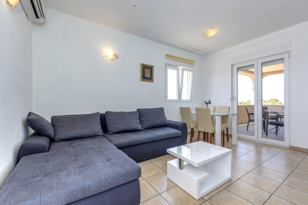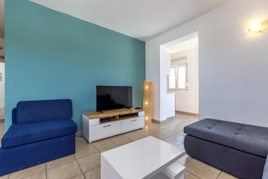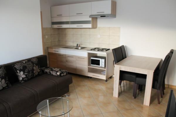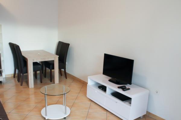 Residential tax is included in price.Nice and fresh apartment, clean, decorated, contains everything you need. The location is close to the sea and this is not propaganda, in fact the beach is about 70 m away. The sea is clean, the entrance is gentle, children can play carefree, the beach is gravel and concrete in the bay, so the water is calm. A cozy town, two pubs and nothing else. Basic shopping can be done in the morning using door-to-door sales. The owners of the apartment are available, friendly and helpful. An ideal place for families with small children and for those who love a quiet holiday. I would highly recommend !! Kind regards,