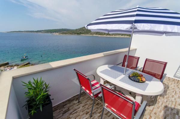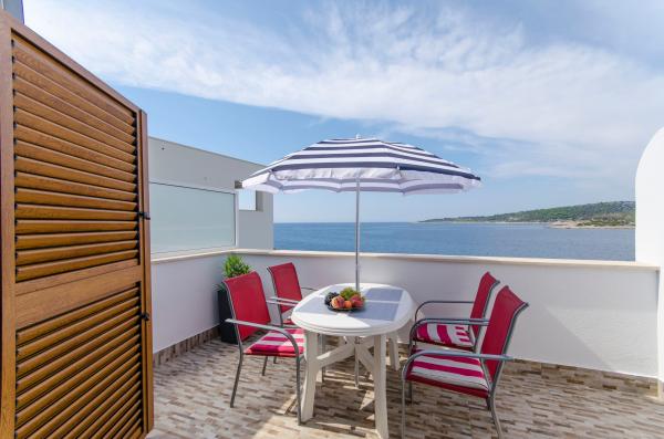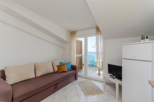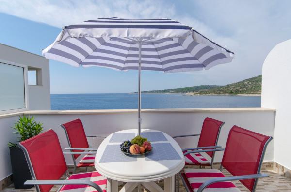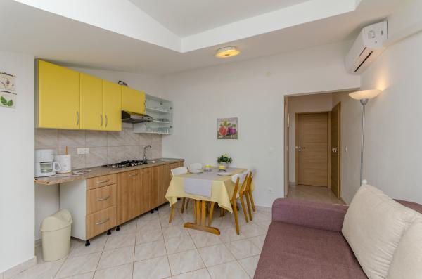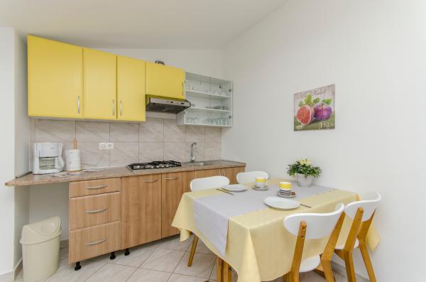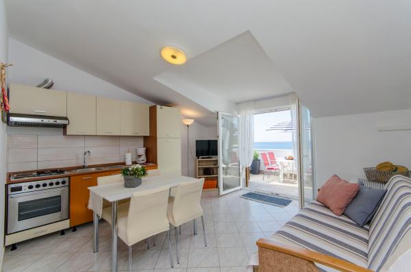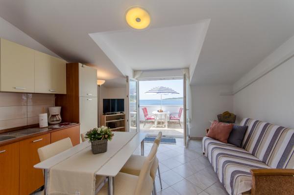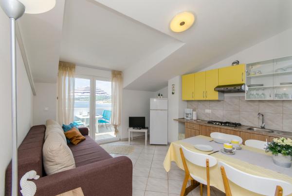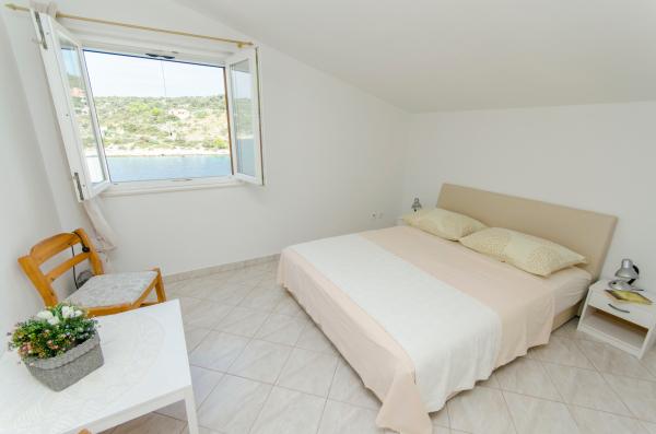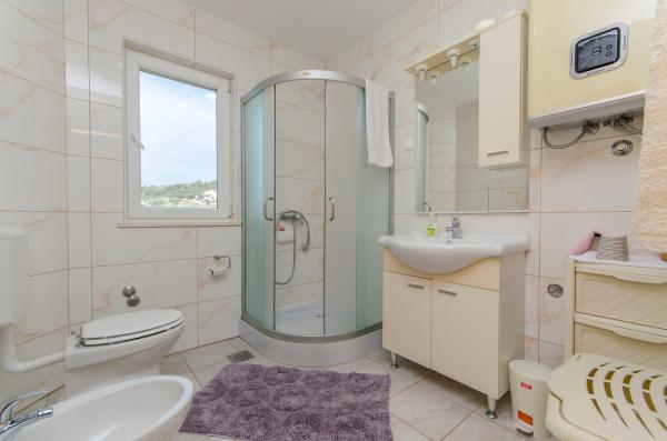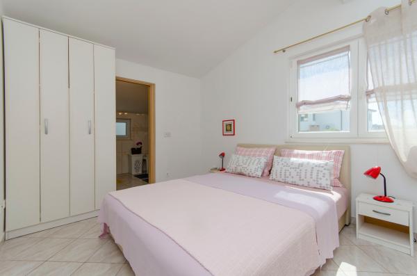 An ideal place to relax with amazing sea views - it\'s a good choice for anyone looking for relaxation, quiet place outside from the city, noisy bars and restaurants, but there is a small restaurant nearby with a daily menu, pizza and ice cream, also there is a baker with fresh bread and bakery products every day. Small store is about 1 km away. Apartment was clean with a spacious bathroom, comfortable beds, fully equipped kitchen, dinner on balcony while watching the sunset - it was really nice experience! Beach is close, sea clean. Surroundings of house was clean, carefully maintained, greenery, fragrant lavender. Parking for car was in yard of owners and was protected from sun. Friendly owners, caring, but fully respected our privacy. Mrs. Ivanka offered us delicious homemade pastries several times. Apartment has everything you need, including AC and fast wifi. We were very satisfied, in July 2019 we spent here 2 weeks. Well thank you! Peter and Gabriela, Slovakia