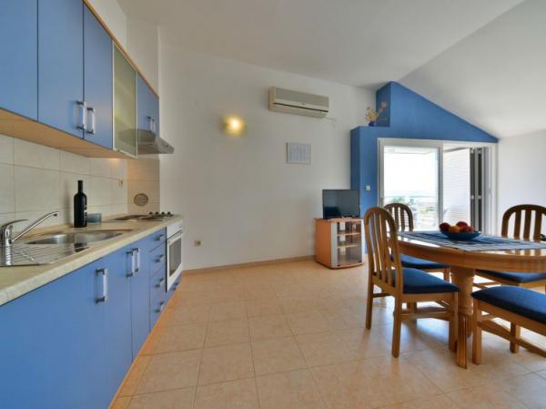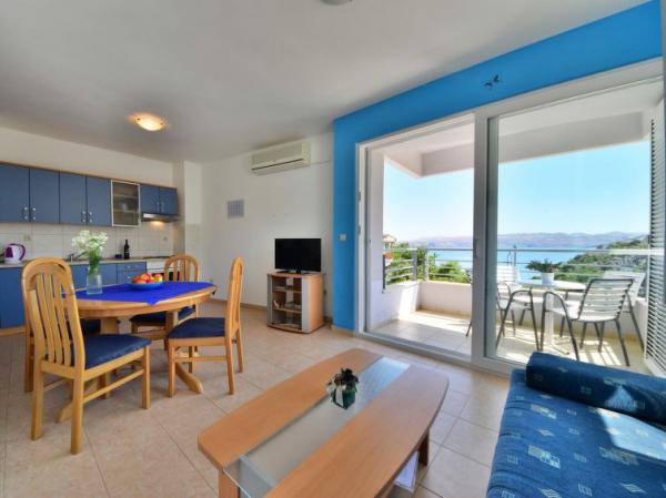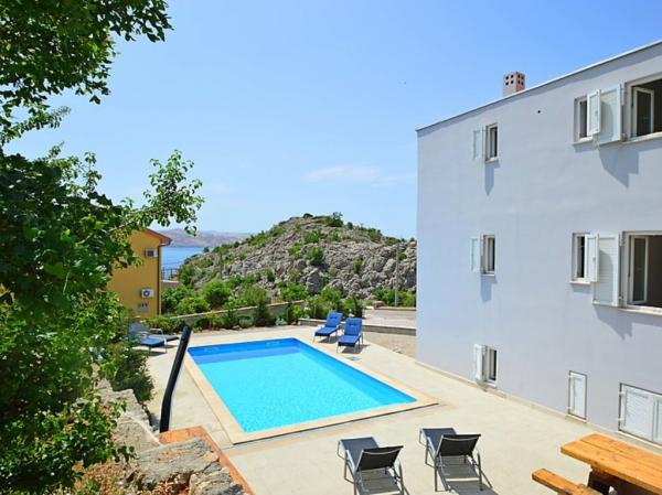 Wonderful quiet place with mountains behind and beautiful views of the sea and the lunar landscape of the island of Pag in front of you. Swimming in the sea in a beautiful bay with a minimum of people about 100 m from the apartment. Accommodation is decent, but the pool and seating area are absolutely fantastic. The hostess is very nice. I also highly recommend staying with children. There is no bar or disco within easy reach.