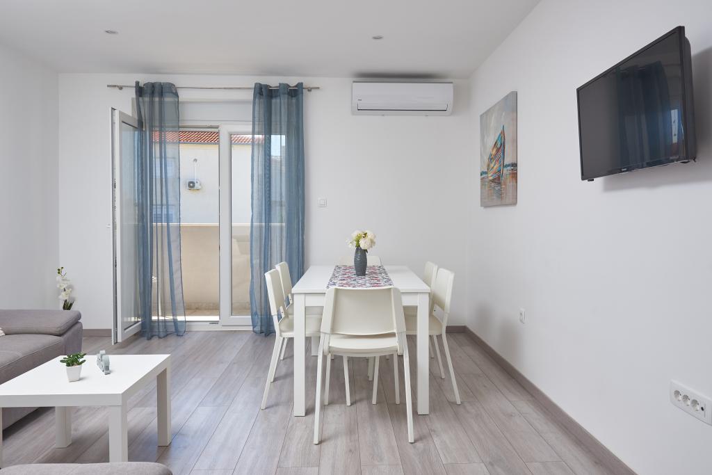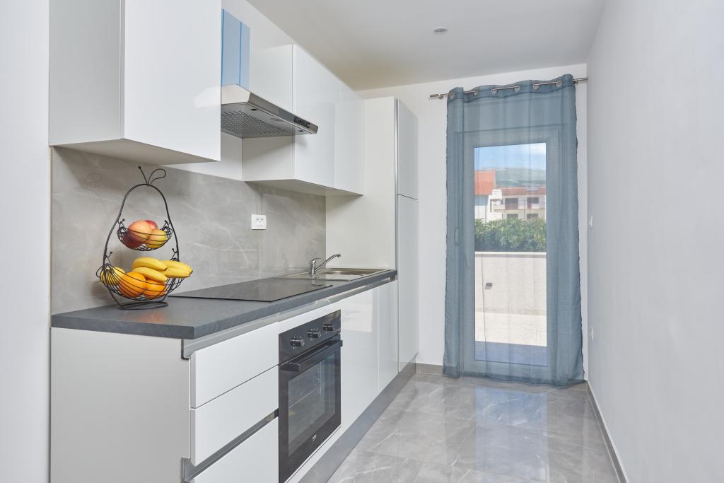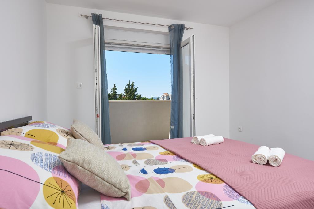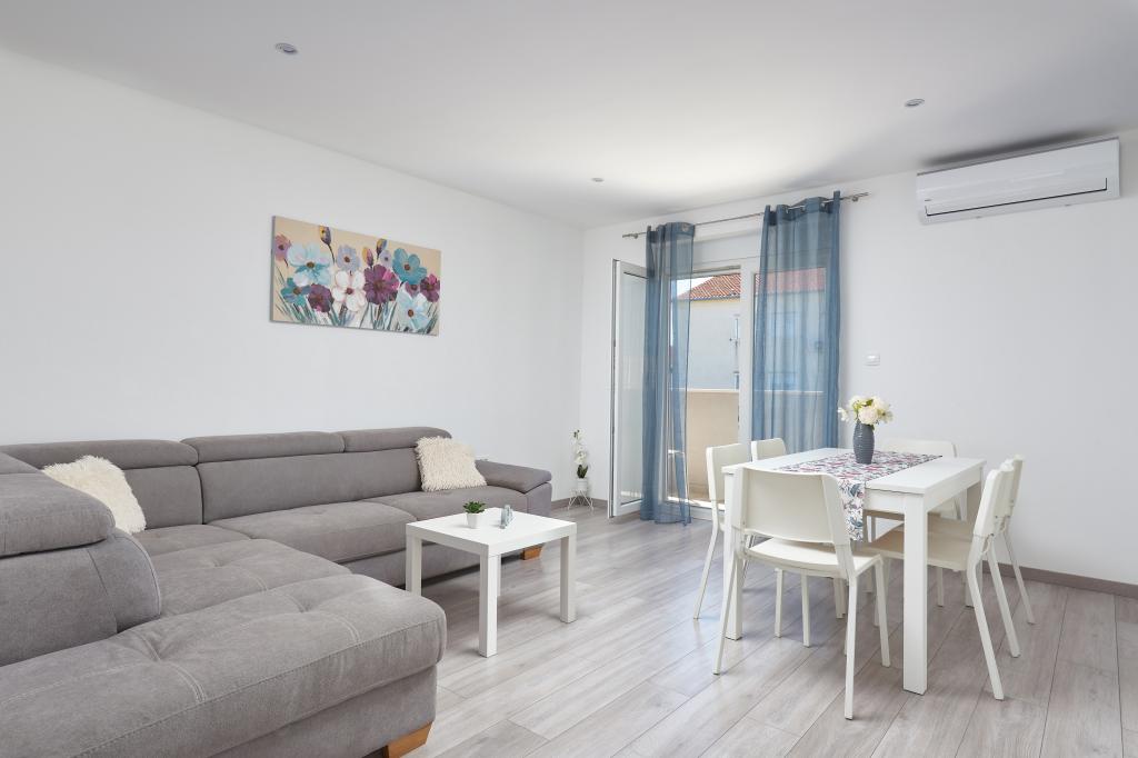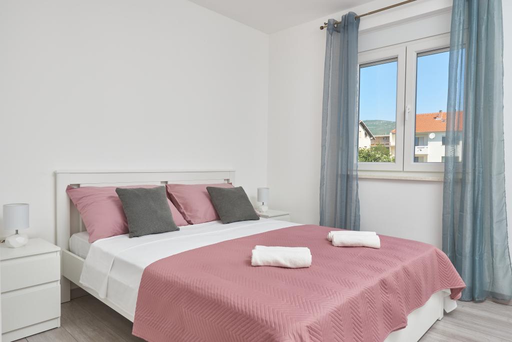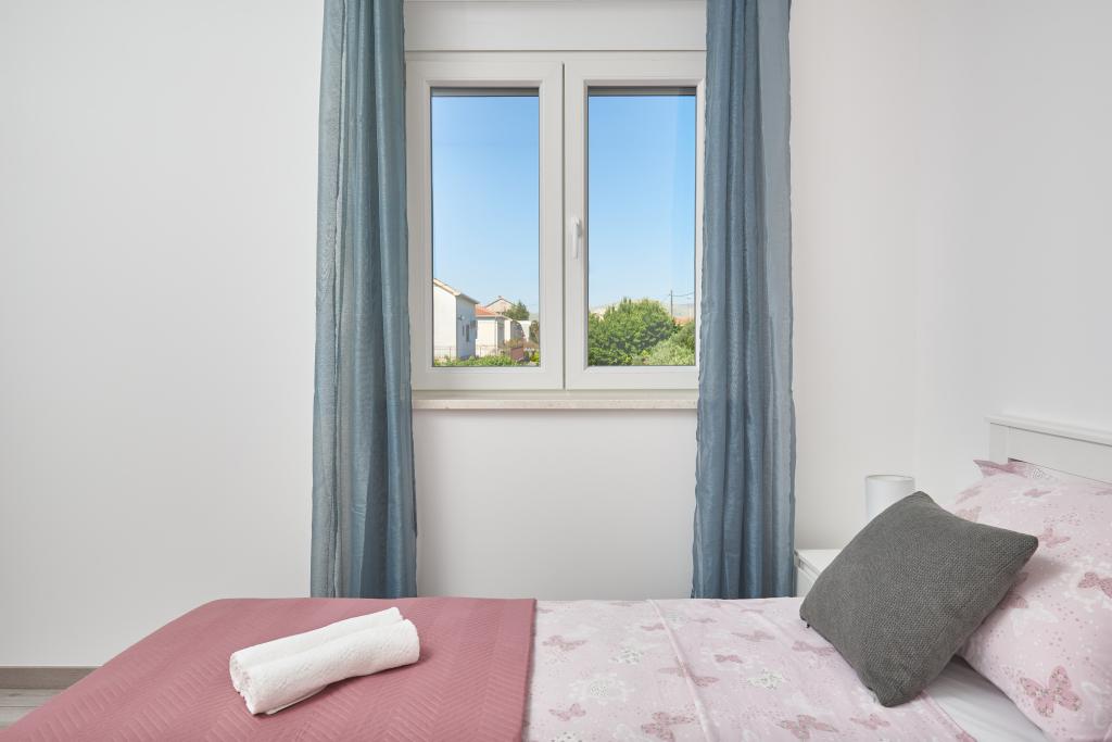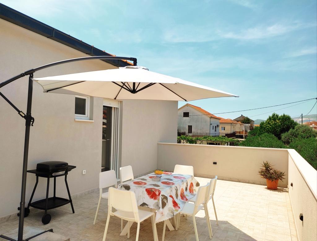 Newly renovated apartment with a large terrace and balcony. Located in Kaštel Štafilić, a small, quiet place, near the UNESCO cities of Trogir and Split. An ideal place for a family holiday. The apartment consists of a fully equipped kitchen, a living room, three bedrooms with a double bed and a bathroom. The apartment is air-conditioned, has 4 parking spaces, WiFi, TV and electric grill. Baby seat and cot are available on request. The beach with a cafe bar, pizzeria and children's playground is a 5-minute walk away. Within 200 meters from the apartment there are shops, cafes, restaurant, butcher, fish market, ATM, pharmacy. The nearest shopping center is a 5-minute drive away.