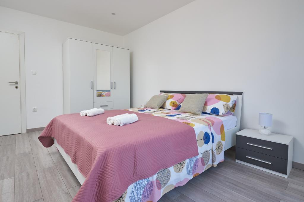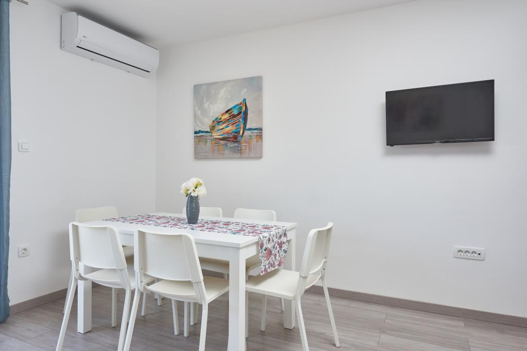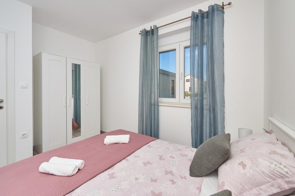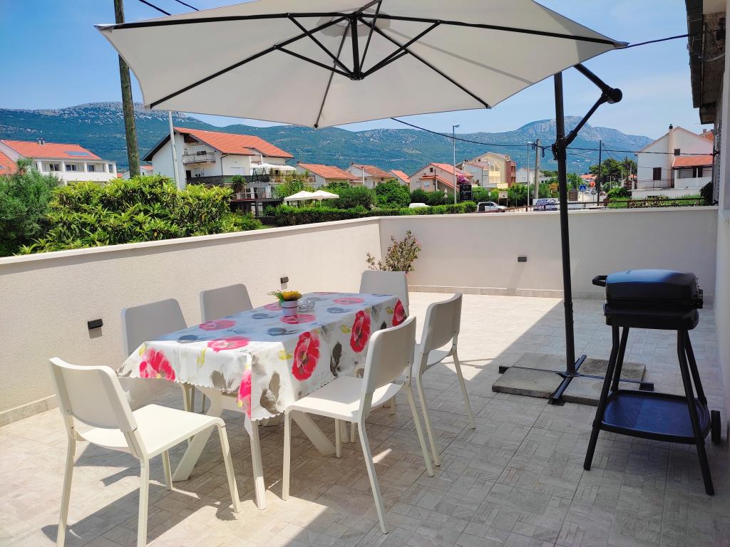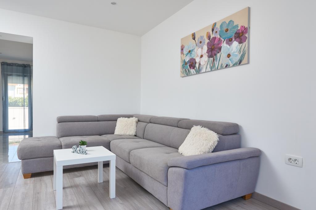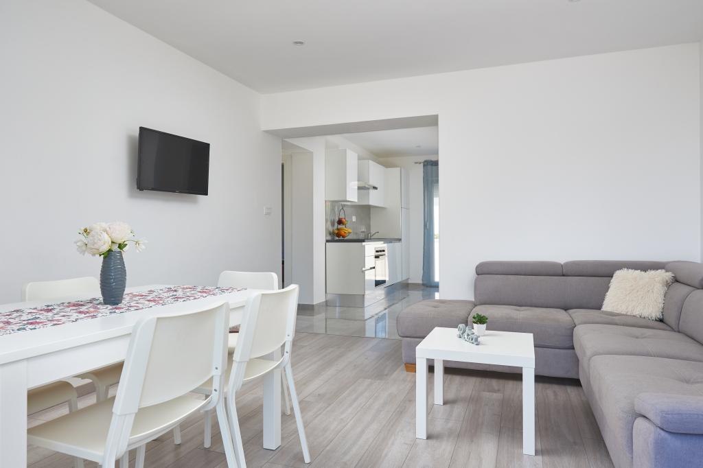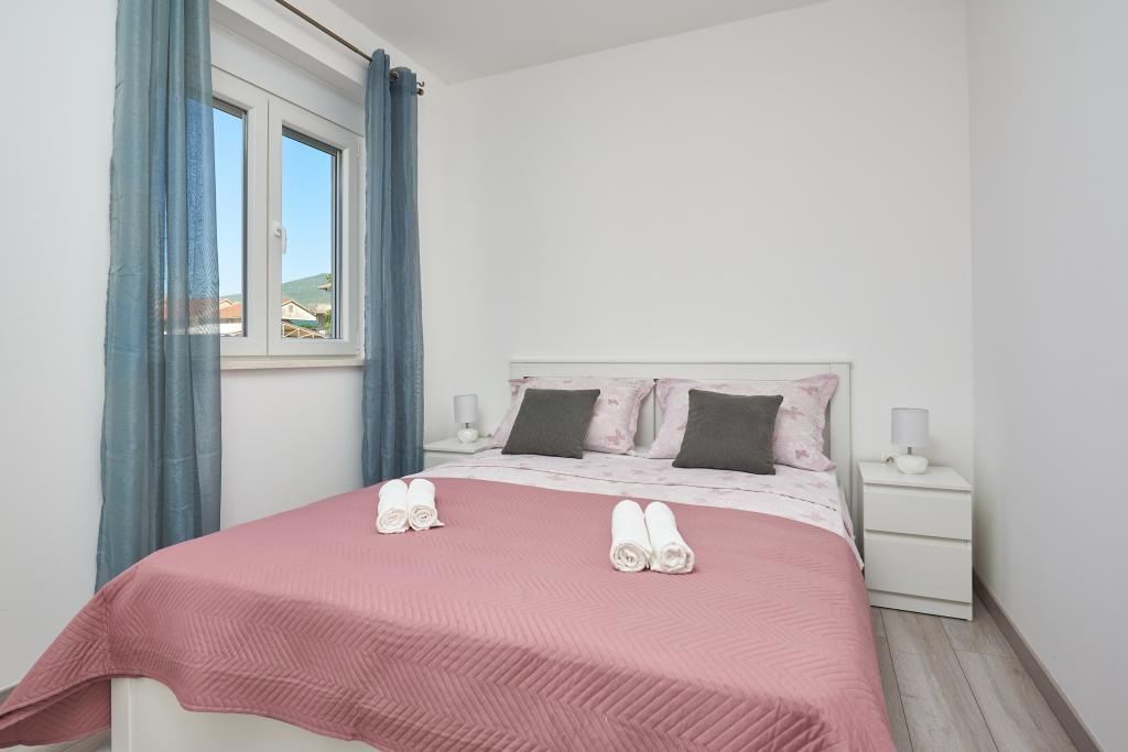 Newly renovated apartment with a large terrace and balcony. Located in Kaštel Štafilić, a small, quiet place, near the UNESCO cities of Trogir and Split. An ideal place for a family holiday. The apartment consists of a fully equipped kitchen, a living room, three bedrooms with a double bed and a bathroom. The apartment is air-conditioned, has 4 parking spaces, WiFi, TV and electric grill. Baby seat and cot are available on request. The beach with a cafe bar, pizzeria and children's playground is a 5-minute walk away. Within 200 meters from the apartment there are shops, cafes, restaurant, butcher, fish market, ATM, pharmacy. The nearest shopping center is a 5-minute drive away.
