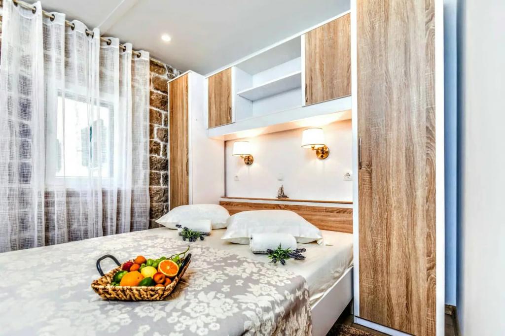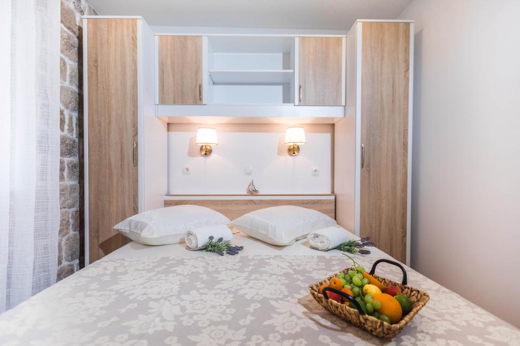 Read more Accommodation units- For longer stays in the same unit, bedding is changed every 7 days, and towels more frequently, if necessary. - Daily rent, tourist tax, bed linen, towels, equipped kitchen with necessary dishes and utensils, use of water, electricity and gas, air-conditioning and wireless internet are included in the price. - The advance payment is 30% of total price and it is paid by cash transfer to the bank account. The rest of the money (balance money) should be paid on arrival.