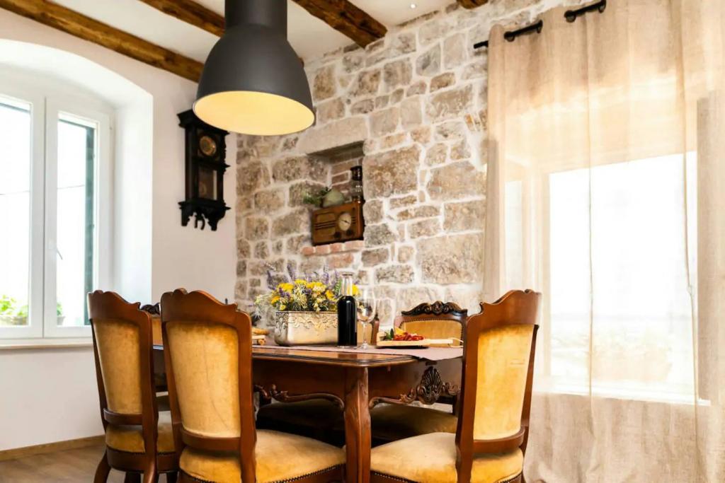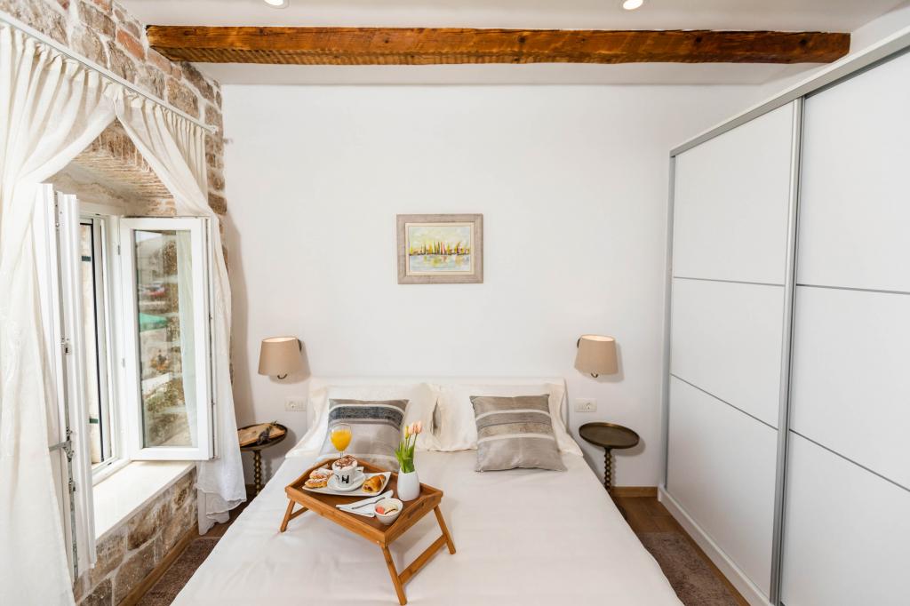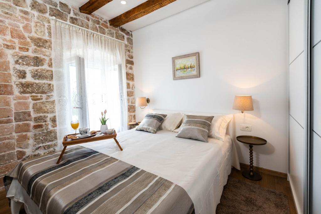 Holiday apartment located in the 15th century Sea Castle right by the sea in small village Kaštel Stari, near Split. This holiday rental offers comfortable stay for up to 4 adults at the first floor of a historic Renaissance castle. Thanks to its position with plenty of sunlight and wonderful sea views, the apartment is bright and airy in contrast to hard wood antique furnishings. The space is full of original historic pieces and quirky details, giving it an authentic feel and charming character. The bedrooms are individually designed to give each a different feel, but both feature a comfortable double bed.