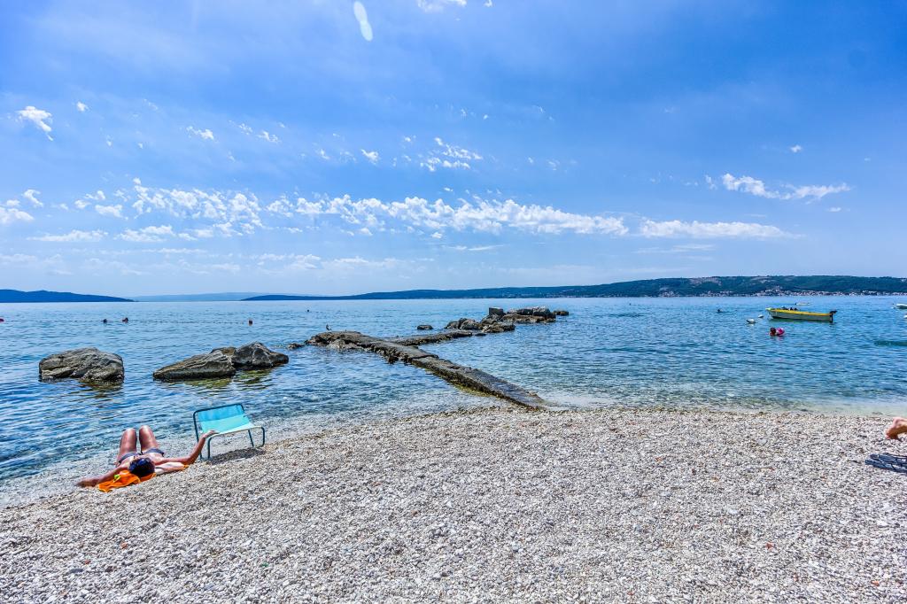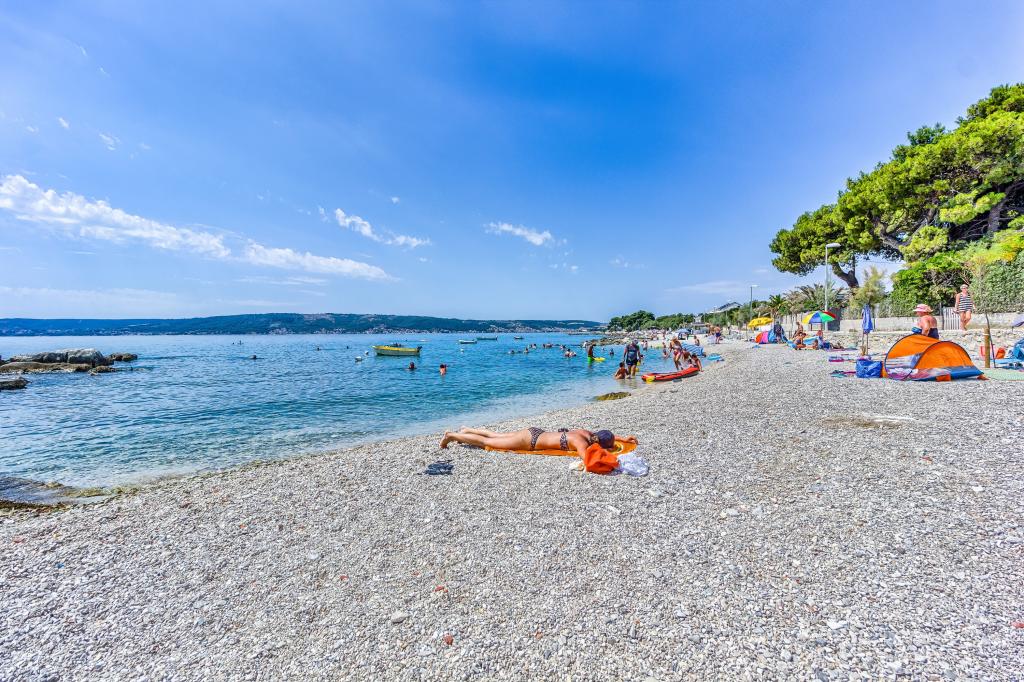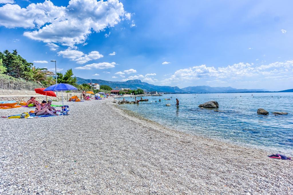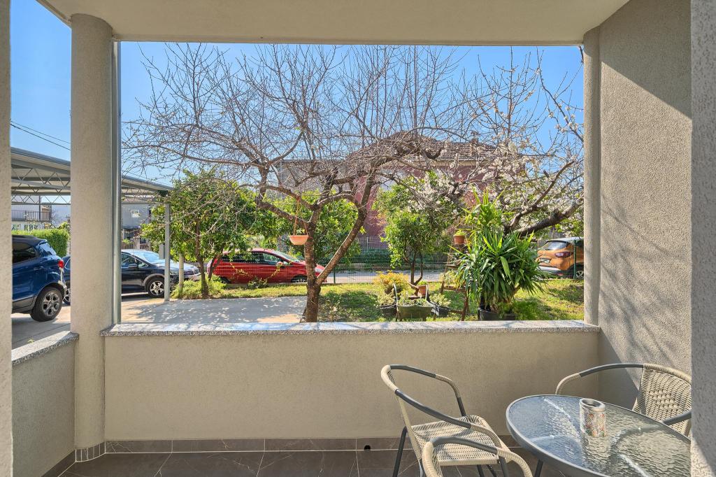 Just a 2-minute walk from the beach, our newly renovated two-bedroom apartment offers a perfect mix of comfort and convenience for your stay in Dalmatia. With modern amenities in a cozy setting, it’s an ideal base for beach lovers and explorers. The apartment’s location is close to shops, cafes, restaurants, pharmacies, and the airport ideal for a worry-free holiday. The main bedroom includes a queen-size bed, a single sofa bed, smart TV, and access to a private balcony with seating. The second bedroom features a double bed. Our kitchen is equipped with everything you need for home-cooked meals, including a stove, oven, and refrigerator, alongside a dining area Bathroom is stocked with essentials and towels. The apartment is equipped with Wi-Fi and air conditioning. Guests can enjoy an outdoor shared space with BBQ for outdoor dining. Free parking on premises.