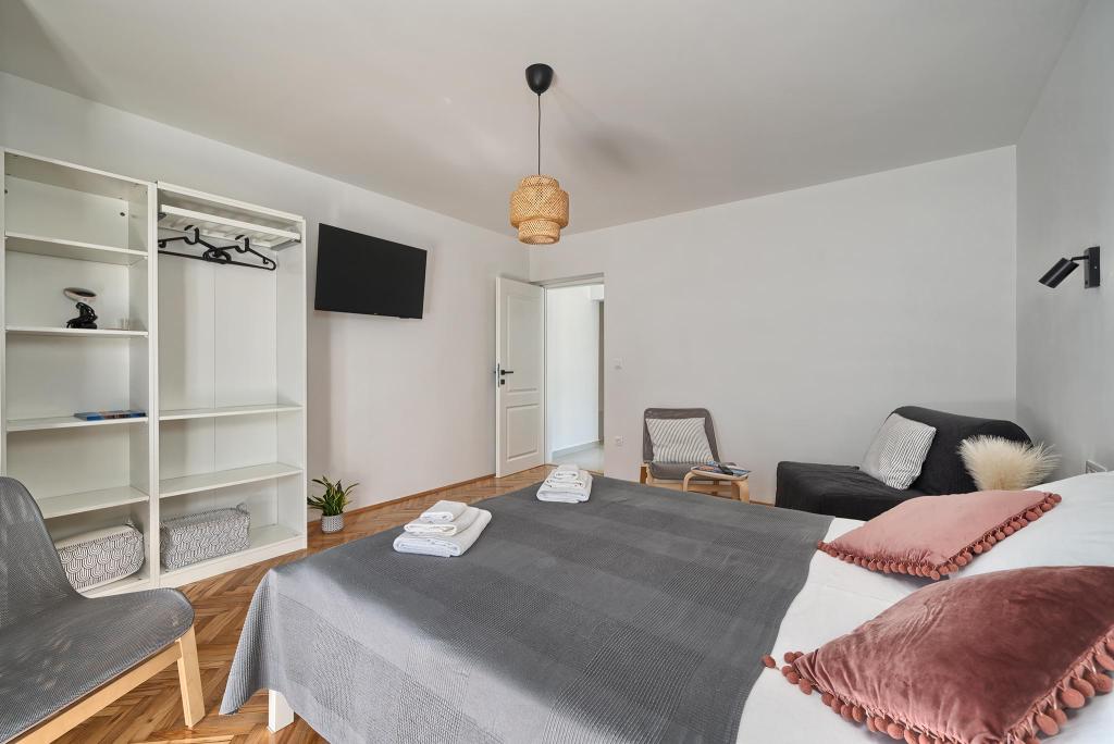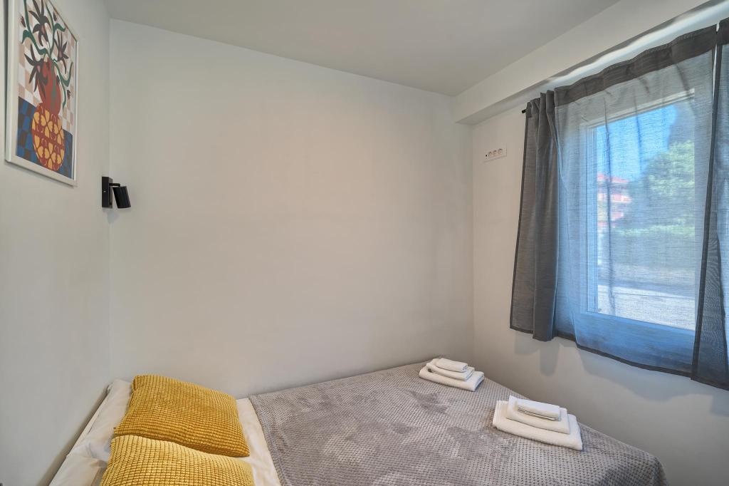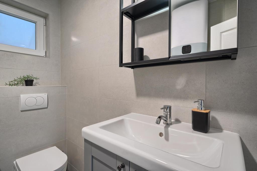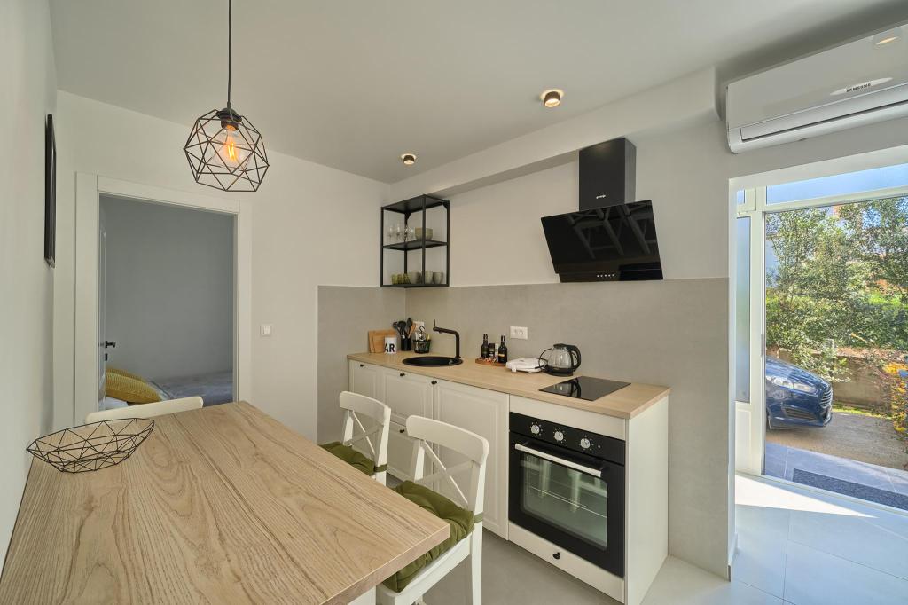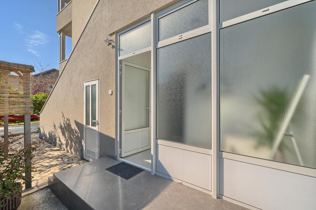 Just a 2-minute walk from the beach, our newly renovated two-bedroom apartment offers a perfect mix of comfort and convenience for your stay in Dalmatia. With modern amenities in a cozy setting, it’s an ideal base for beach lovers and explorers. The apartment’s location is close to shops, cafes, restaurants, pharmacies, and the airport ideal for a worry-free holiday. The main bedroom includes a queen-size bed, a single sofa bed, smart TV, and access to a private balcony with seating. The second bedroom features a double bed. Our kitchen is equipped with everything you need for home-cooked meals, including a stove, oven, and refrigerator, alongside a dining area Bathroom is stocked with essentials and towels. The apartment is equipped with Wi-Fi and air conditioning. Guests can enjoy an outdoor shared space with BBQ for outdoor dining. Free parking on premises.