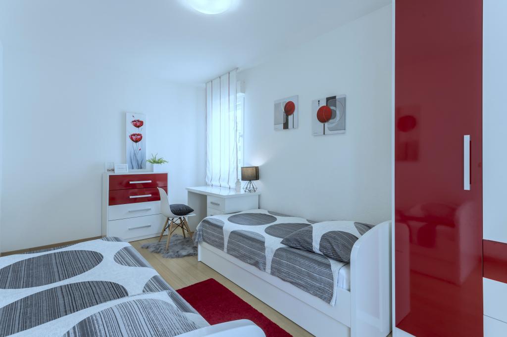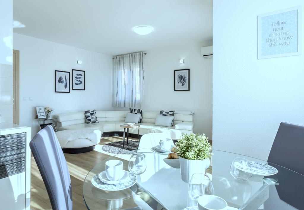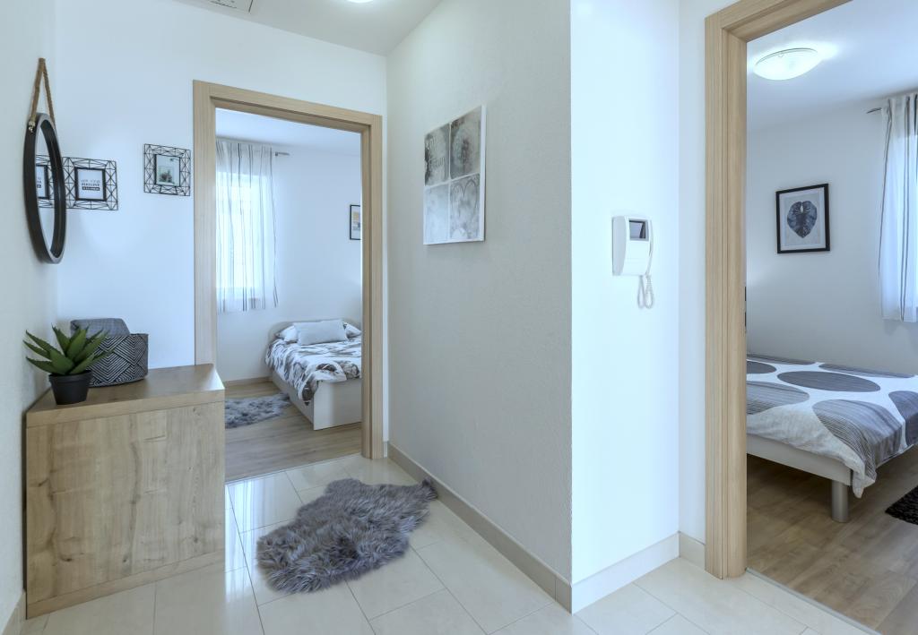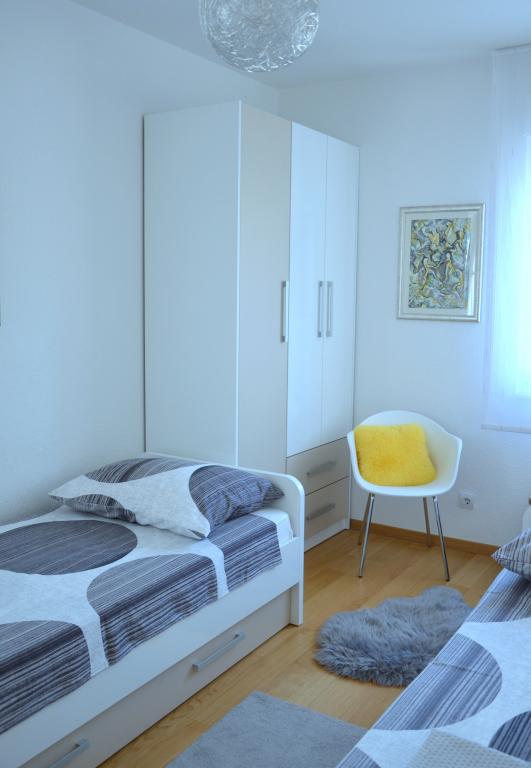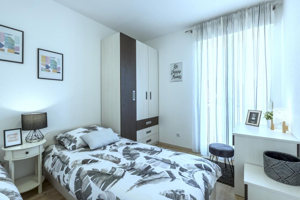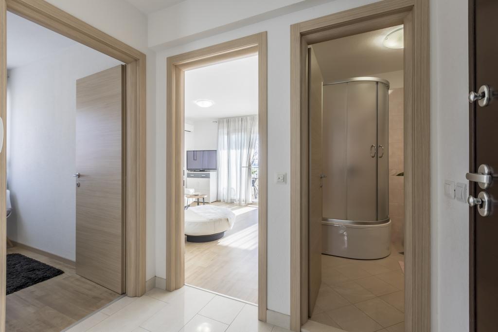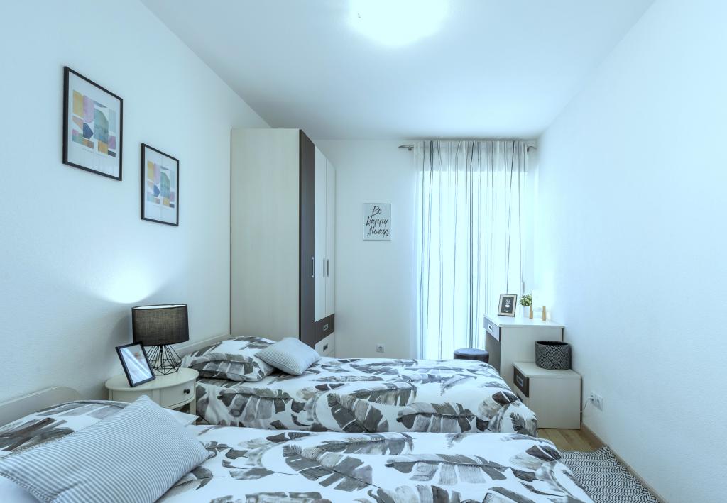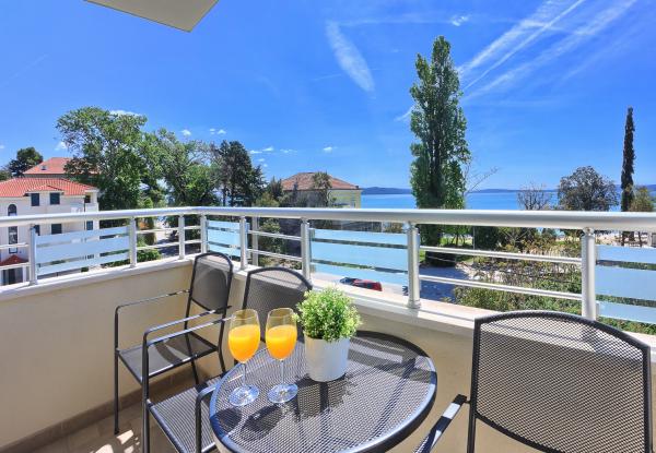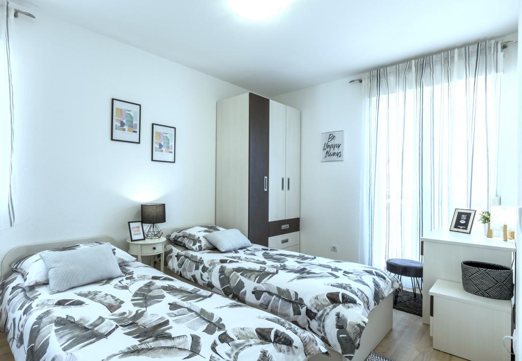 Iris Apartments were built in 2013th year and include three modern apartments with air conditioning and elegant interior, located close to the main promenade and sandy plaže.Dječje playground is located at a distance of 100 metara.Prednost apartment is near major cities of Split and Trogir, which are rich in its cultural baštinom.Ljubitelji walks can enjoy long walks along the coast passing through seven castles. Apartments include a fully equipped kitchen, living room, two bedrooms and bathroom with shower. All units include a closet, a sitting area and plasma TV.
